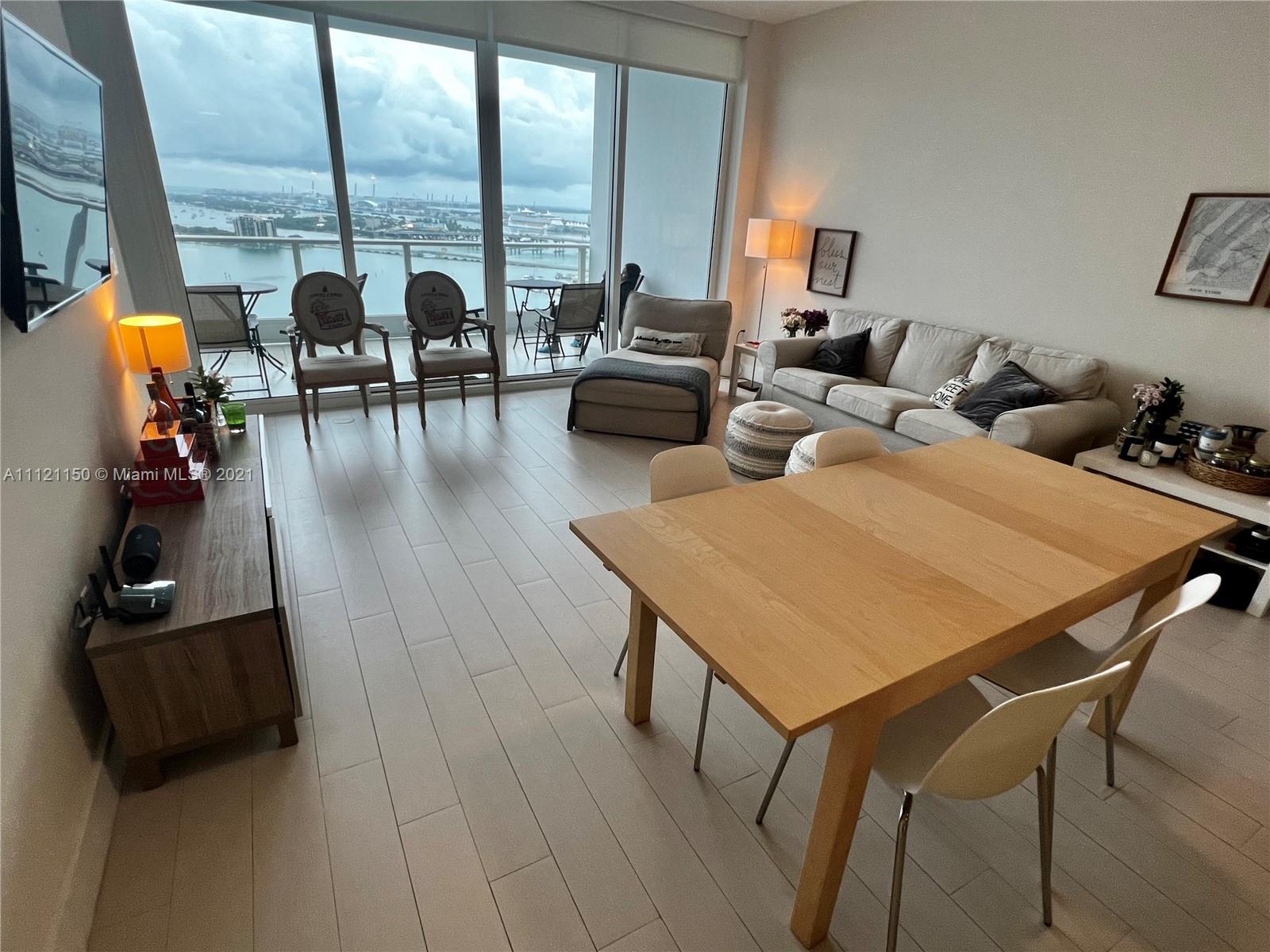 Enjoy luxury living in downtown Miami's finest bayfront building. Beautiful finished this unit offers 10ft ceilings throughout, with a private elevator foyer. This 1 bedroom + Den and 2 baths with take your breath away. Stunning direct and panoramic bay, city, and park views. Paramount Bay has 5 star service and amenities in an unbeatable location. Cable & Internet included.