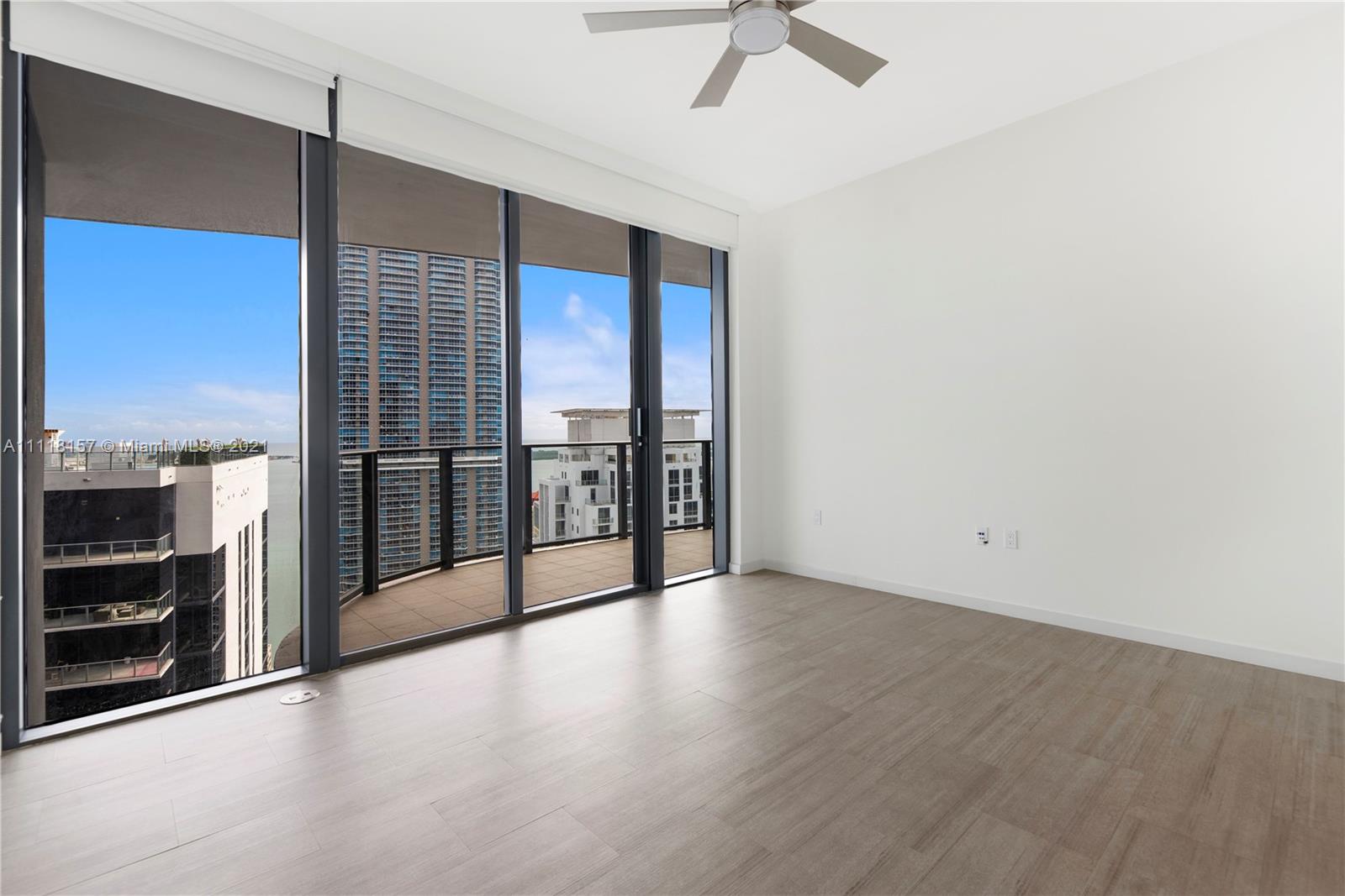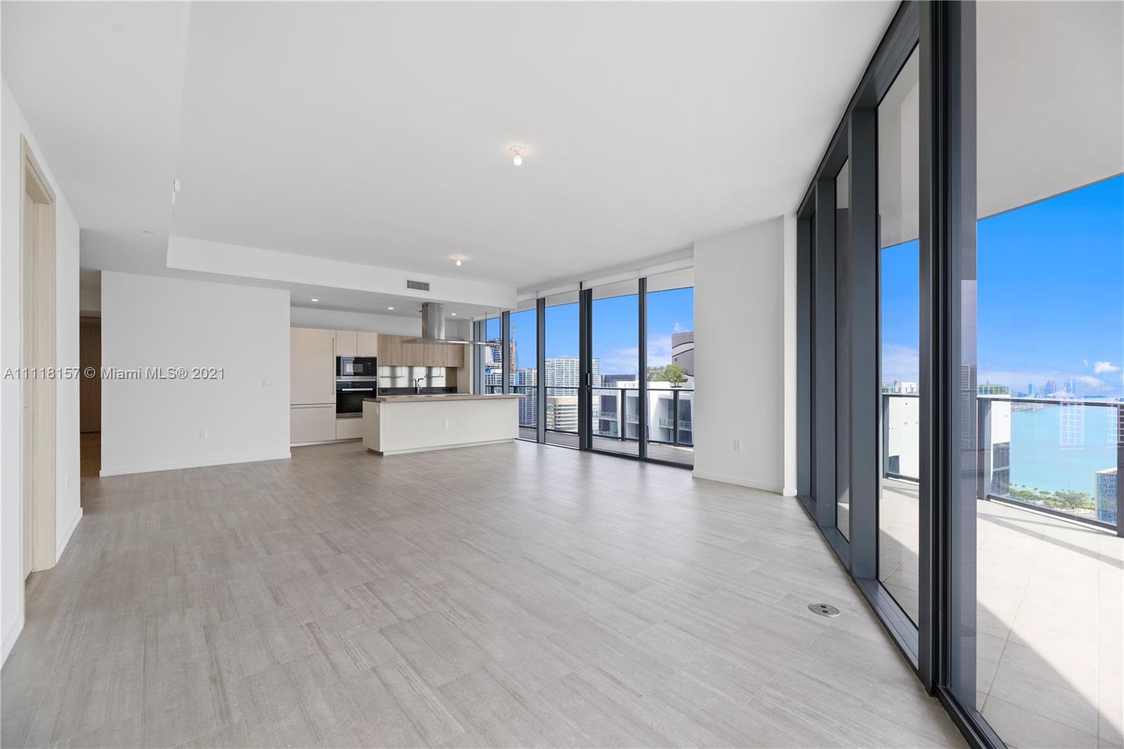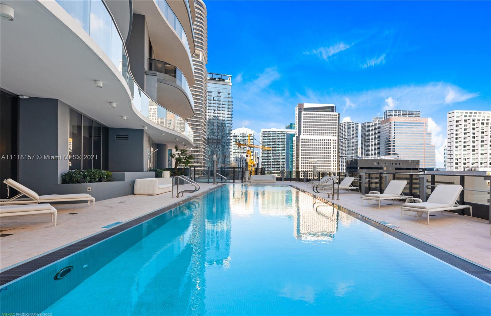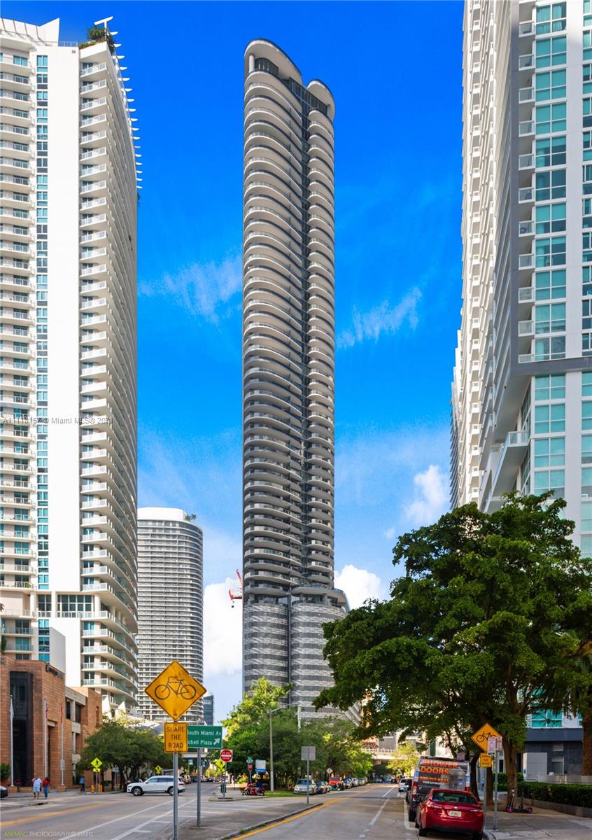 Brickell Flatiron Penthouse. Unobstructed panoramic views with SE Exposure [Best line] Corner unit with wrap around balconies throughout. 3 Beds- 3.5 Baths with 1,955 SQFT of living area, 10 ft. ceilings, floor to ceiling impact windows and sliding doors, Italian Snaidero Kitchens and Bathrooms, built-out closets, Miele appliances, and other luxury finishes. Full-service building with concierge service and resort style amenities includes the 64th Floor Sky Club, a spa, gym, theater, and lap pool, club room, lounge room, movie theater & Billiards. Two assigned parking space and valet service. Fantastic location in the heart of Brickell. Vacant turn-key unit easy to show.