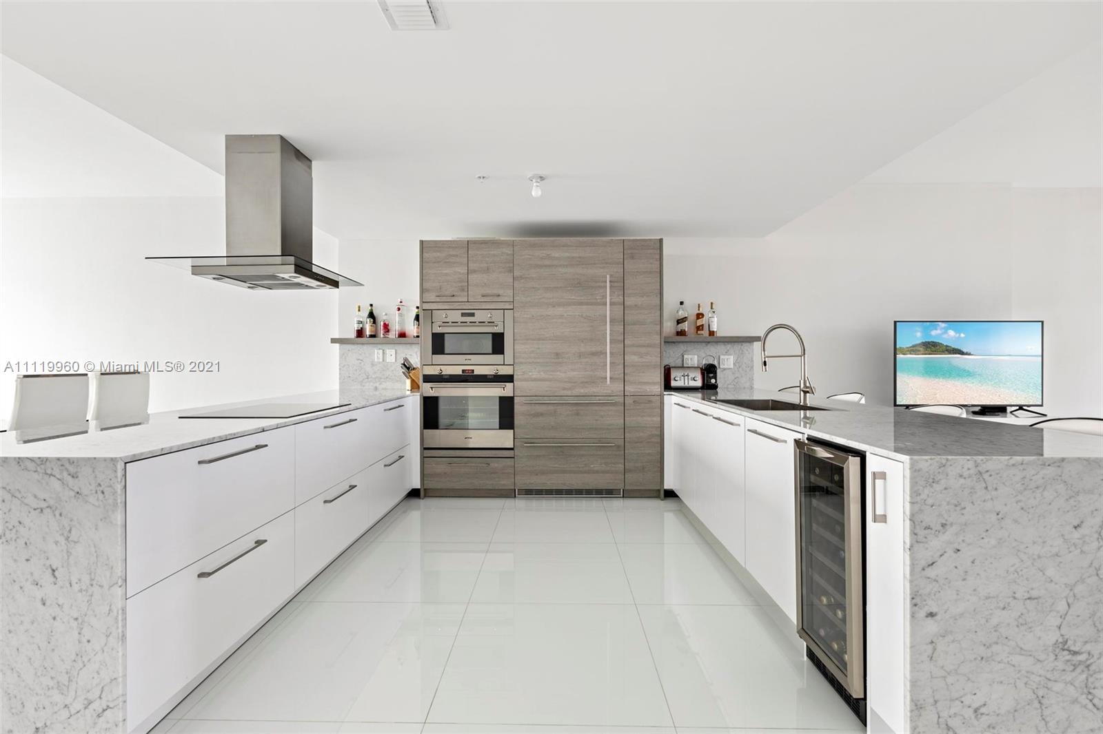 This beautiful unit 3 stories penthouse is located in the heart of Sunny Isles Beach. Big balcony and spectacular views of the Bay and the Ocean with huge rooftop deck & jacuzzi. Marvel at the view from the spacious main floor and balcony with private marina and dock below. Designer closets, room darkening electric shades, High-end appliances with granite, counters, gleaming white marble floors thru-out, spiral staircase, and grey wood grain cabinetry give a warm and sophisticated look, 2 assigned parking spaces. walking distance to the Beach as well as fine dining.