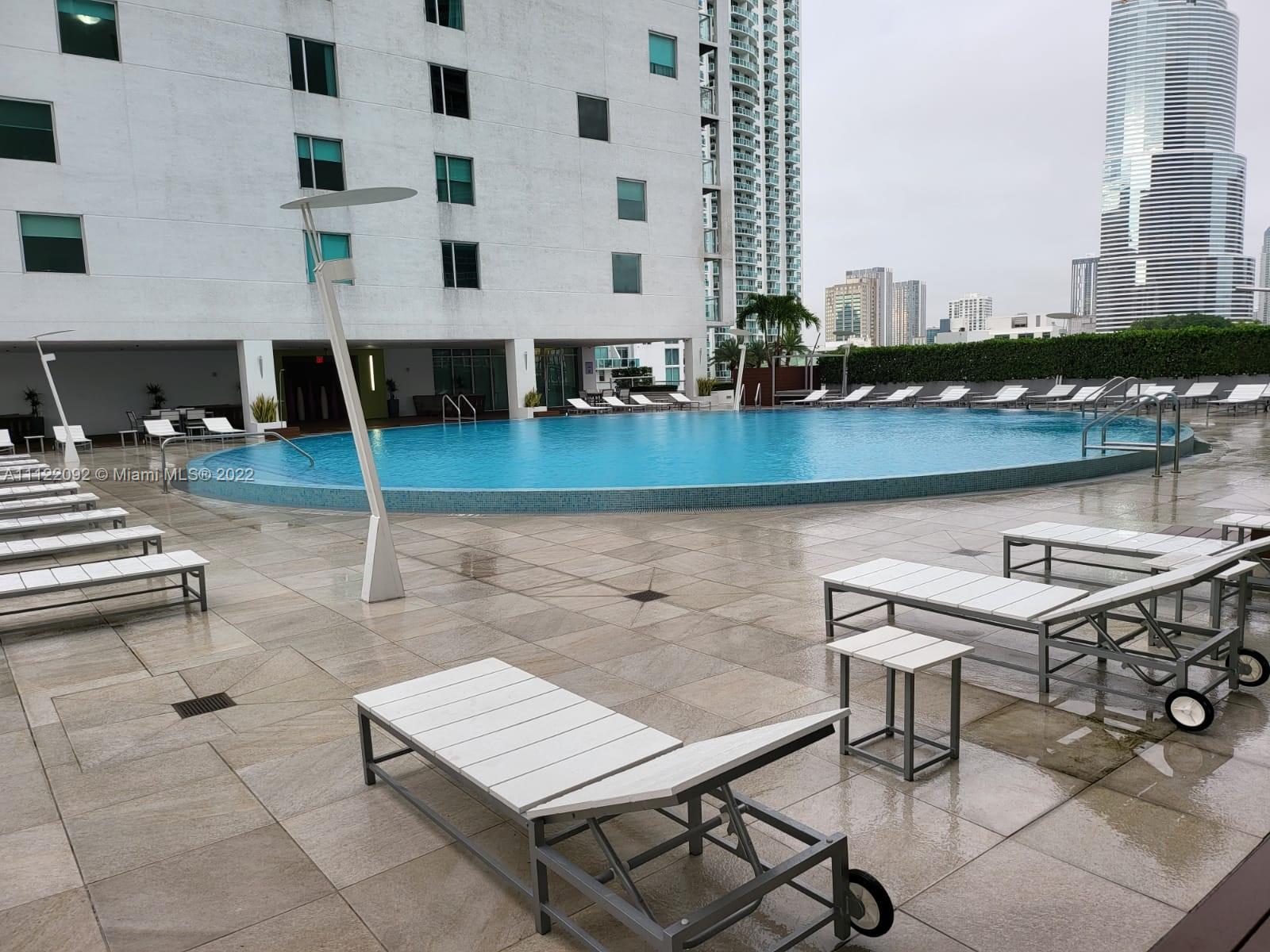 Amazing 2/2 apartment in the trendy 500 Brickell, a residential complex in the Brickell neighborhood . The complex consists of two condominium towers, 500 Brickell West Tower and 500 Brickell East Tower. The two buildings were designed as twin towers and rise 426 feet, with 41 floors. Open spacious floor plan. Great kitchen with stainless steel appliances. Lots of natural light. Pet friendly building. Unit faces the mouth of the Miami River landing to Biscayne Bay, which the water can be seen from all the rooms. The development is located right on Brickell Av. Cafes, restaurants, bars, salon, banks, etc. just downstairs in retail space of the bldg. Amenities include 2 pool, large gym, spa, movie theatre, billiards, party rooms, 24 HR doorman & business center . short term rental permitted
