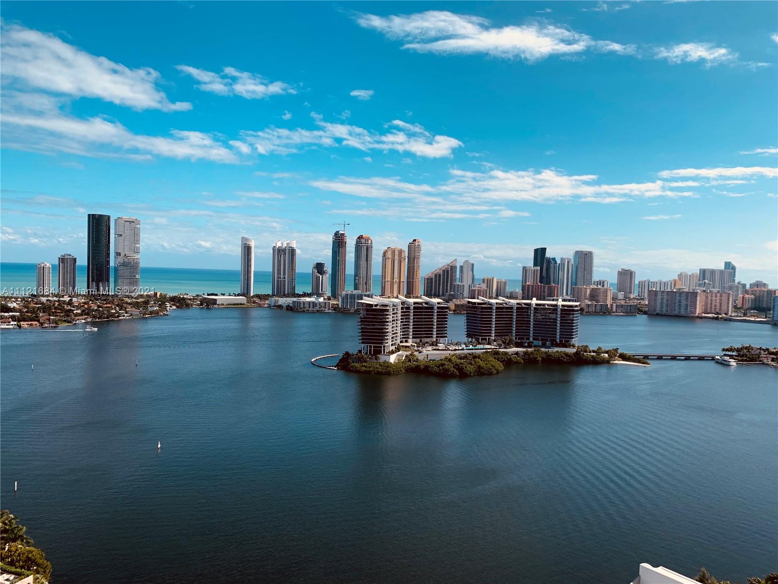 Turnkey UPPER PENTHOUSE located in the heart of AVENTURA! Breathtaking panoramic views of sunrise and sunset! Amazing night view, golf course, park, ocean and intracoastal from this two - story PENTHOUSE! This is large 3 BED + huge Den(home theater)/3.5 bath Upper Pent house. 3,001 sq ft is offered fully furnished, European kitchen, beautiful marble floors, high ceilings. The building offers 5 star SPA, health club with classes, 4 tennis courts, 2 pools, billiard room, private marina. 24 hours guard gate, doorman, walking distance to school, Founders Park, Aventura Mall. This penthouse include in the price 50 feet long marina space. 3 parking car garage space.