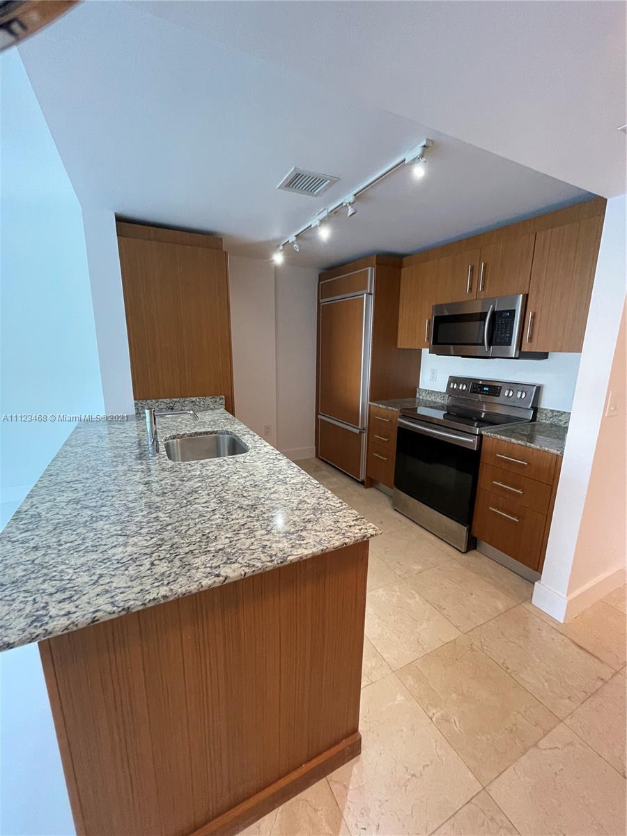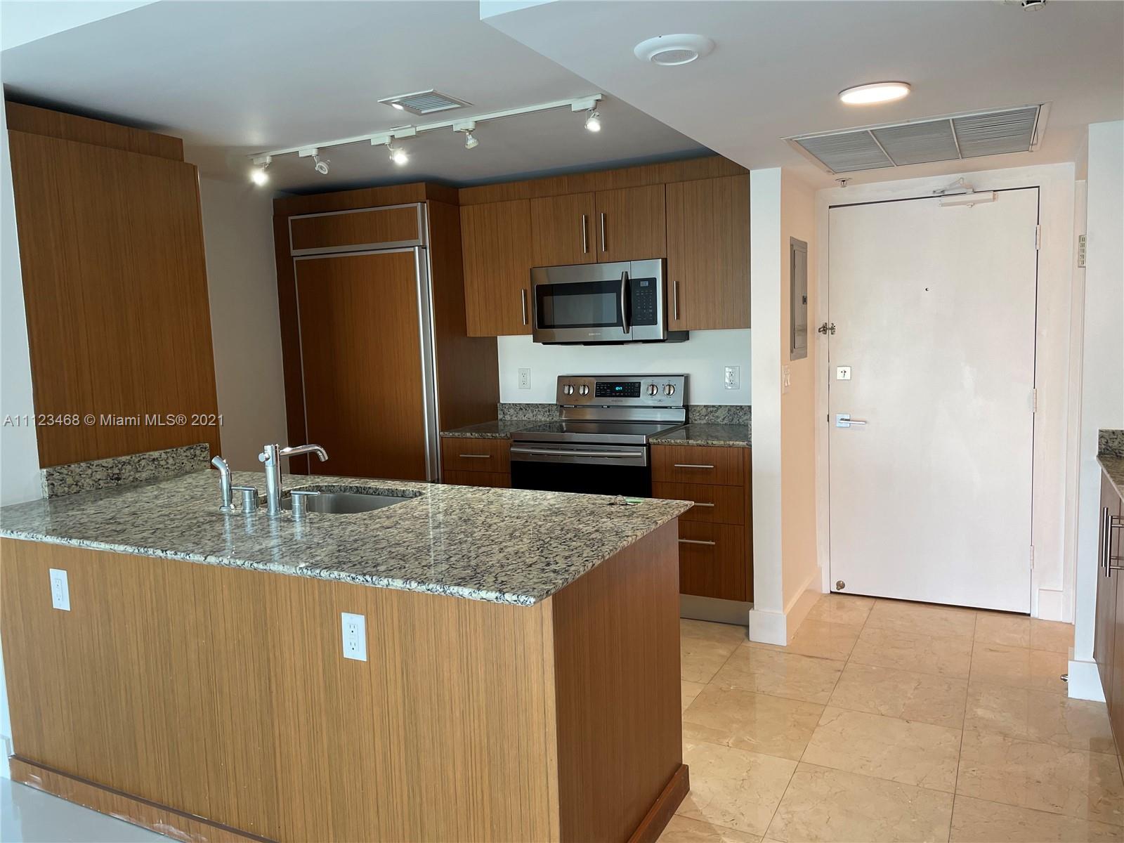 Enjoy beautiful sunsets from this Spacious 1 Bed, and 1 1/2 Baths apartment. The unit has new porcelain tile floors, an open kitchen with Italian cabinetry, granite countertops, a subzero fridge, a washer and dryer, and a spacious walking closet. The condominium offers beach service, has a daily gourmet market and cafeteria, security 24/7, landscaped poolside with cabanas, bar and grills, a gym with a steam room and sauna, a party room, and a theater. Tenant occupied until 02/14/2022.