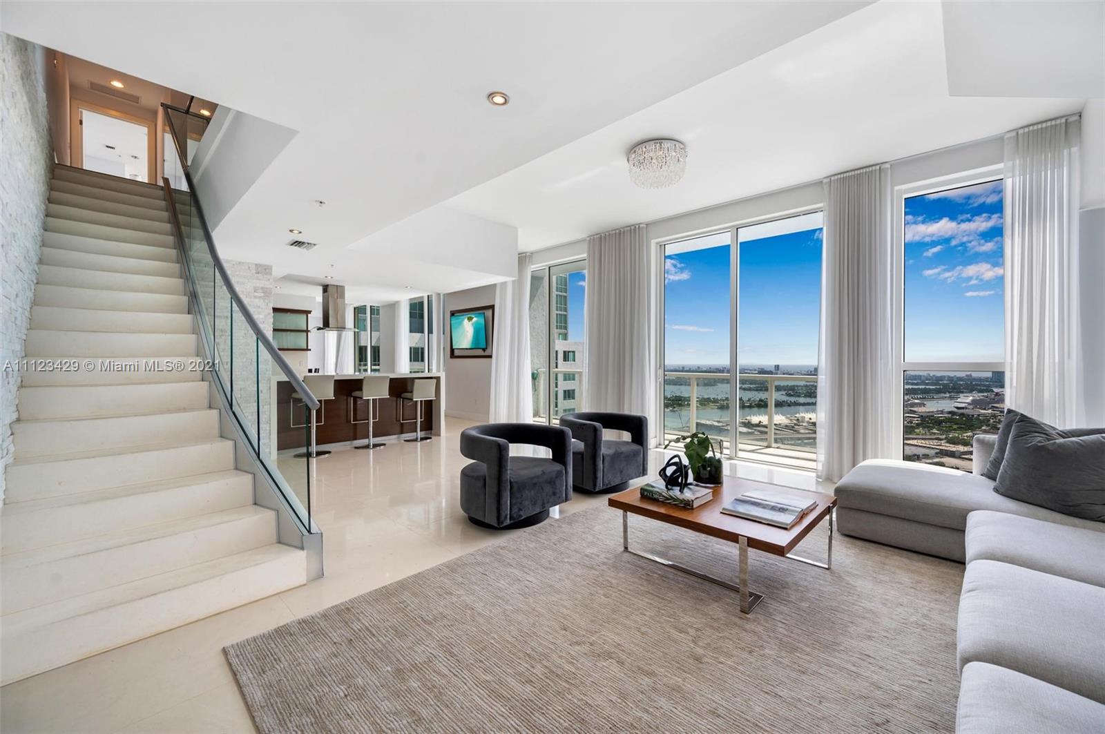 PH4907 at Vizcayne boasts 3,020 sq ft under AC over 3 levels of living, including a PRIVATE ROOFTOP overlooking the Bay & South Beach & 2 additional levels of terrace space. PH4907 is a turn-key, freshly furnished & painted masterpiece in the epicenter of everything Downtown Miami has to offer. On entry level, residents are greeted by a double-door entryway and 10 FT ceilings, accompanied by formal living area, large, open kitchen, formal dining room, laundry room, and a full bath + powder room. 2nd level is encompassed by the primary suite w/over-sized closet, 2nd suite with en-suite bath, a 3rd full bath + den. 3rd FL has private rooftop, full bath, and large open area. Vizcayne has 4 pools, fitness center, spa w/sauna & steam, running track, & doorman. 3 ASSIGNED PARKING + storage.