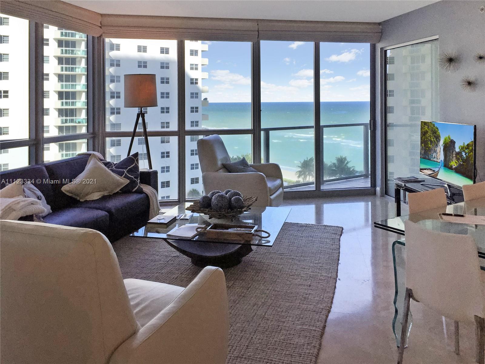 Spectacular 3 bedroom/3.5 bath unit with ocean and Intracoastal views. Elevator opens into your own private vestibule. This fabulous property features a beautiful open kitchen with granite counter tops and breakfast bar, custom lighting throughout, mirrors strategically placed in the living room and master bedroom to bring in the ocean views from every angle. Five star luxury building with direct ocean access to beautiful Hollywood Beach. Prime building services includes concierge, valet parking, heated pool with service attendants, state of the art fitness center, business center, billiard room, media room, tennis & basketball courts for your perfect beach lifestyle.
