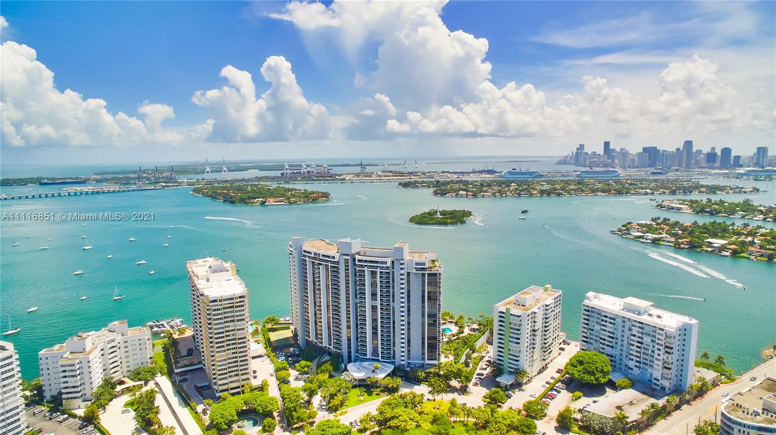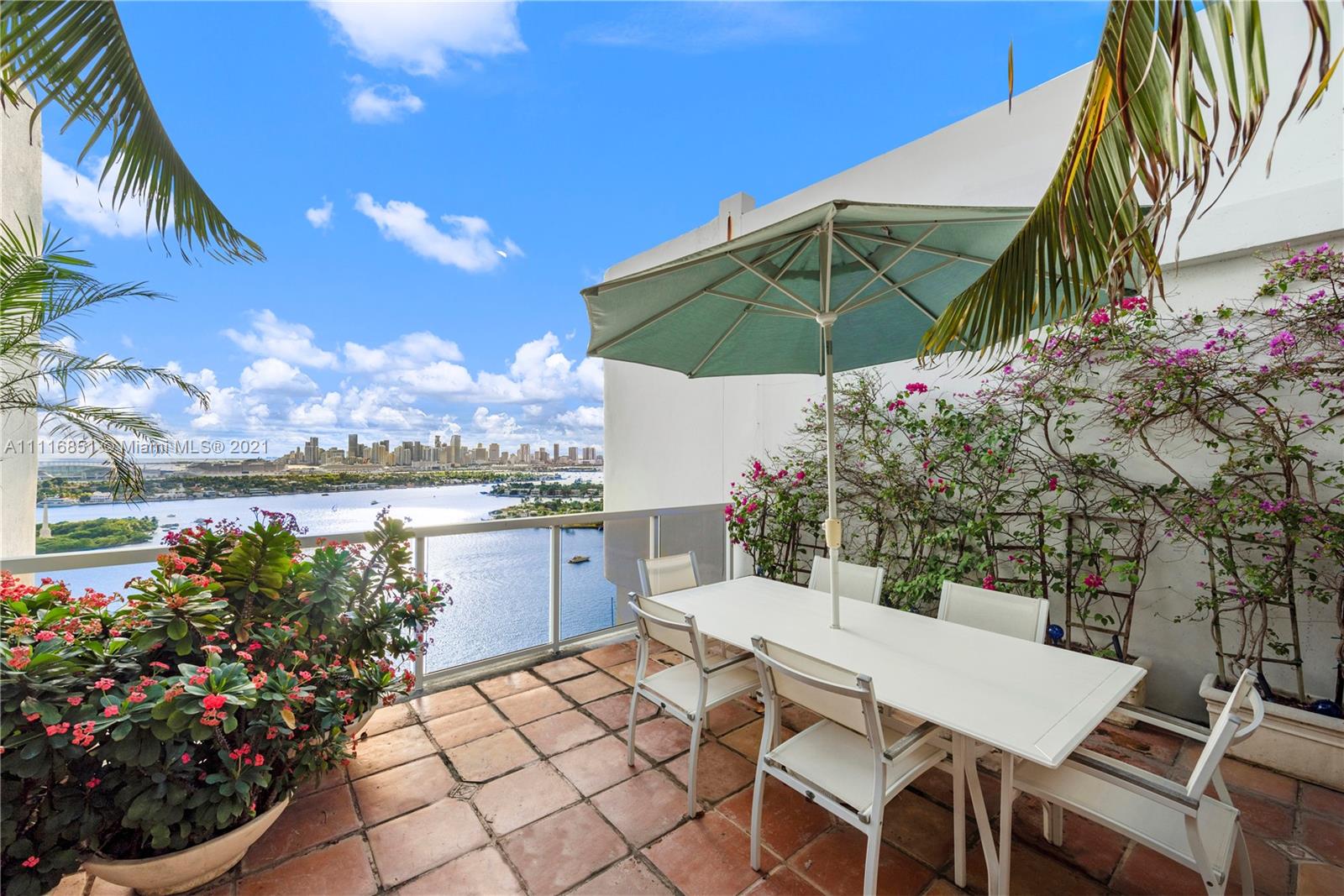 Best downtown & sunset views from this gorgeous 2 bed/3 bath plus Den in highly sought after full service luxury bldg. "Nine Island". Live the Miami Beach lifestyle from your rarely available Tower suite overlooking the bay & ocean with 180 degree views from every room! Relax on your huge patio terrace with lush greenery, and entertain friends at your spacious bar with great views! Enjoy just renovated grand lobby w/ new mezzanine floor, gym, in-house restaurant, children's play area, BBQ area, pool, tennis courts, & more! Close proximity to Belle Isle Park, Lincoln Road, Sunset Harbour, Trader Joe's, dining, shopping, top schools, medical center, airport, & beaches. 2 assigned parking + valet.