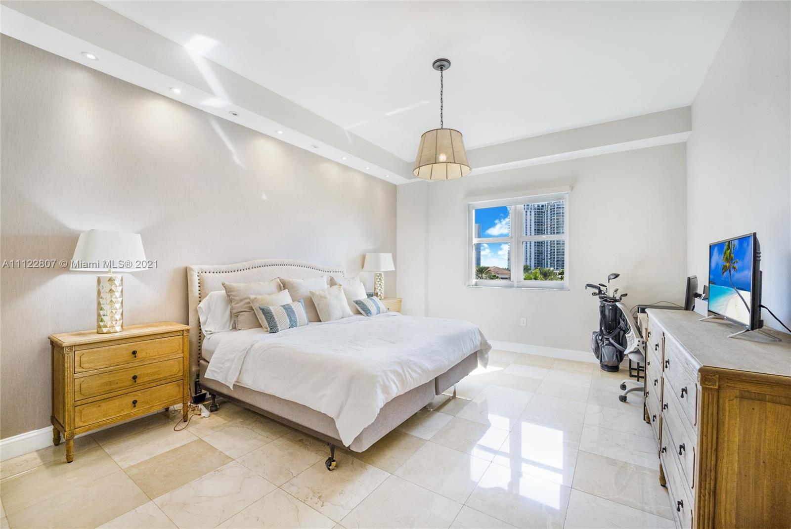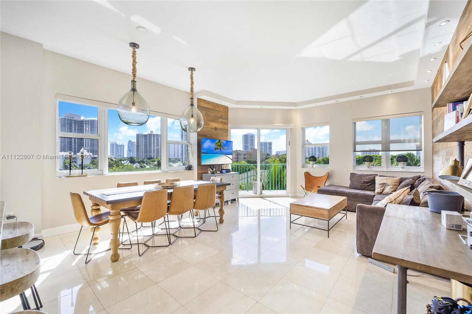 Cozy home feeling unit with high ceilings and very relaxing views from every room. professionally decorated. Marble floors throughout, open kitchen, 3 Bedrooms, 3 Baths, Master with large sitting area, custom made closets' interiors, and more. Turnberry Village is centrally located on East Country Club Drive within minutes to fine shopping, dinning and houses of worship. Amenities such as Pool, Jacuzzi with large terrace, BBQ areas, Teens Room, Fully equipped Gym, Sauna, Party Room and more. 2 Assigned parking spaces on same floor and Storage. Maintenance includes basic cable and internet. A must see.