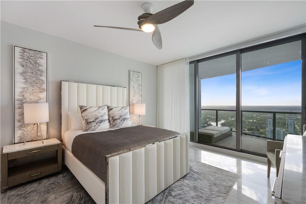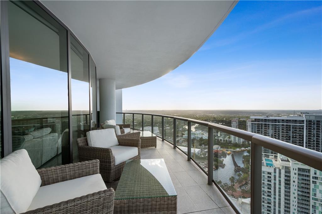 Incredible residence located on Las Olas Blvd, in Fort Lauderdale’s newest luxury Highrise, 100 Las Olas. This stunning 3 bedroom condo with a Den and 3 ½ baths has it all. Amazing views stretching from the River to the Ocean, soaring high above the city on the 40th floor with floor to ceiling windows throughout. Motorized black out shades in bedrooms, and motorized shades for living room and dining room windows. Beautiful gourmet kitchen with high end appliances & finishes. Wet bar with wine cooler and tile floors throughout. Walk in laundry with W/D and upgraded lighting and electronics. Unit is fully furnished and has 3 parking spaces. Building has separate amenities from the Hyatt, and 24 hour security.