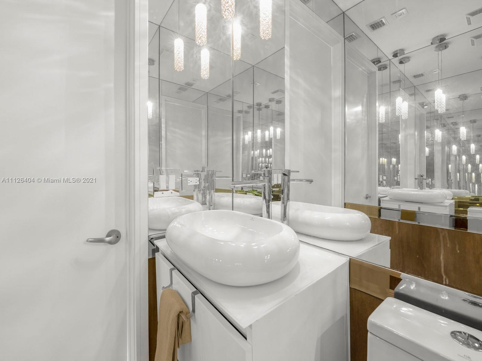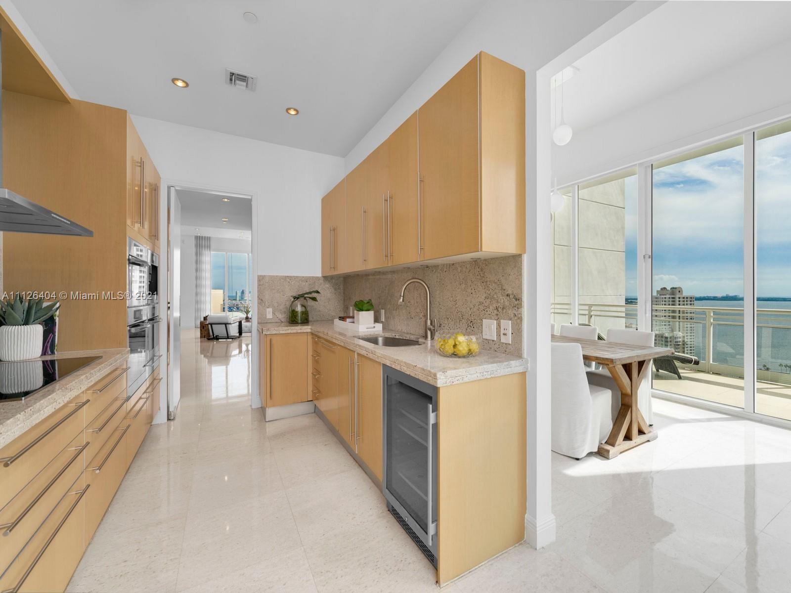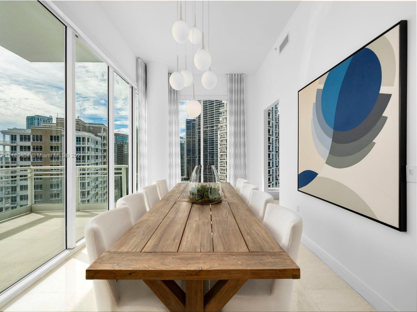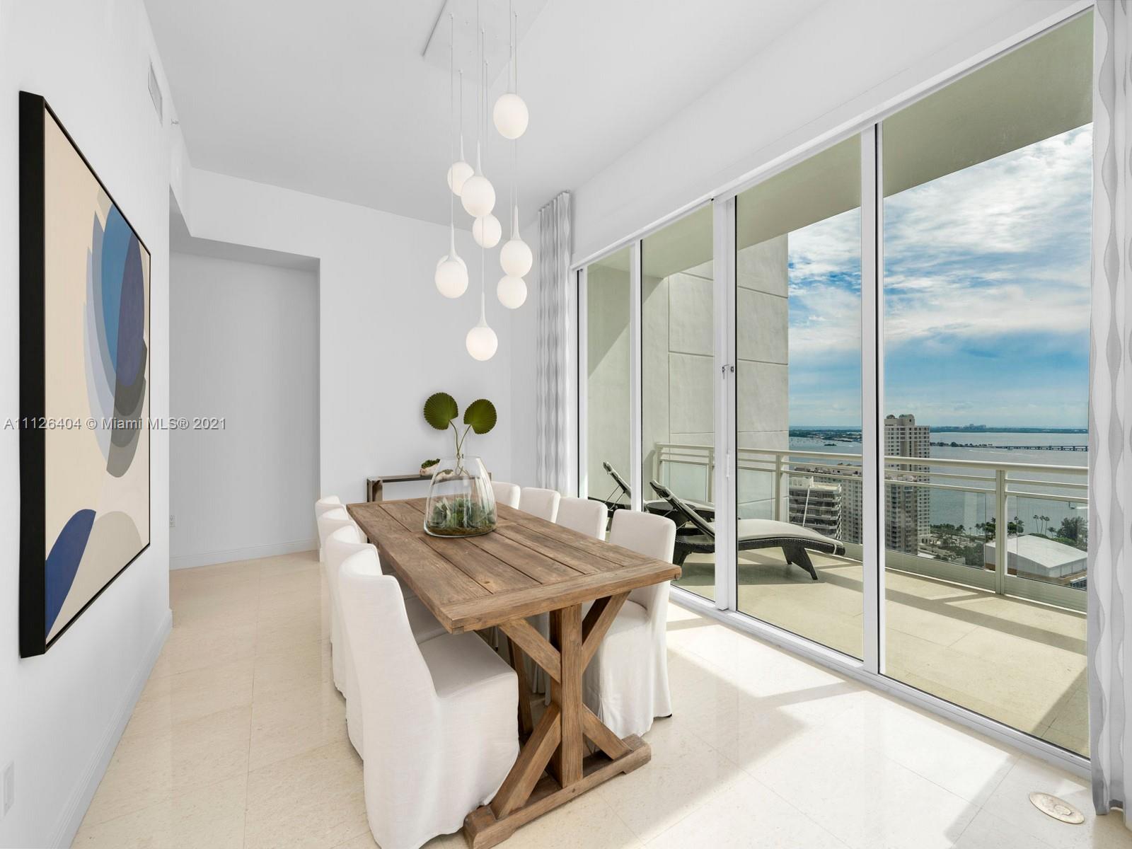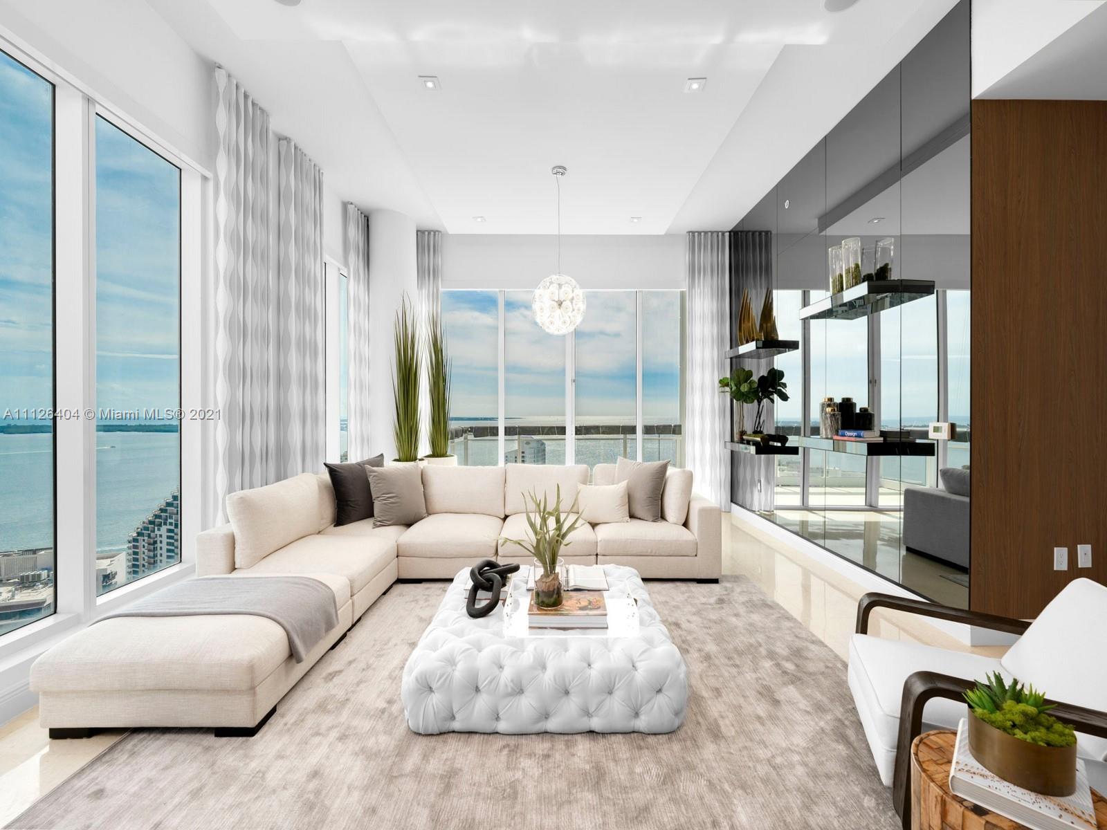 An exquisitely designed corner unit at Asia in the desirable island of Brickell Key. As you enter private elevator to foyer, you are mesmerized by the 12-foot ceilings and views of Miami's finest skyline. This unit features 3 bedrooms, 4.5 bath, den , 4 balconies, private elevator, 2 assigned parking spaces, storage unit, complimentary valet and exceptional amenities such as tennis court, swimming pool, lap pool, gym, sauna, racquetball court, 24 hour concierge, valet, and security.