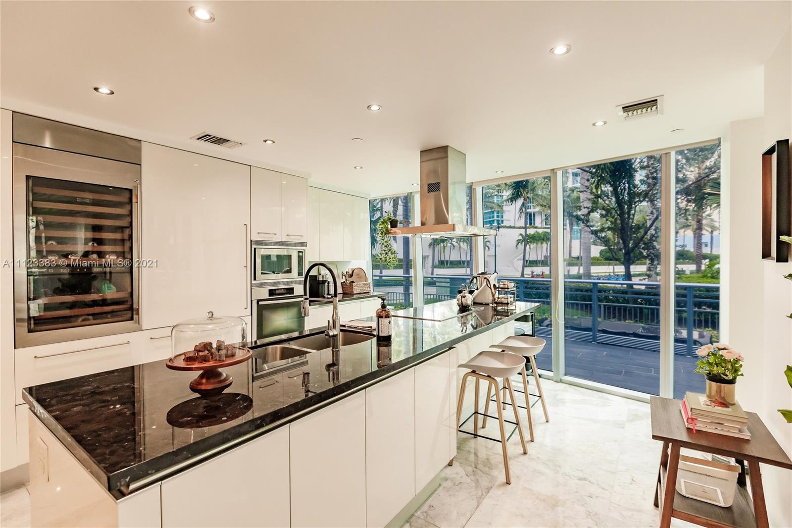 Beautiful modern waterfront building, GROUND FLOOR unit. This is the largest 4 BED/ 4.5 Baths. Huge Private Lanai , 2 Assigned parking spaces. Extra Storage space. Unit is similar to a townhouse, but with 5* Start building amenities, updated fitness center, yoga, 2 swimming pools, tennis, racquet ball court, movie theater, marina, 24hs concierge and valet service. Two deeded parking (accommodate four cars) Sub-zero refrigerator and Italian kitchen cabinet. Marble Floors. Walking distance to shopping, schools and restaurants and Minutes from the beach and I95. One of the most desirable location in Aventura. In Living conditions. Bring your toothbrush !!