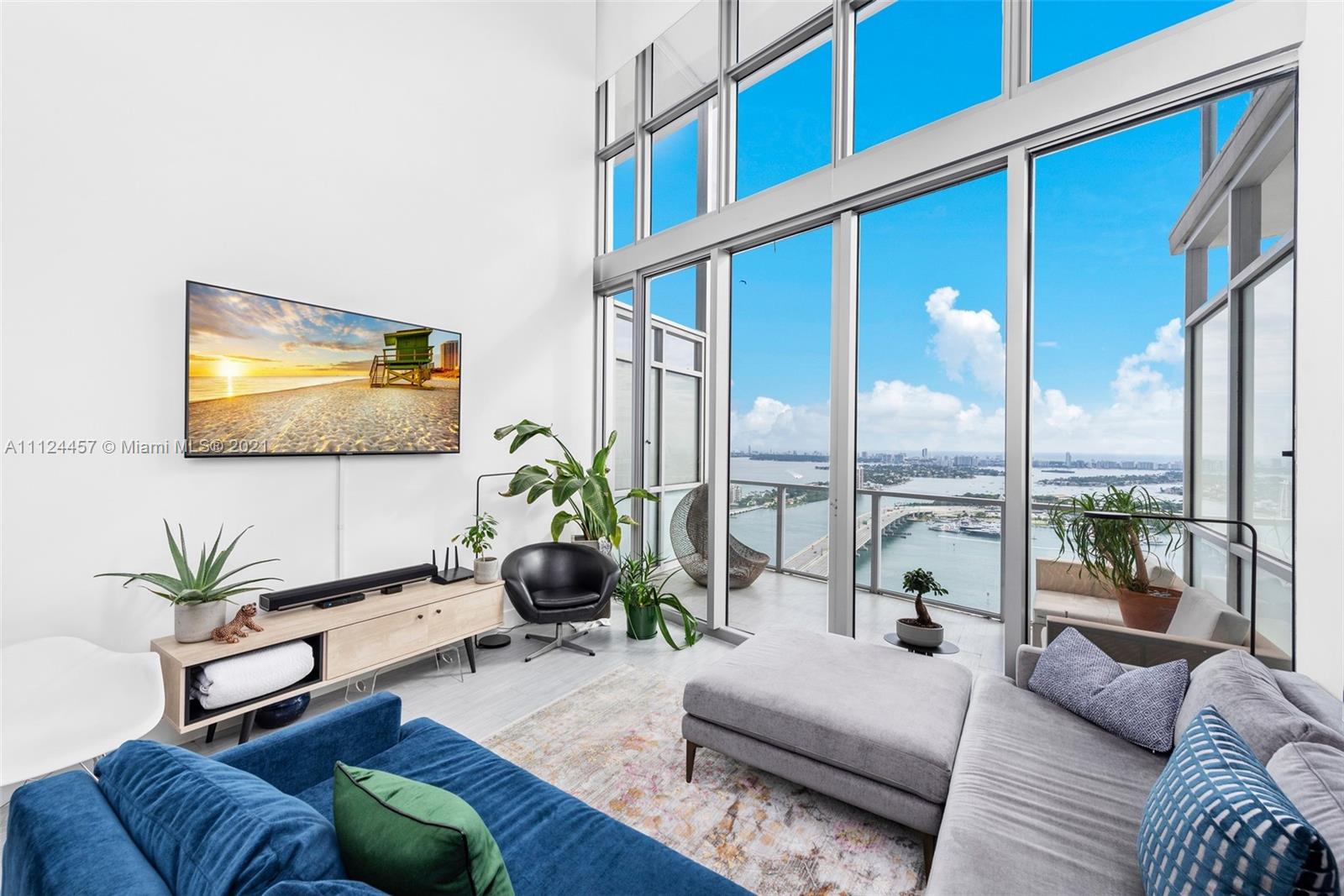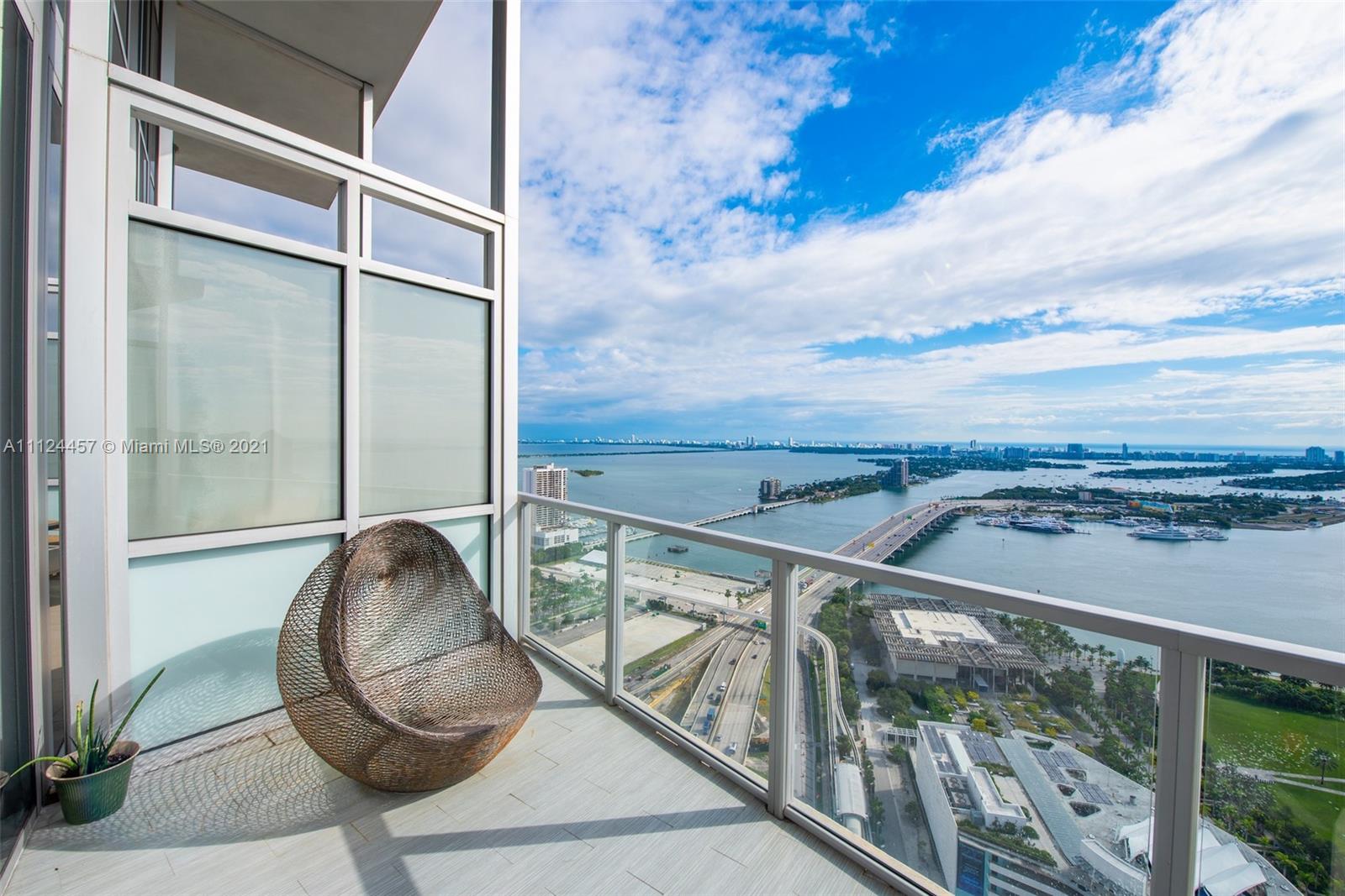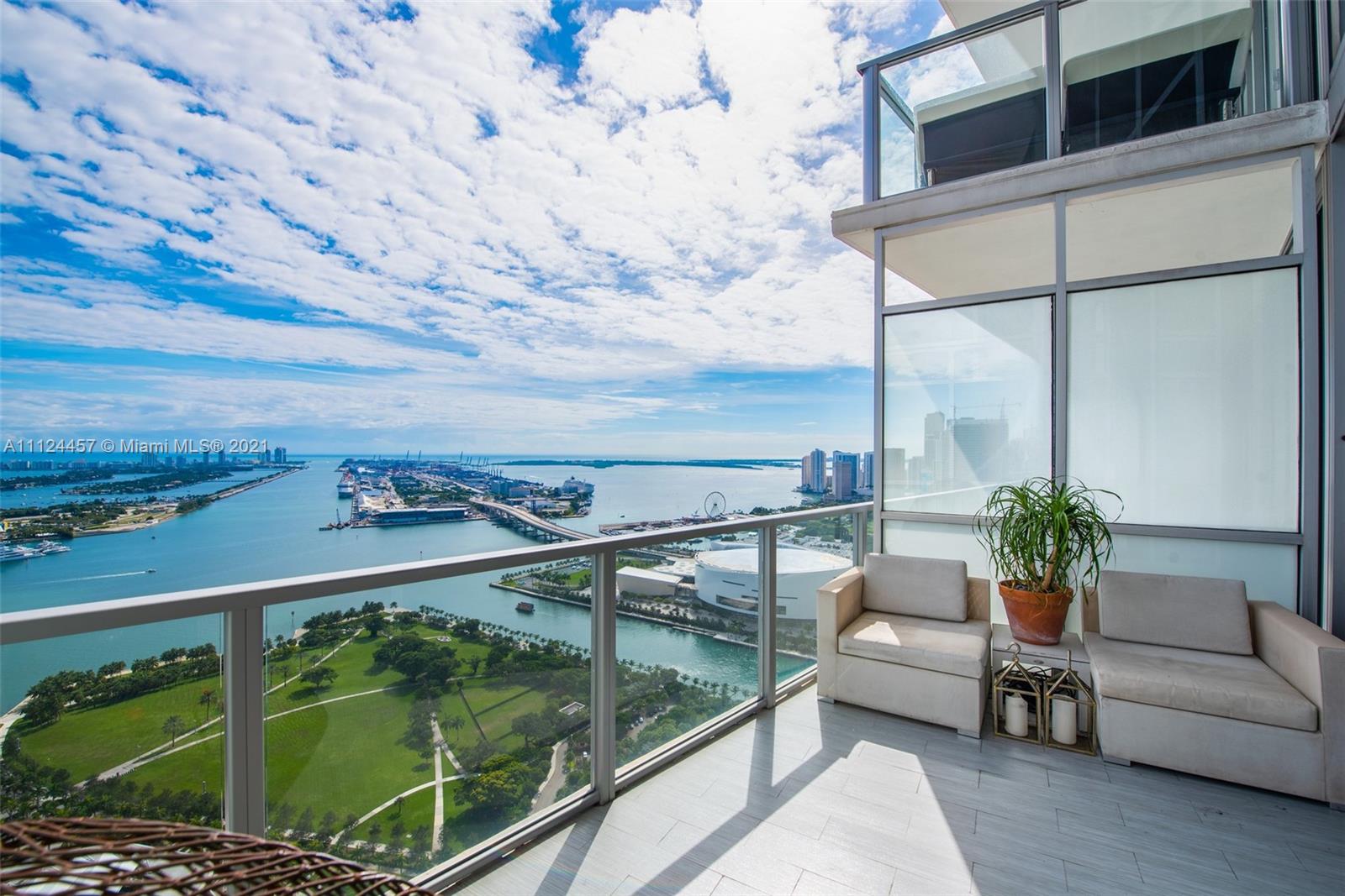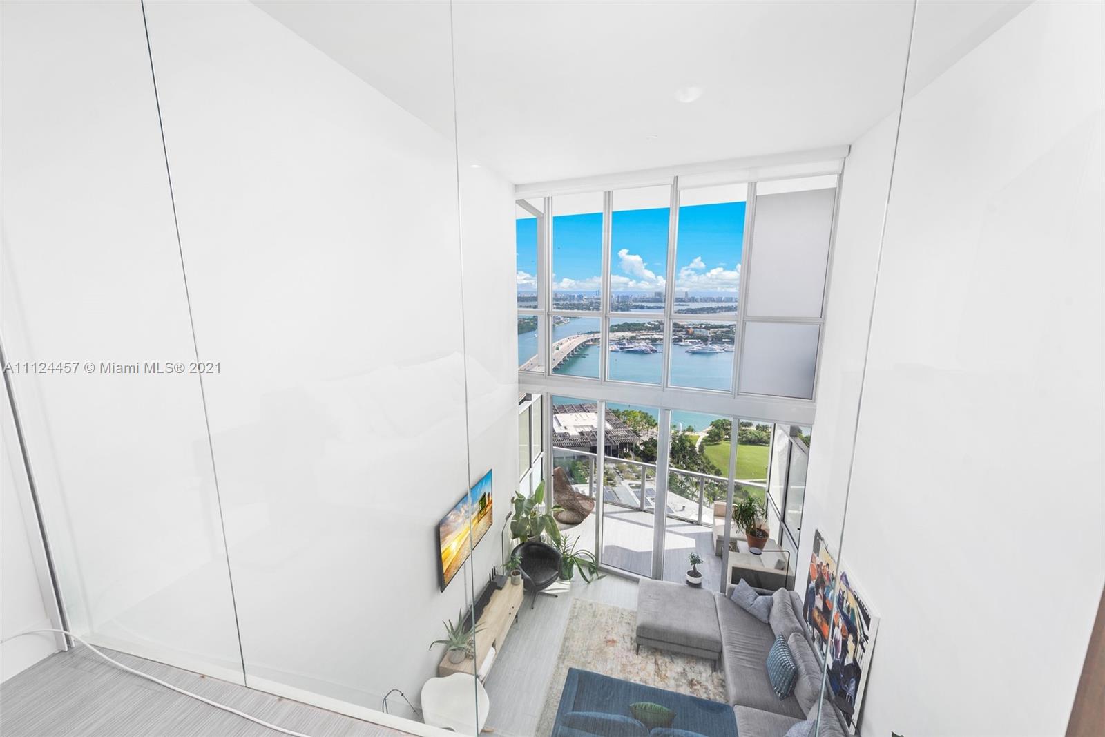 Modern 2-story 20' ceiling Loft-style 1 Bedroom + large Den with built-out closet, 2 full Baths residence with panoramic unobstructed views from Biscayne Bay beyond the island of Miami Beach and the open Atlantic Ocean, with incredible sunrises. The Primary Suite features a frameless glass enclosed shower showcasing all the views, dual vanity and built in walk-in closet. Floor to ceiling, wall to wall framed glass overlooking downstairs Living room and all the panoramas. 20" Top of the line appliances. 5 star amenities including concierge, 24/7 security, valet, swimming and lap pool, fitness center, spa pooolside Champaign bar, adult and kids game rooms and more! Walking distance to FTX Arena, Arsht Center, Bayside, Museum Park, the PAM Museum and the Science Museum.