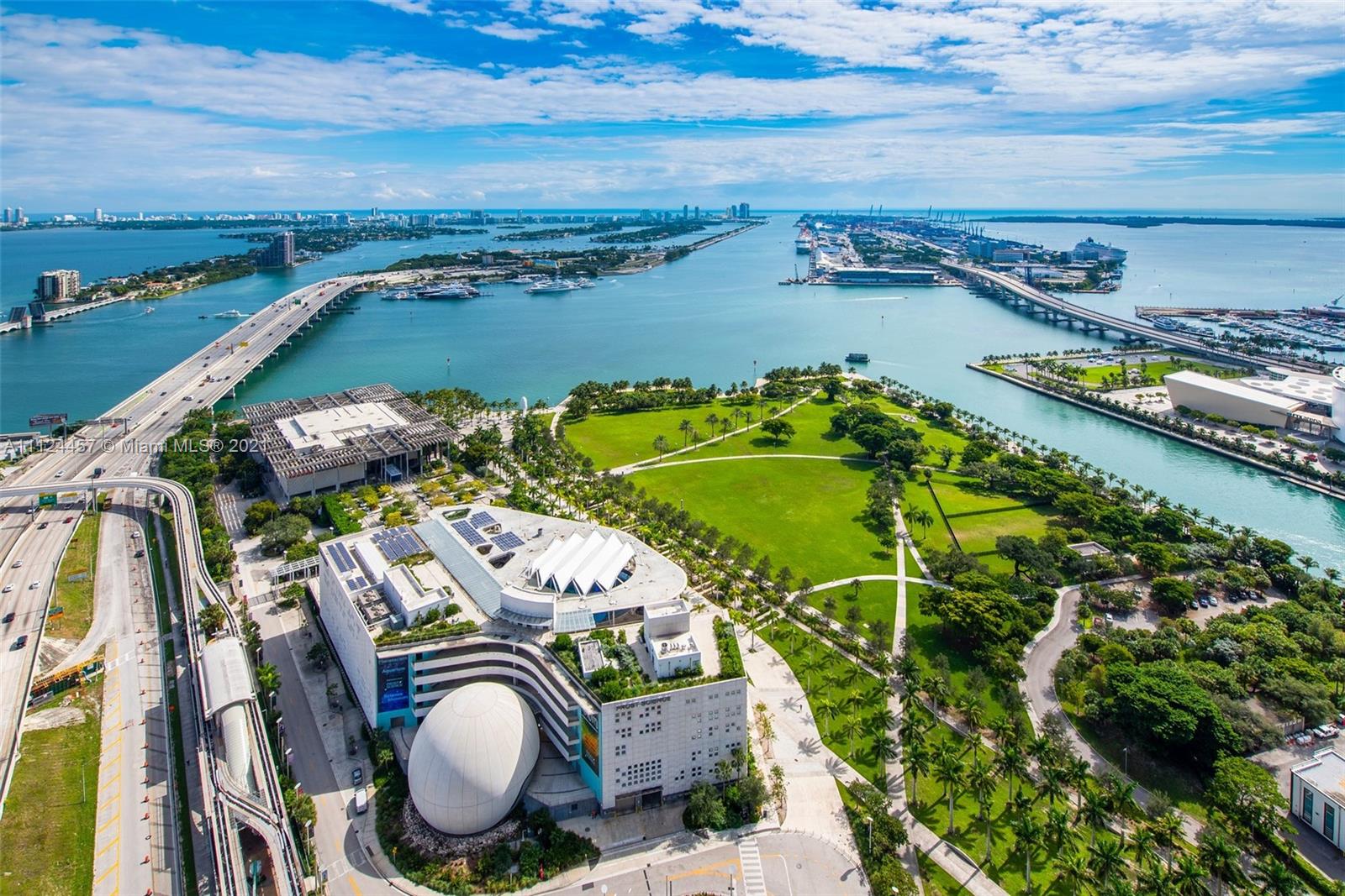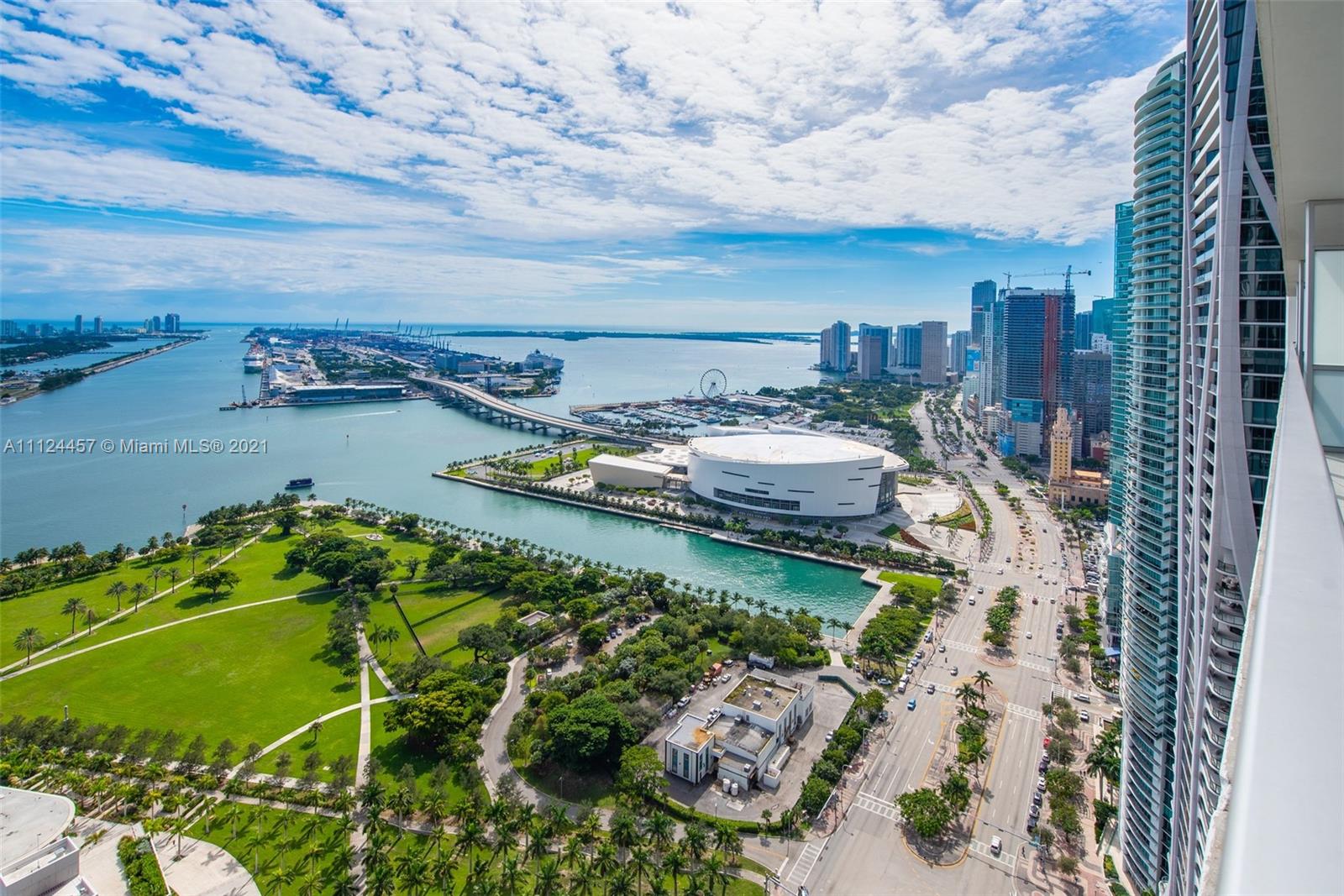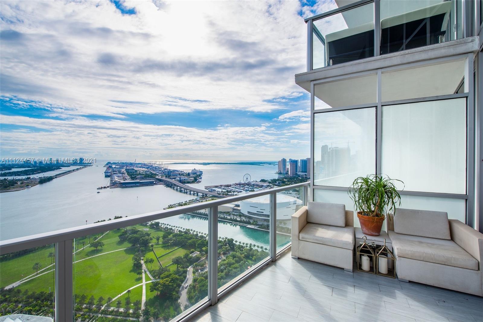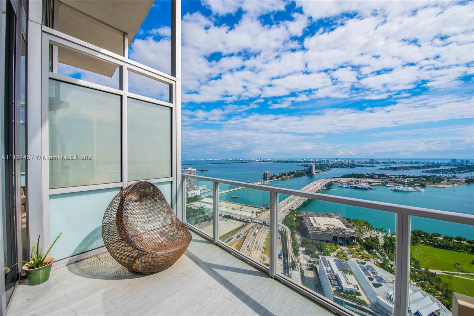 Modern 2-story 20' ceiling Loft-style 1 Bedroom + large Den with built-out closet, 2 full Baths residence with panoramic unobstructed views from Biscayne Bay beyond the island of Miami Beach and the open Atlantic Ocean, with incredible sunrises. The Primary Suite features a frameless glass enclosed shower showcasing all the views, dual vanity and built in walk-in closet. Floor to ceiling, wall to wall framed glass overlooking downstairs Living room and all the panoramas. 20" Top of the line appliances. 5 star amenities including concierge, 24/7 security, valet, swimming and lap pool, fitness center, spa pooolside Champaign bar, adult and kids game rooms and more! Walking distance to FTX Arena, Arsht Center, Bayside, Museum Park, the PAM Museum and the Science Museum.