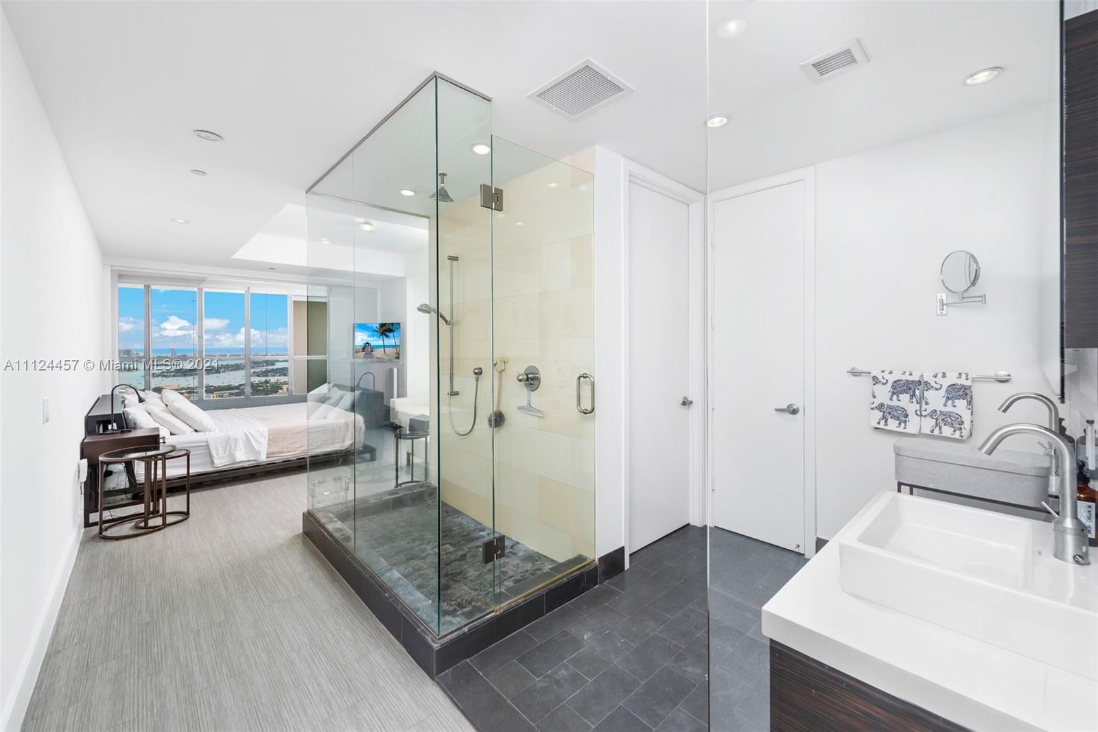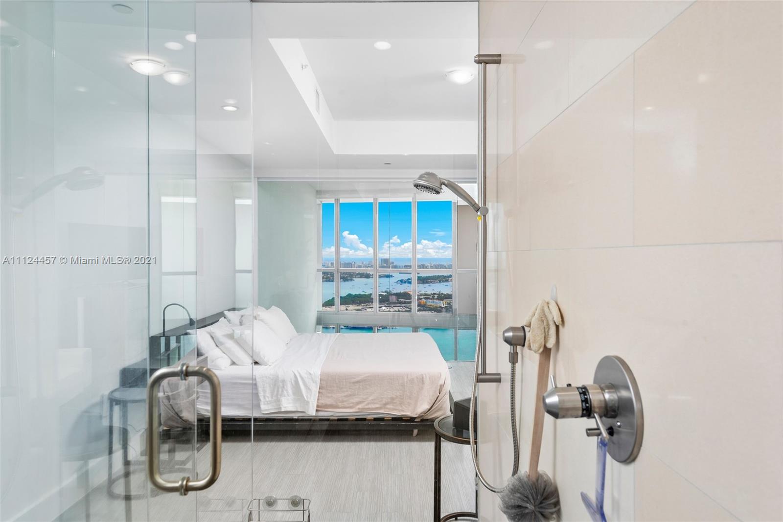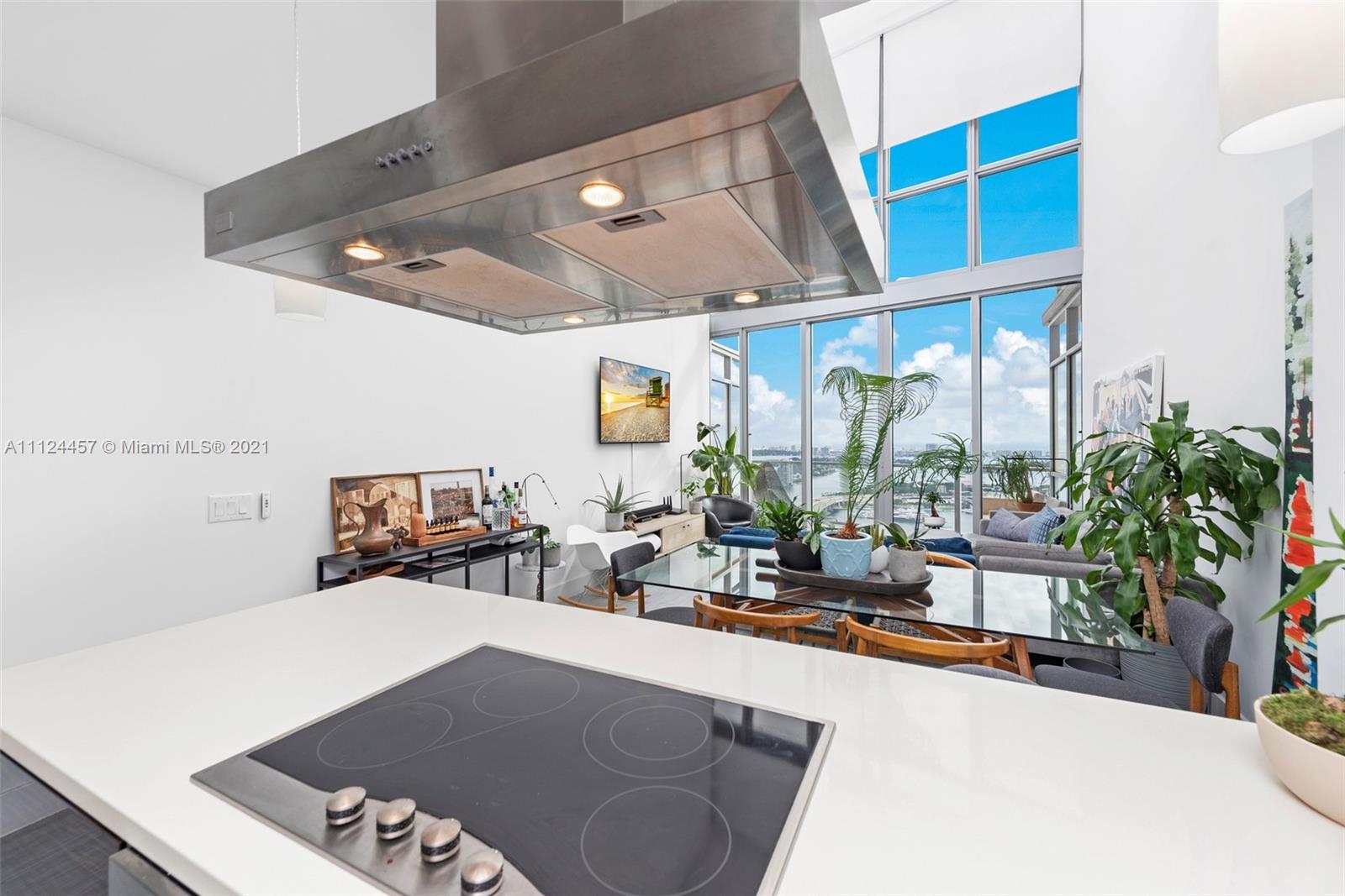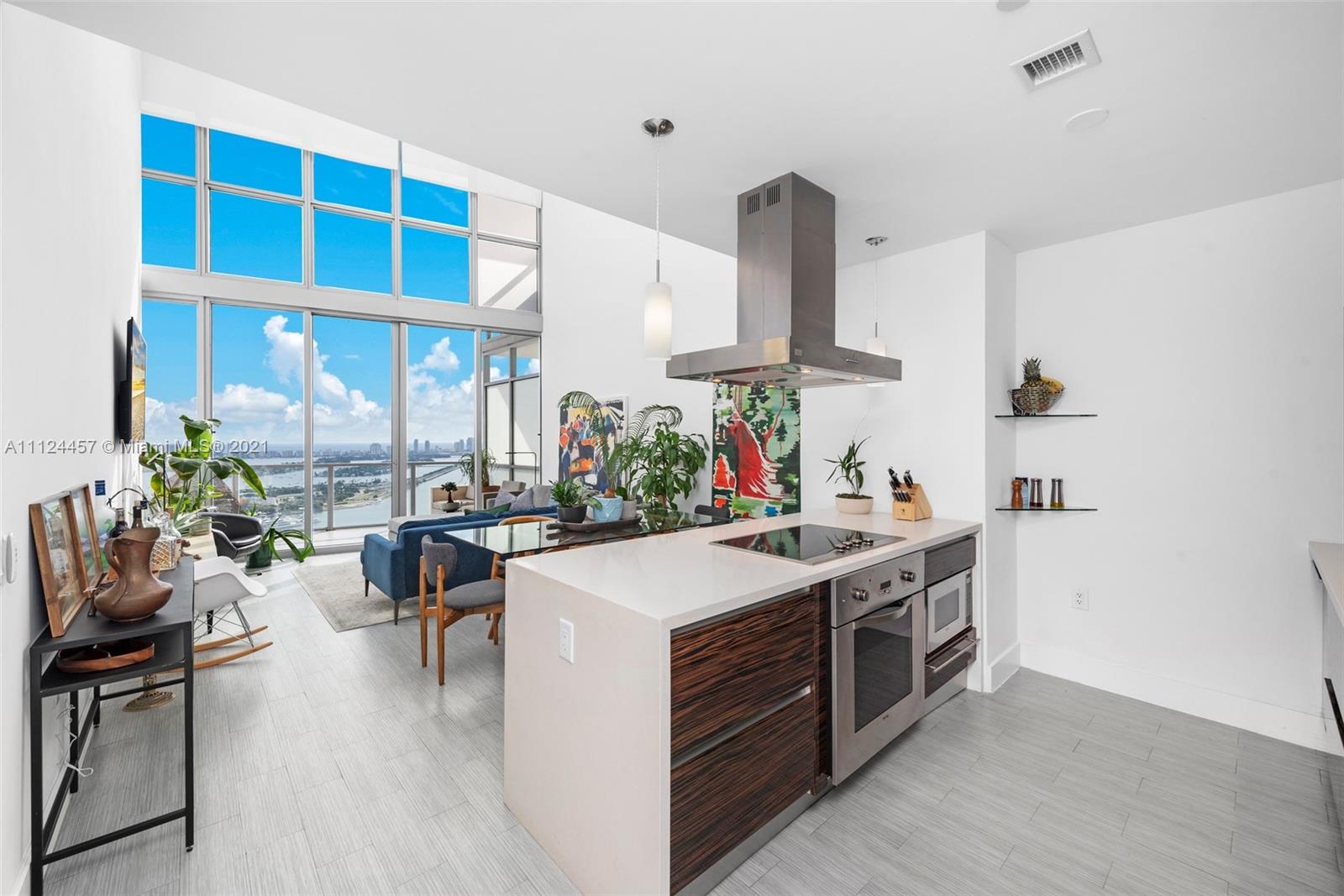 Modern 2-story 20' ceiling Loft-style 1 Bedroom + large Den with built-out closet, 2 full Baths residence with panoramic unobstructed views from Biscayne Bay beyond the island of Miami Beach and the open Atlantic Ocean, with incredible sunrises. The Primary Suite features a frameless glass enclosed shower showcasing all the views, dual vanity and built in walk-in closet. Floor to ceiling, wall to wall framed glass overlooking downstairs Living room and all the panoramas. 20" Top of the line appliances. 5 star amenities including concierge, 24/7 security, valet, swimming and lap pool, fitness center, spa pooolside Champaign bar, adult and kids game rooms and more! Walking distance to FTX Arena, Arsht Center, Bayside, Museum Park, the PAM Museum and the Science Museum.