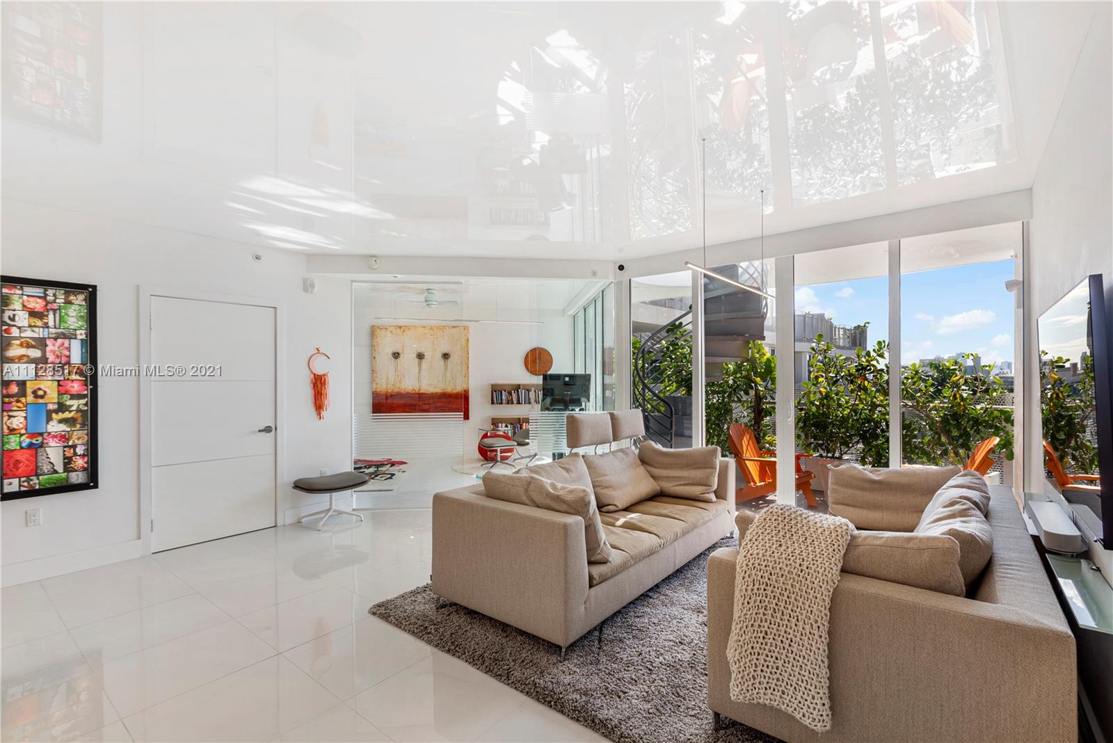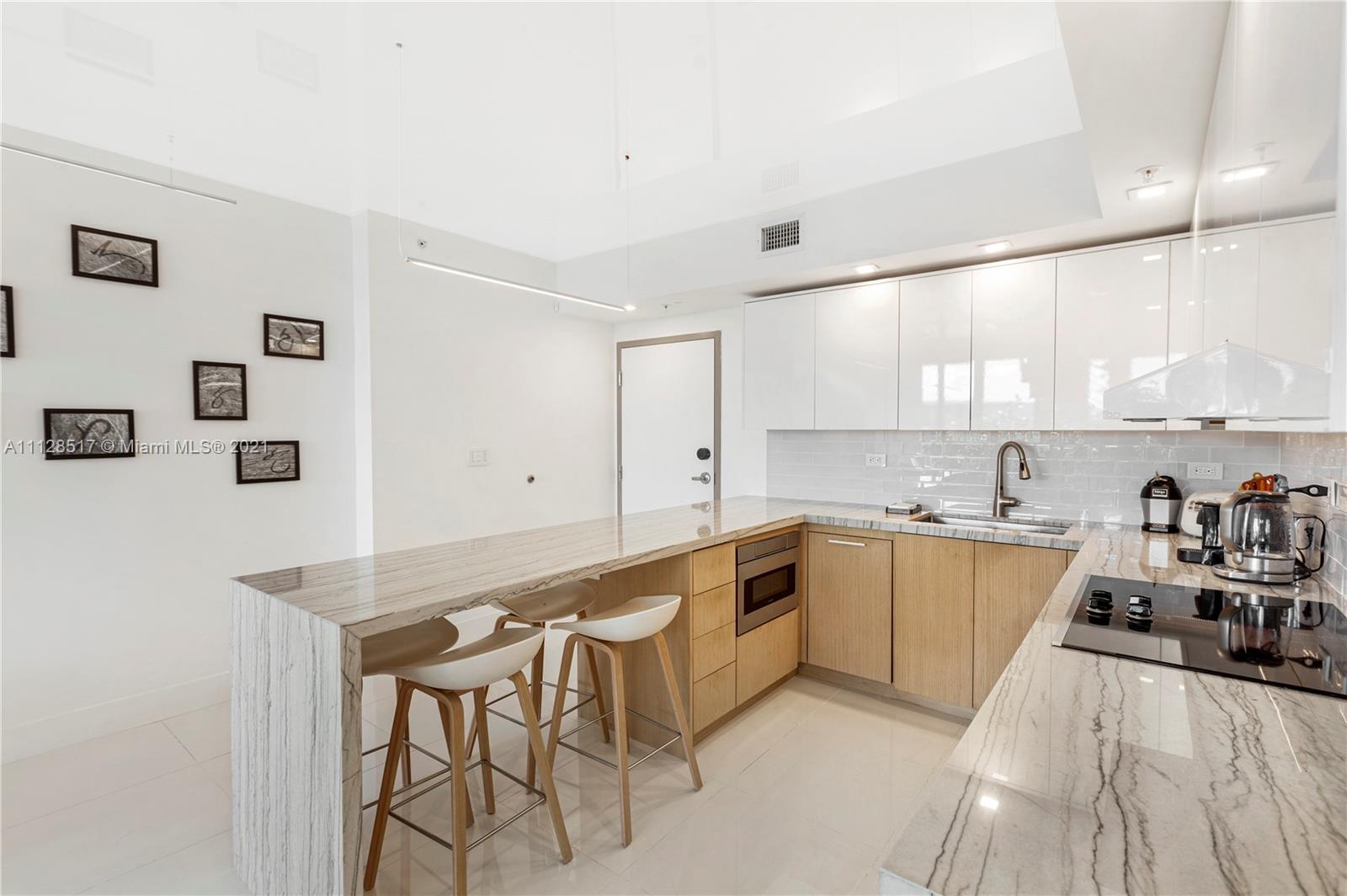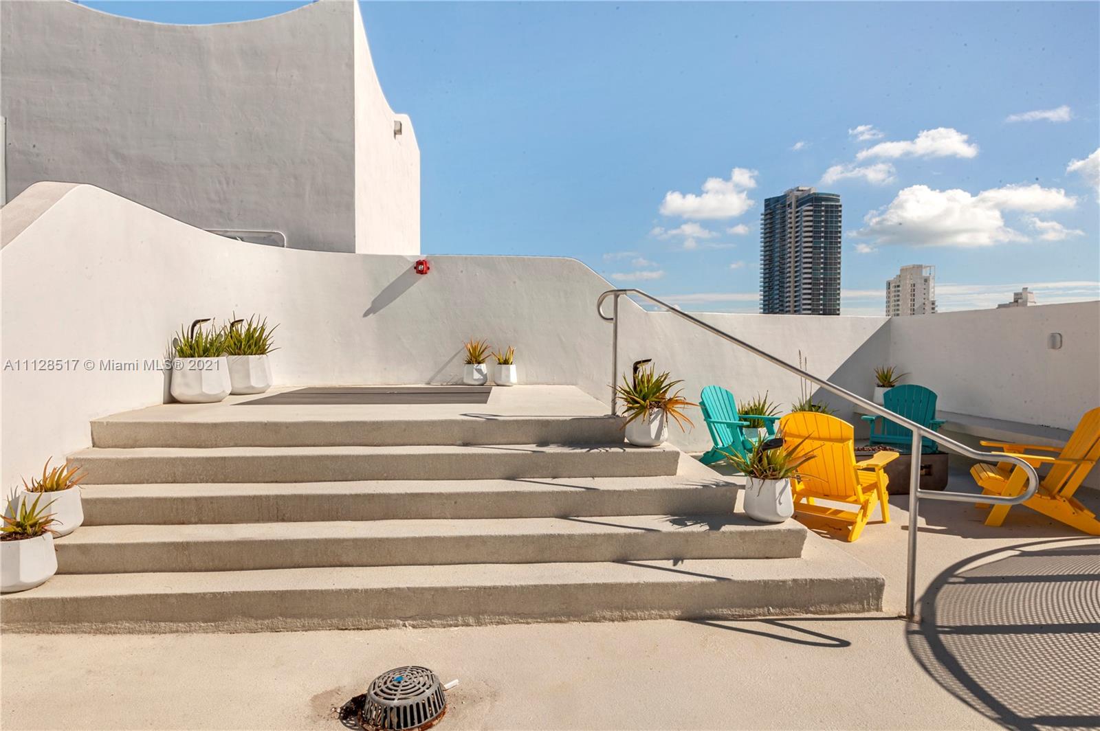 Artecity: Penthouse with Rooftop. Full home automation allows you to use a single button to adjust Lights, Temperature, Front Door Lock, Lights, Blinds, Sonos and Security Camera all from your phone. LED lights behind automated shades provides warm lighting in evening as well as privacy after dark. All new cabinetry in kitchen, baths and dressing area. Kitchen features: Subzero undercounter fridge and undercounter freezer along with undercounter microwave creates an uncluttered contemporary kitchen. Hi-Tech ceiling with custom LED bar lights for contemporary look. In addition to a quiet balcony, a private stair leads to your rooftop terrace which was recently resurfaced with premium grade traction coating and an area for sunning hides storage for gardening supplies or terrace furniture.