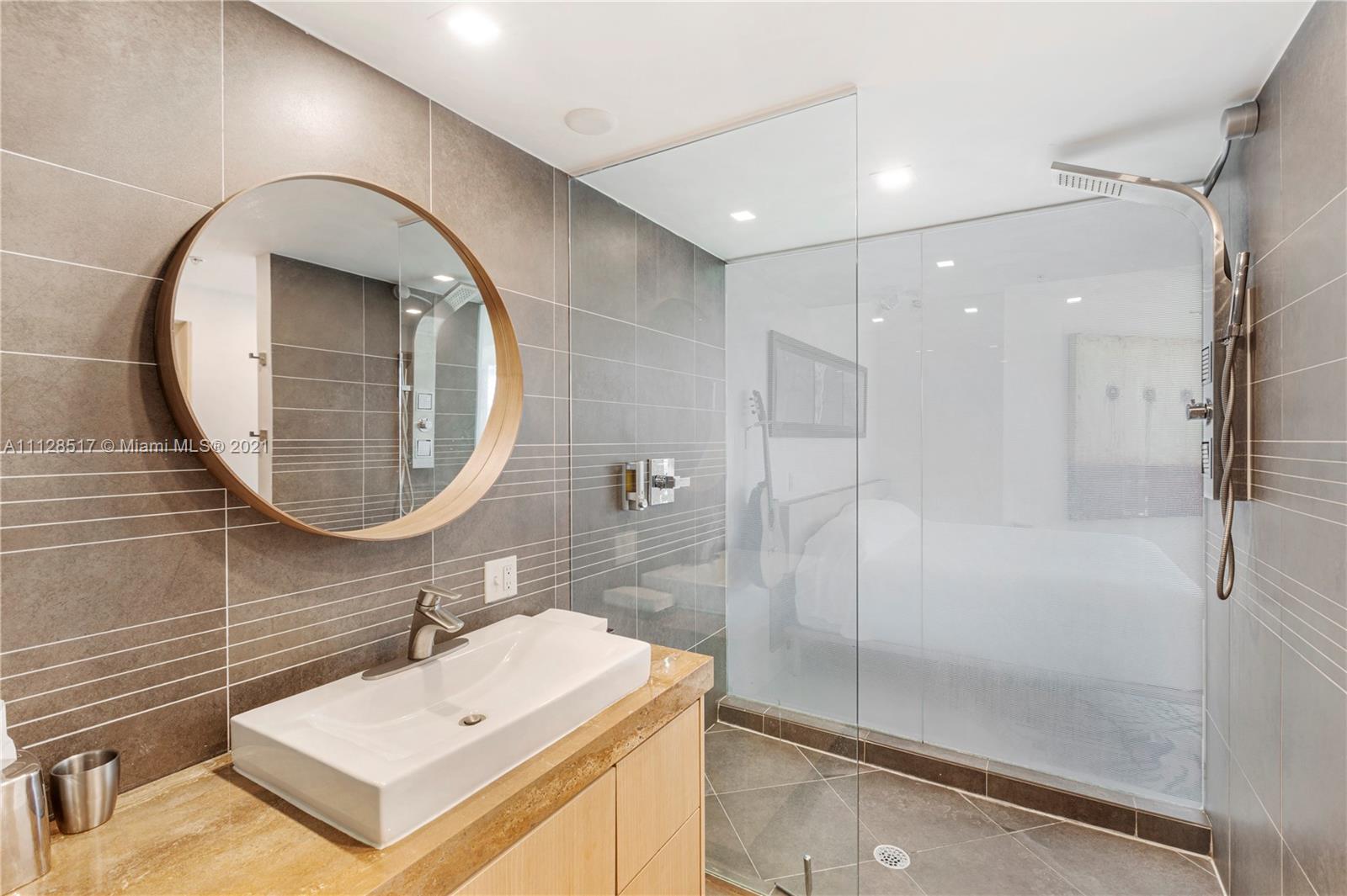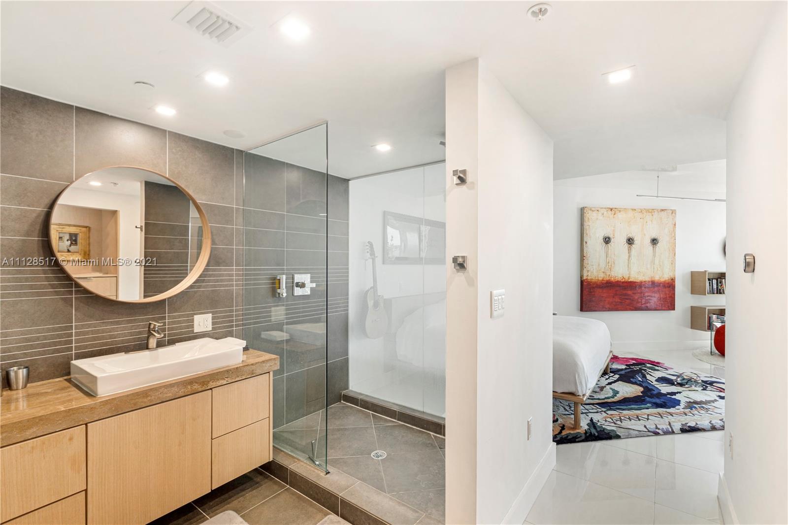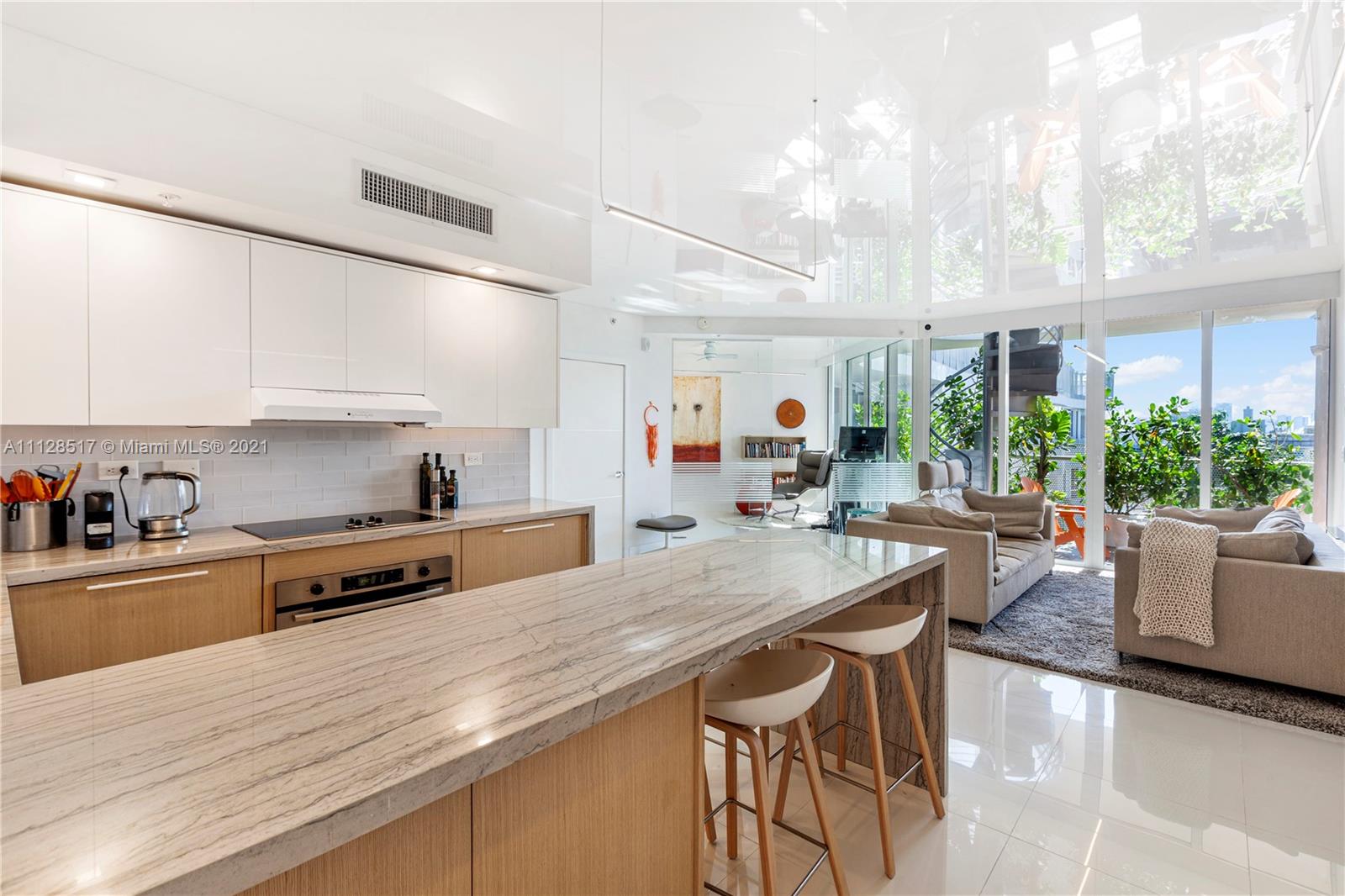 Artecity: Penthouse with Rooftop. Full home automation allows you to use a single button to adjust Lights, Temperature, Front Door Lock, Lights, Blinds, Sonos and Security Camera all from your phone. LED lights behind automated shades provides warm lighting in evening as well as privacy after dark. All new cabinetry in kitchen, baths and dressing area. Kitchen features: Subzero undercounter fridge and undercounter freezer along with undercounter microwave creates an uncluttered contemporary kitchen. Hi-Tech ceiling with custom LED bar lights for contemporary look. In addition to a quiet balcony, a private stair leads to your rooftop terrace which was recently resurfaced with premium grade traction coating and an area for sunning hides storage for gardening supplies or terrace furniture.