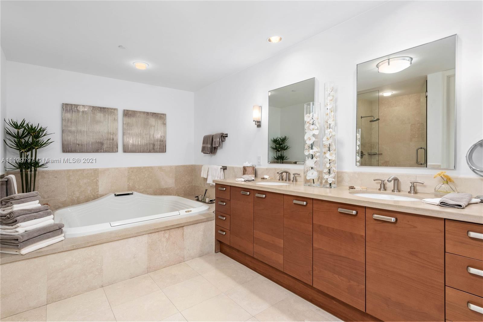Spectacular direct ocean views from this spacious four bedroom flow through unit at the prestigious Bath Club in Miami Beach. The professionally decorated nearly 4,000 sq ft apartment features a spacious master bedroom suite with two walk-in closets and an oversized master bath. Three well appointed additional bedrooms with en-suite baths also have a separate terrace with beautiful sunset views. The Bath Club is a five star luxury building with beautiful grounds, pool, tennis courts, gym, sauna and more!