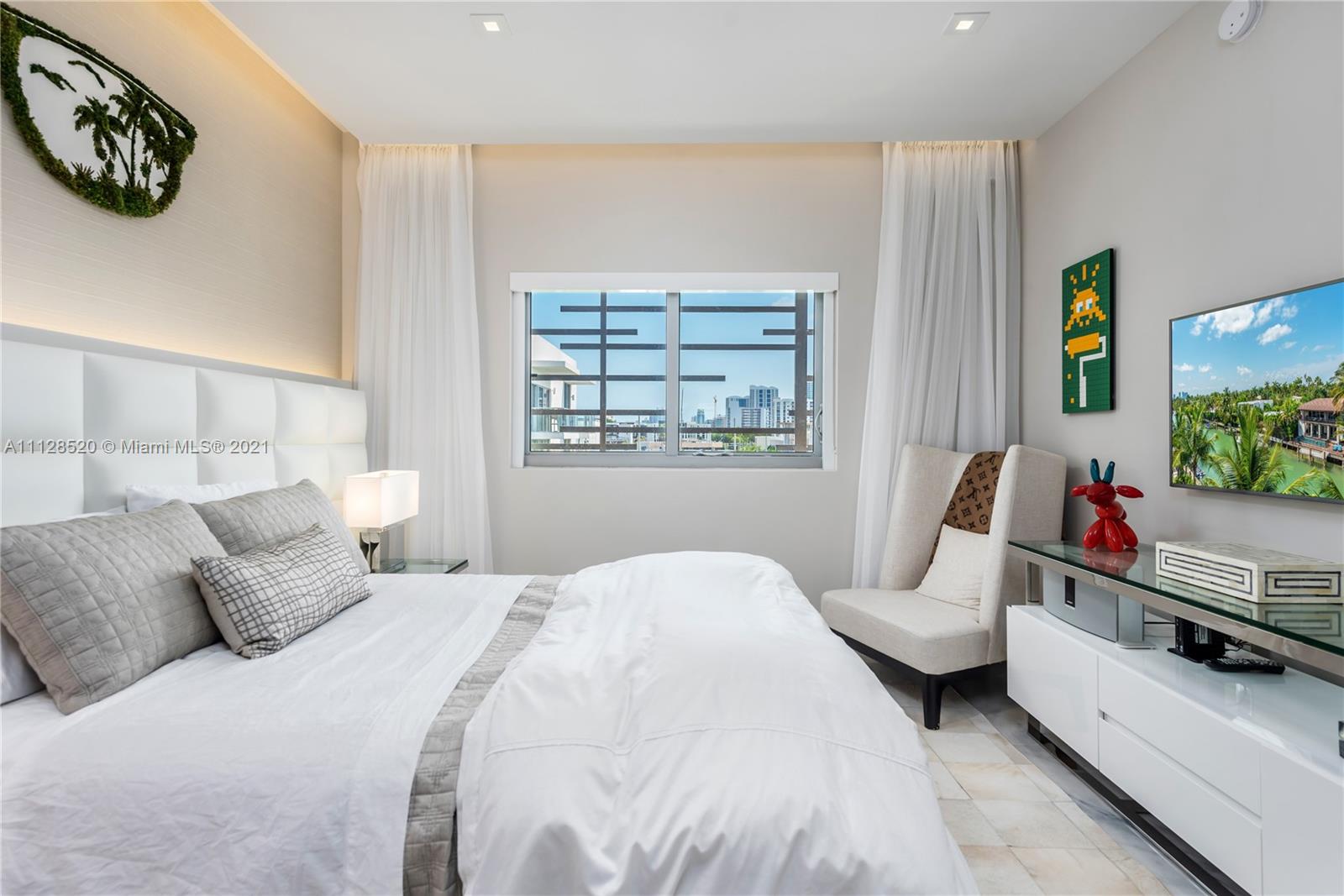 1 of only 4 treasured waterfront Penthouse at Palau. Enjoy scenic views from this 3bed/ 3.5 bath residence which is currently configured as a 2 bed/3.5 bath with an oversized great room, but easily converted back to a 3- bedroom floor plan. This award winning designer residence offers 10 ft ceilings, marble flooring, custom built-in wood work, stunning views of open bay and Sunset Islands. Interior Sq Footage of 1,810 sq feet plus 320 sf of balcony and a massive 1,920 sq feet of private Rooftop Terrace. Full Service building. 24 hour concierge, 24 hour Valet. Library, Gym and amazing rooftop pool. This is the best walking neighborhood in South Beach.