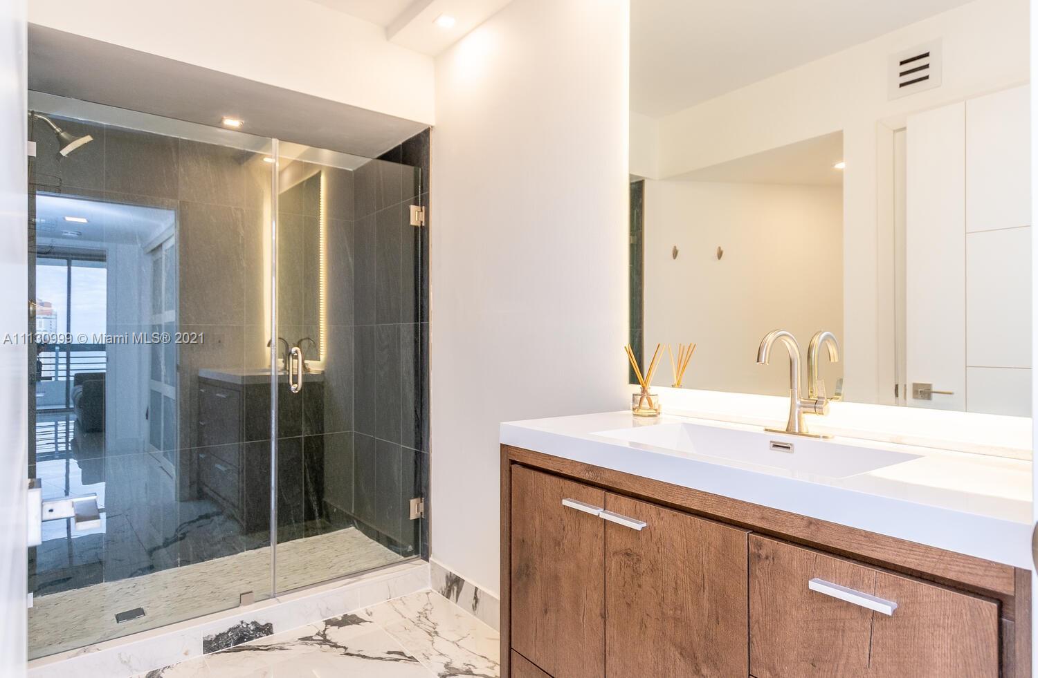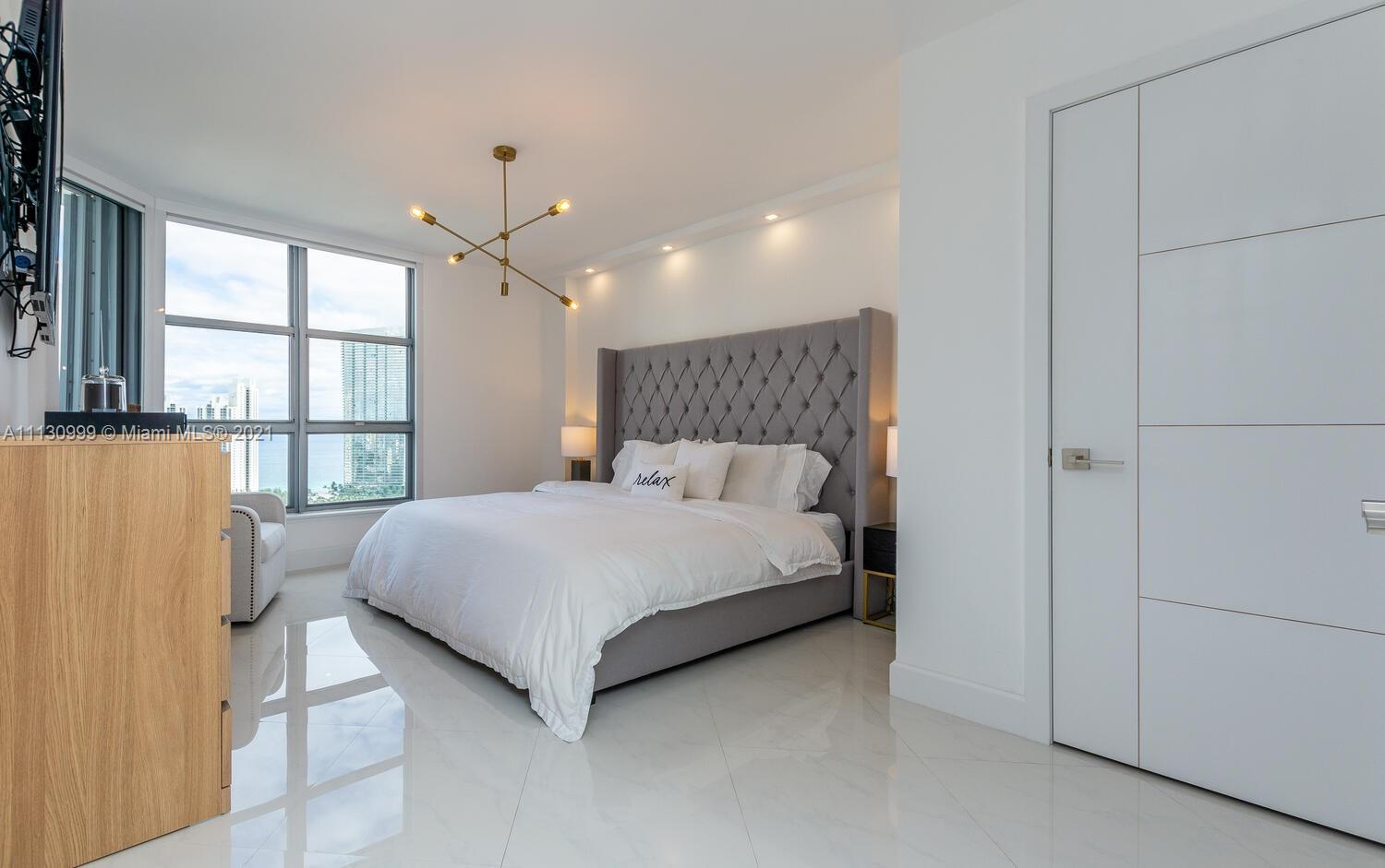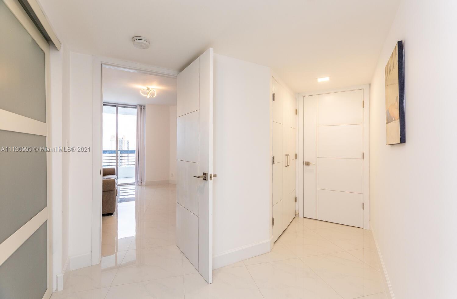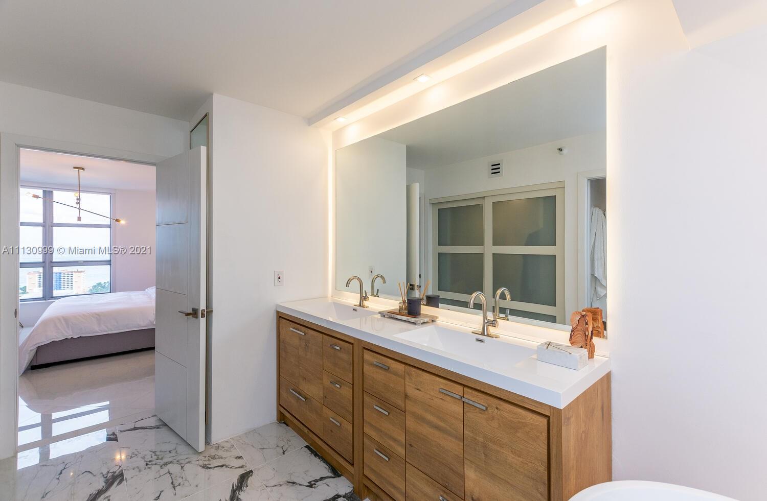 Rare Lower Penthouse with truly stunning direct views of ocean & intracoastal from the moment you enter. Open kitchen with quartz counters and recently purchased appliances (June 2021). Split layout. Resort style bath finishing's renovated top to bottom. Additional walk in closet in master bedroom with custom shelving. All interior doors have been upgraded with custom wood trimmings and accessories. No expense spared. Nothing like it for sale. Mystic 100 offers the most modern lobby renovations and elevators out of all towers. Hurricane shutters installed and maintained. 3 ton AC brand new, installed 2021.