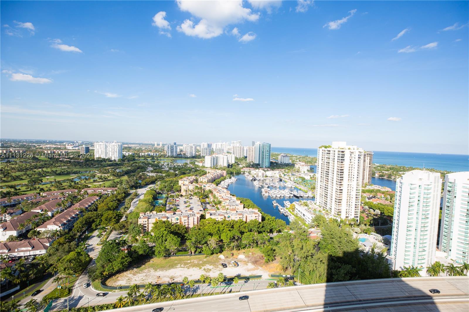 ONE OF A KIND. Completely remodeled 2 beds plus den and 2 full bathrooms.Enjoy the most beautiful and spectacular panoramic views of the ocean,Turnberry Golf course,skyline from this spacious apartment in the prestigious Mystic Pointe.Apartment features an exquisite open kitchen with new stainless steel appliances and wine-cooler. Unit features exquisite bathrooms, separate new washer and dryer in the unit. Entire home has tile throughout. Split floor with extensive wrap-around balcony with breathtaking views and shutter.Full building amenities including: Fitness center, heated pool,library,7 clay tennis courts,2 pickle ball courts,1 basketball court and dog park,mini market, beauty salon and restaurant. Mystic Pointe is a desirable and all-inclusive 24 hours gated community.