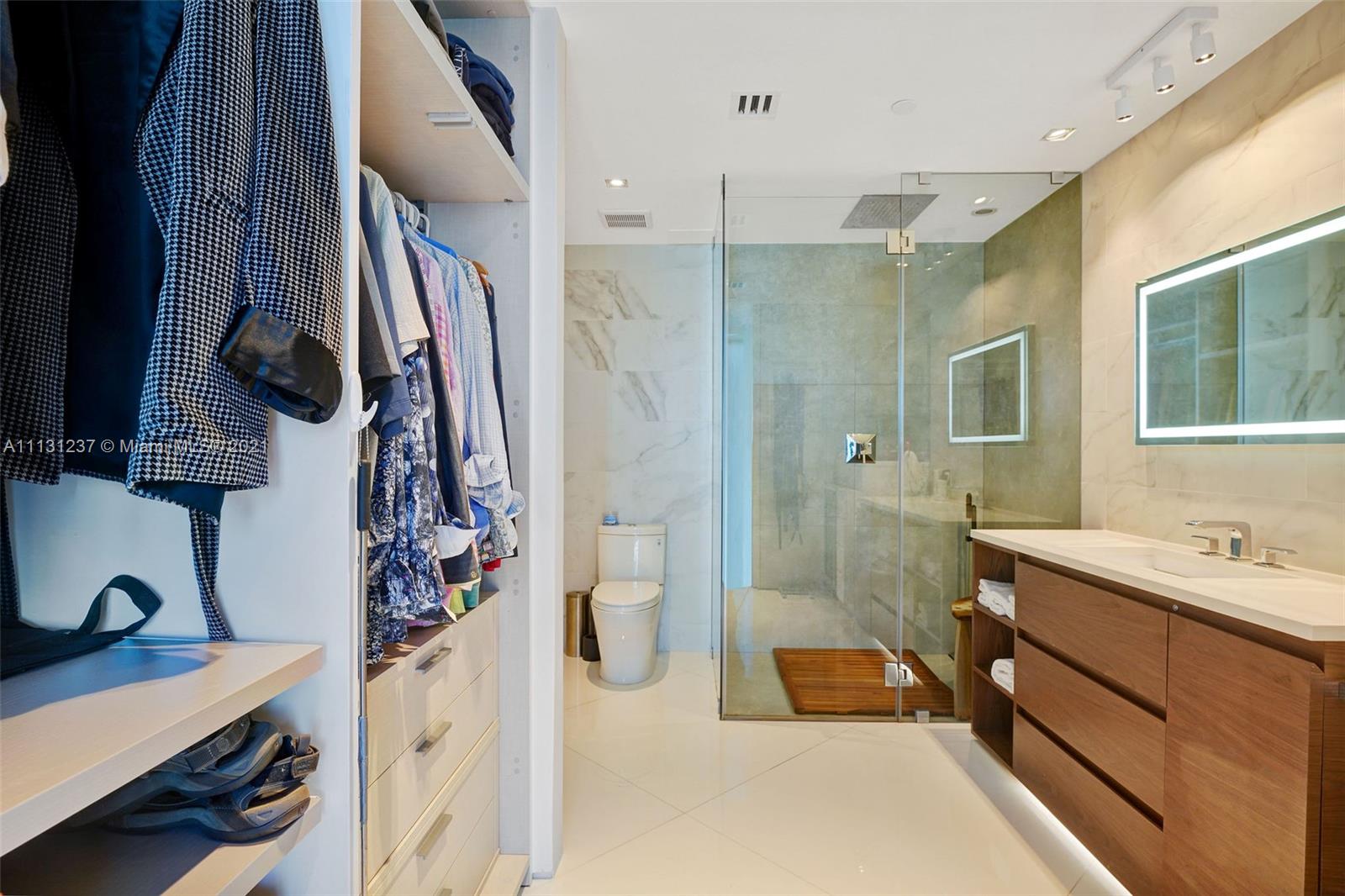 Completely remodeled 2-floor residence that feels like a glass home in the sky, boasting 5,450 SqFt to easily accommodate any special event or entertaining occasion. Mega sized flow-through living room and open kitchen with a bridge encased in glass leading to an 800+ SqFt panoramic Great Room with endless purposes such as an office, 2nd living room, gym etc. Endless direct views of the Atlantic Ocean, Biscayne Bay, Miami Skyline, and South Beach both day and night with incredible sunrises and sunsets. The lower floor of this townhouse offers all 3 bedrooms, providing excellent privacy and separation of space. The master bedroom overlooking the ocean offers his and hers bathrooms and closets, spa-like bathroom including a double rain shower and separate large jacuzzi tub with an ocean view