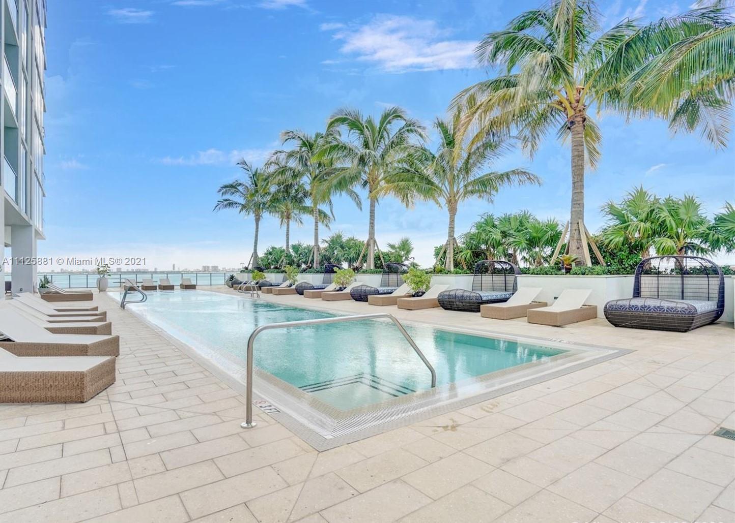Fabulous unit with outstanding amenities in this wonderful condominium, including a gym, spa, and magnificent pool. Find a cinema within the building, as well as a child play area and community room. This 2 beds/2 baths on a high floor in this recently built condo in Edgewater. Unobstructed views of the bay and the ocean. High-end finishes including floor to ceiling windows, a brand new kitchen with top-of-the-line appliances, a private elevator, and much more! Unfurnished