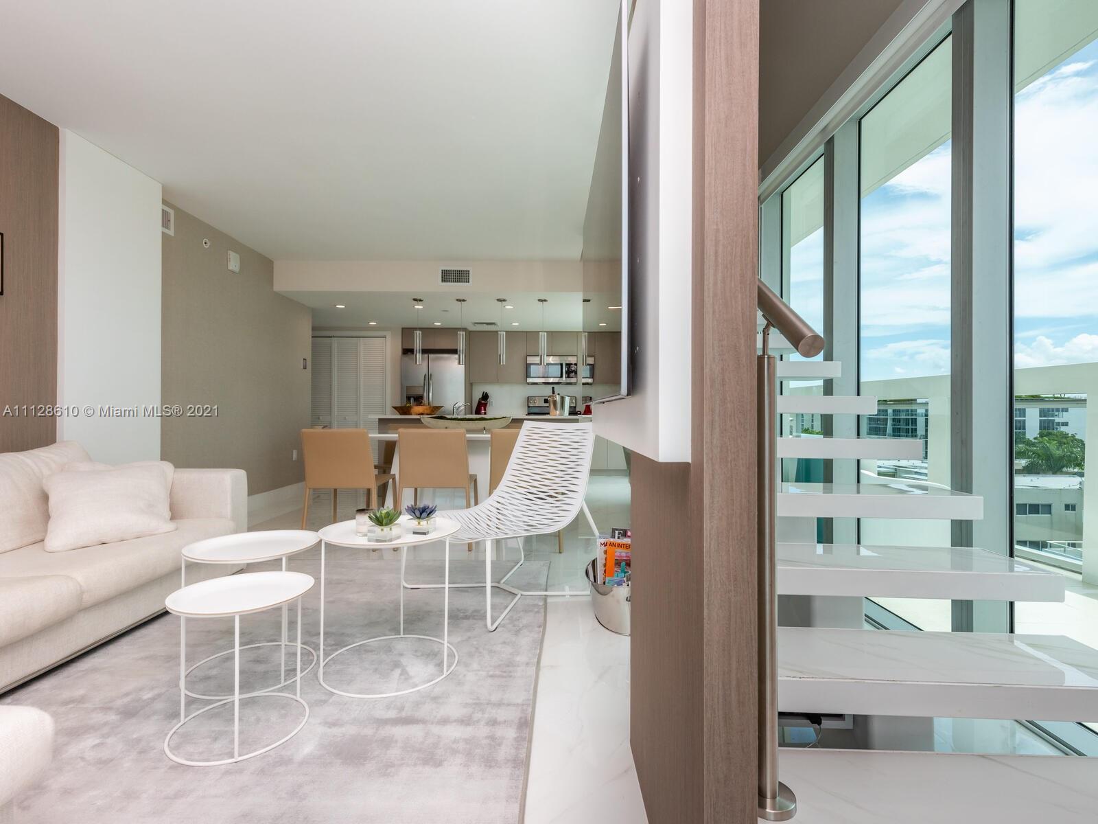 Enjoy the sunsets from the unit's PRIVATE ROOFTOP JACUZZI. Penthouse 3/3 unit in the distinctive One by Tross in the heart of Bay Harbor Islands. 7-floor building with 17 luxury residences with a rooftop pool. Area known worldwide for family atmosphere, exclusive boutique shops & restaurants, beaches, yachting, boating, plus excellent public school. Home to a K-8 school (an "A" school for 16 consecutive years!).