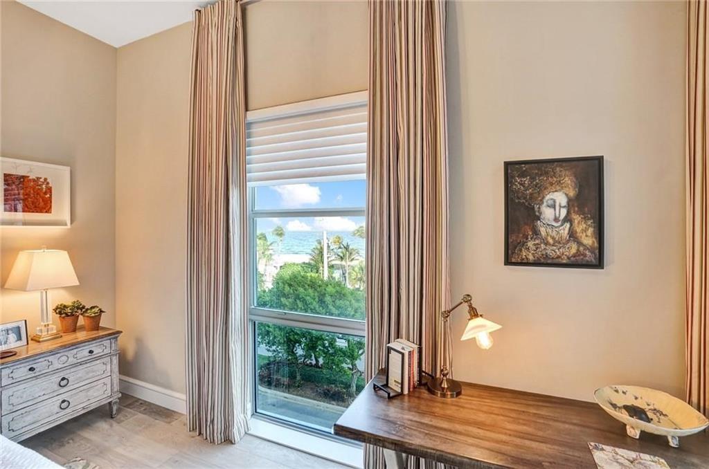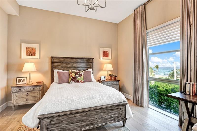 Spectacular penthouse in charming boutique building.Only minutes to the ocean.Fabulous community of Lauderdale By The Sea.Exclusive & Private.Rarely lived in, impeccably maintained home owned by snow birds. Spacious 2 Bedrooms w/Den Two full baths.Gorgeous neutral decor with rich warm tones that are truly welcoming.Exceptional designer finishes thru-out, including hi end light fixtures,shelving,and closet cabinetry. Upgraded spacious kitchen.Bosch appliances,glass enclosed cabinetry for showcasing art.Huge center island,great for entertaining !11' Ceilings that enhance the look and feel of this beautiful home.24 x 24 Polished porcelain floors thru-out living areas w/wood flooring in bedrooms.Motorized silhouette blinds.Two Deeded Parking Spaces.Storage Locker. Tranquil ocean views.24Hr Sec