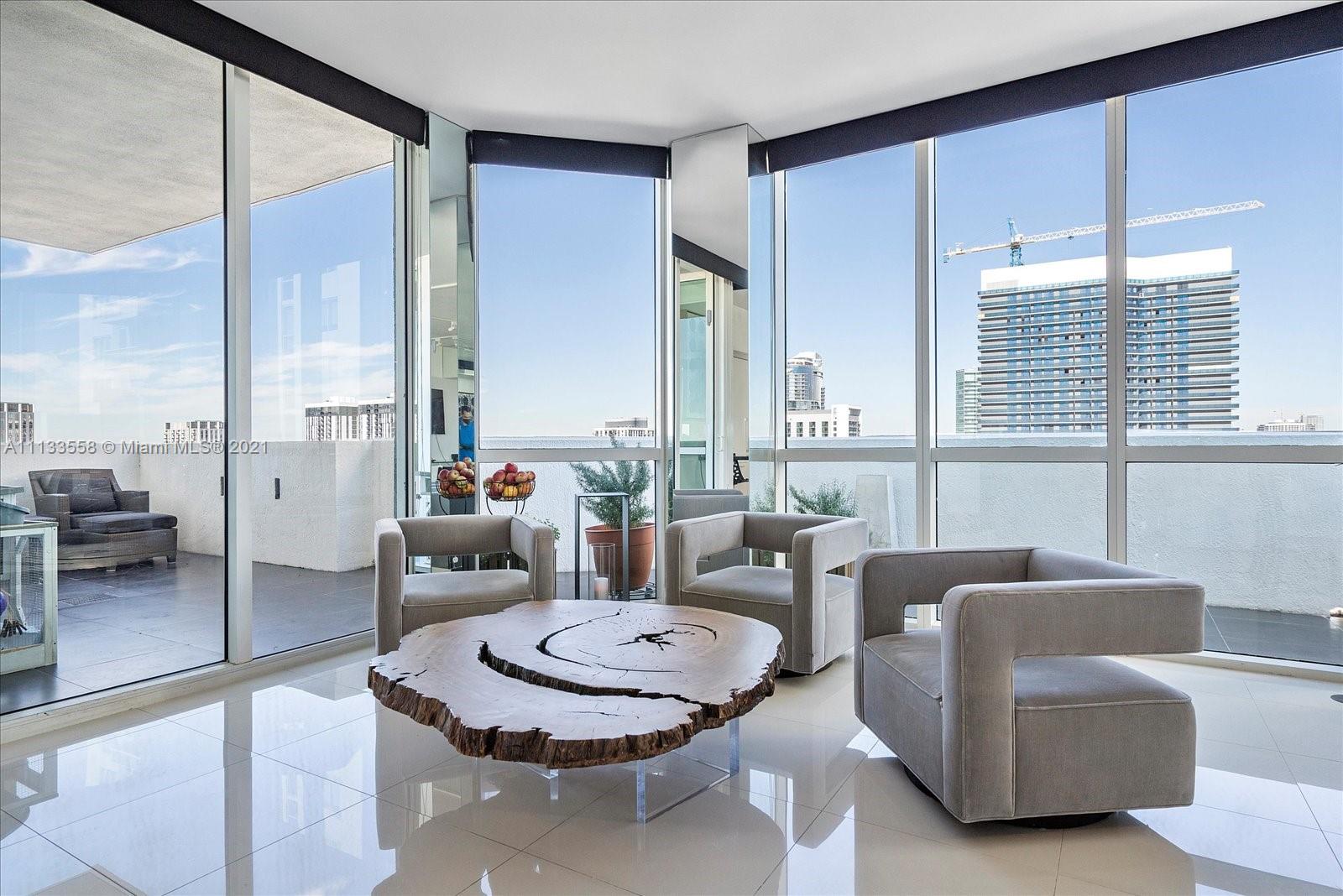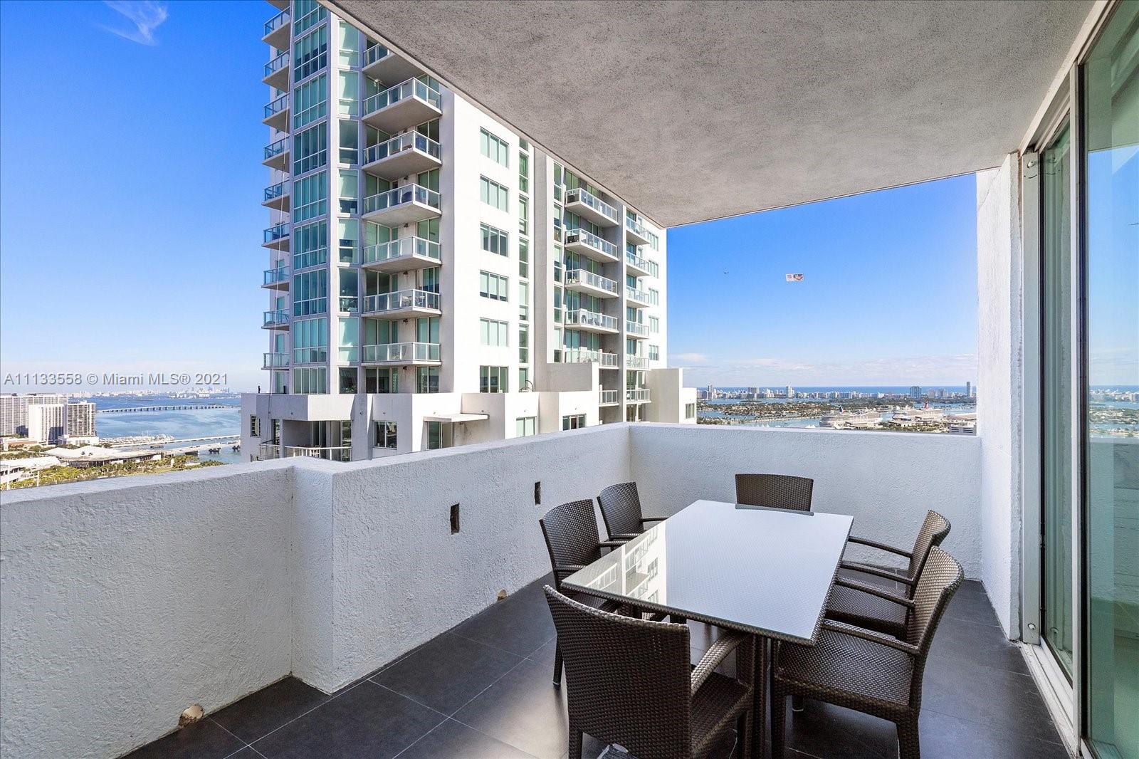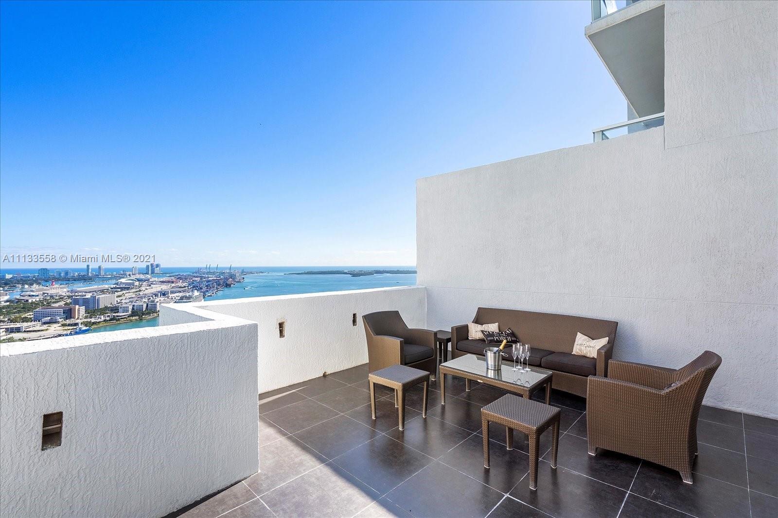 Attention buyers, rare opportunity! Lower penthouse corner unit 3 br/3 ba 1795 sqft with over 1500 sqft outdoor living space. Imagine drinking your morning coffee on this sprawling, wrap-around balcony with stunning Ocean views. The unit is located on the 40th floor with 180-degree views of sunrises east over Biscayne Bay and sunsets west over downtown Miami. Split floor plan with large private balcony in master bedroom suite. Kitchen with granite countertops, Miele appliance, additional under-counter Double Drawer Refrigerator, eat in kitchen, kitchen bar and mirrored doors. Best luxury condo downtown with over 3000 square-foot indoor/outdoor living space. Great building with 24 hr. Concierge, clubhouse, spa, gym, 4 pools, Jacuzzi, movie theater, billiard, ping pong an on-site bar.