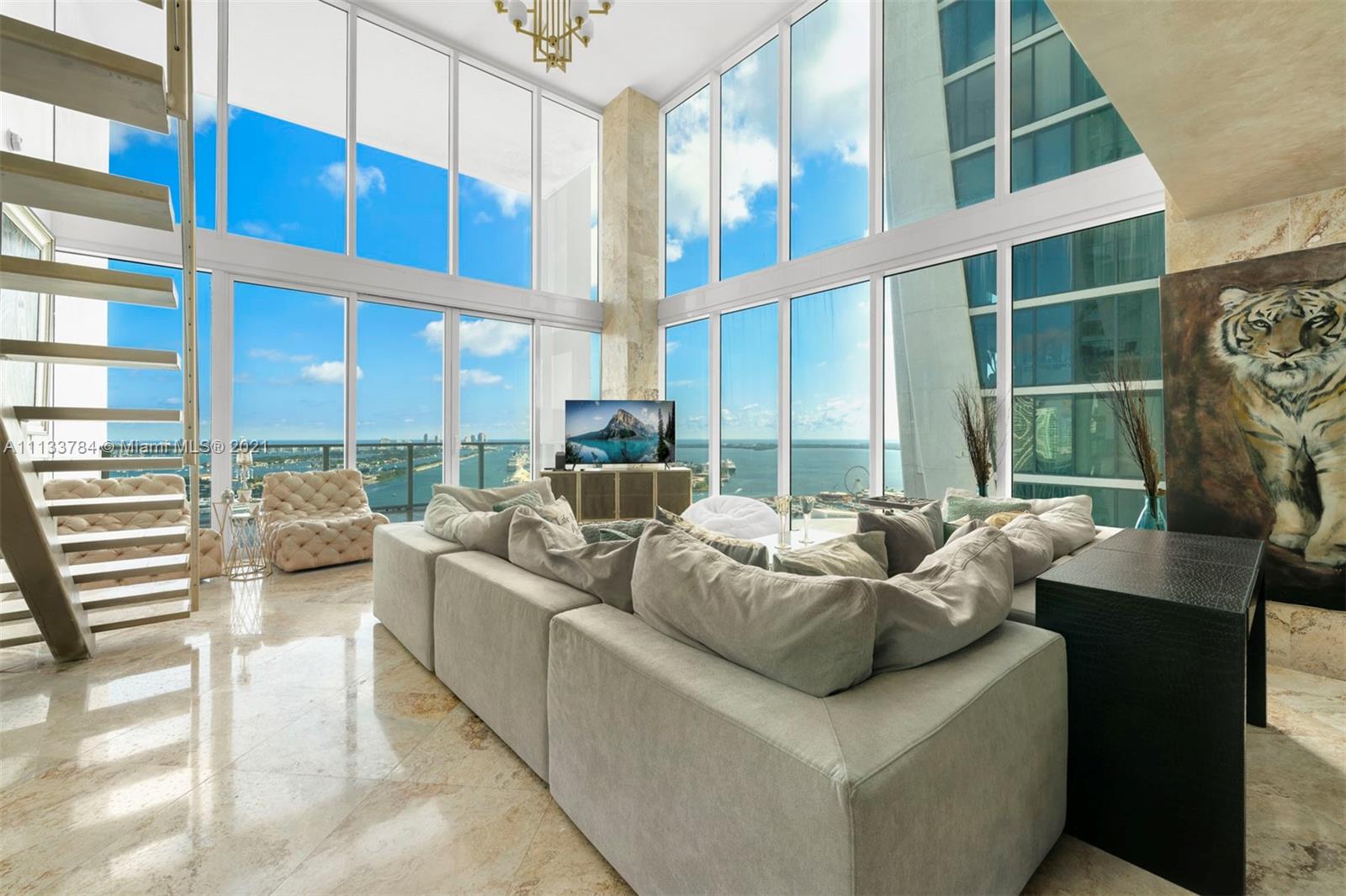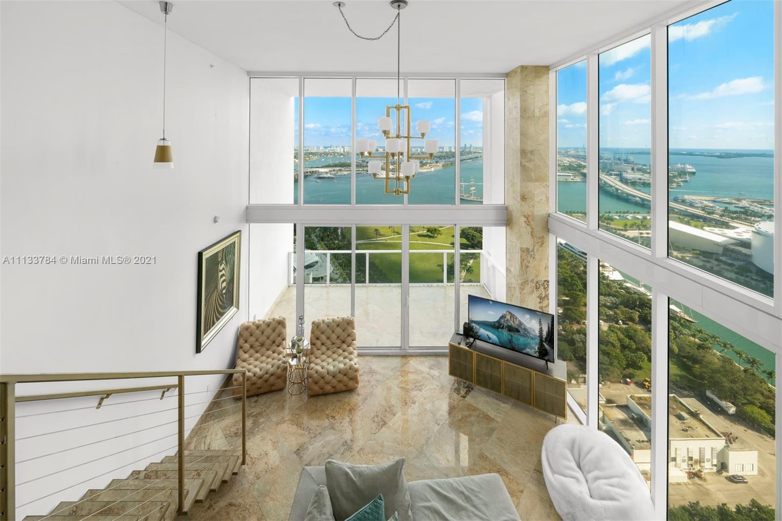 Live at the prestigious and luxurious Ten Museum Park. A boutique building in heart of Downtown Miami. This one-of-a-kind, 2 story, corner unit in the coveted 01 line sits on a high floor maximizing breathtaking views of Biscayne Bay through double height ceilings with floor-to-ceiling walls of glass facing east and south. The unit boasts 2 bedrooms, 2 full bathrooms and 1 half bath spanning 1,735 square feet. Features include an oversized balcony, open floor plan with a loft style owner’s suite and a spa-like glass shower. The gourmet kitchen offers top-of-the-line SubZero and Miele appliances. Enjoy 5 star amenities with a state-of-the-art fitness center, world class spa amenities, five outdoor swimming pools and a 24 hour concierge.