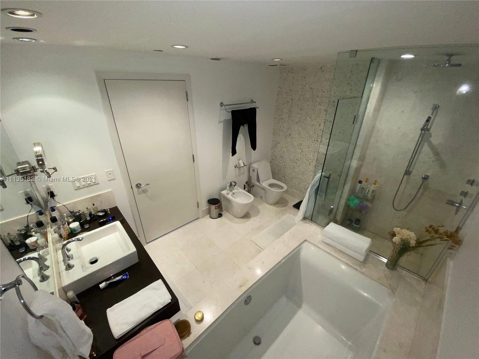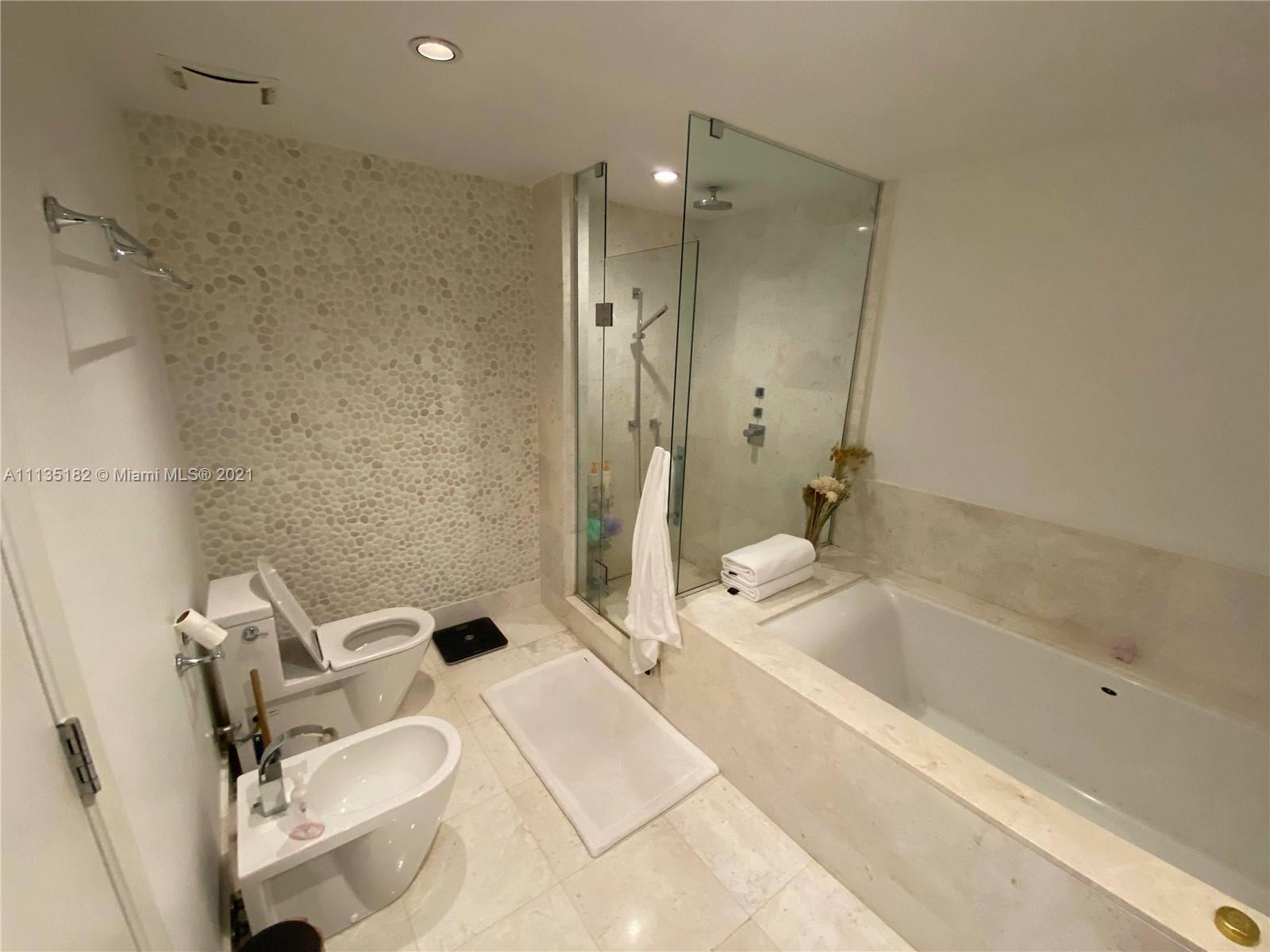 Enjoy breathtaking ocean views from Jade Ocean's staple luxury residence. Beautiful modern unit with 1 bed/1.5 bath and 858 sq. ft. of living space. Unit includes stunning flooring, walk-in closets w/ custom built-ins, electric shades, and top-of-the-line appliances across the board including washer & dryer. Bathroom features both bath-tub & shower. Building offers state-of-the-art amenities such as full pool & beach service, spa, children's play room, movie room, gym & more. Please call listing agent for any questions or inquiries. All information on MLS is to be accurate however Buyer's Agent is responsible for final verification.