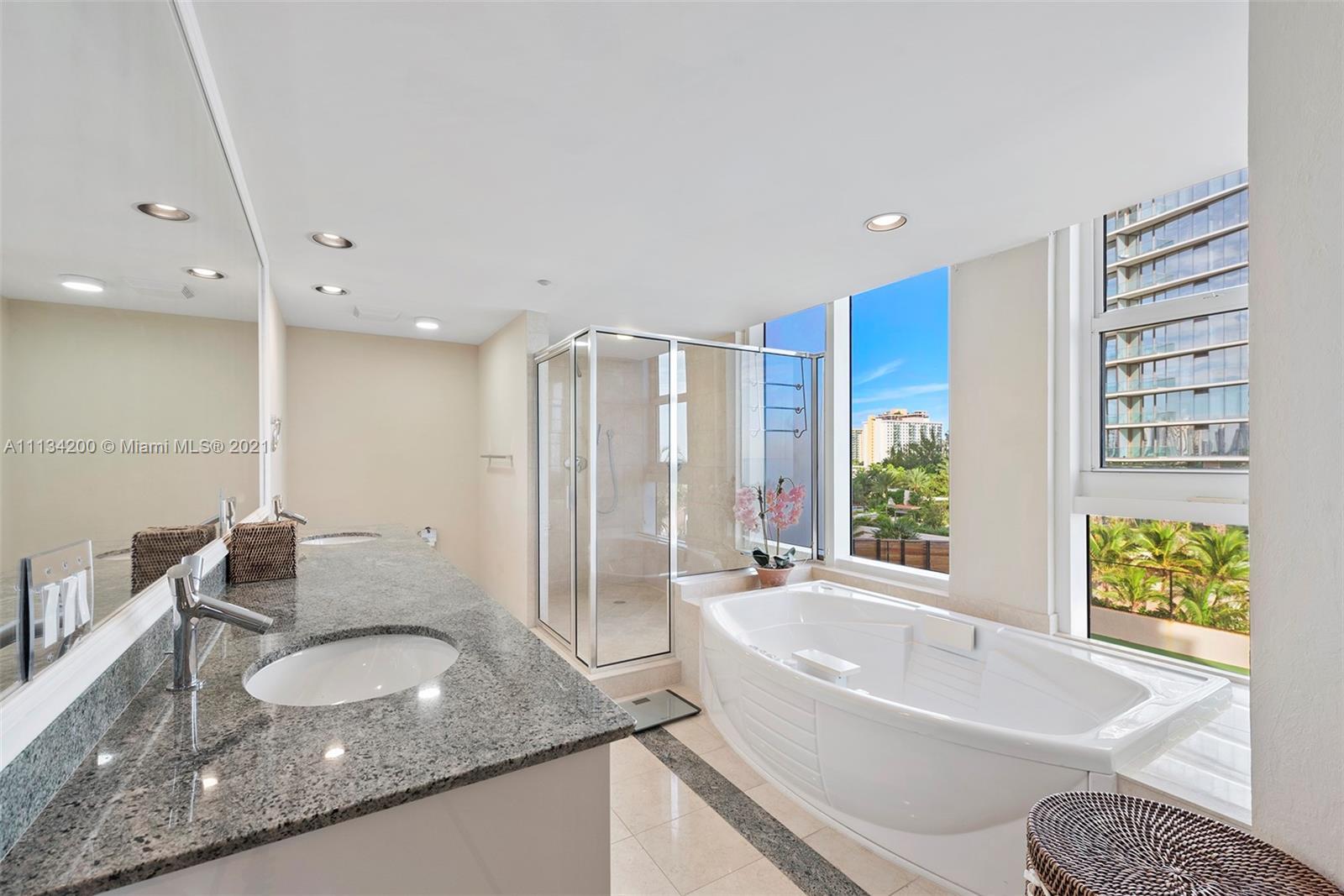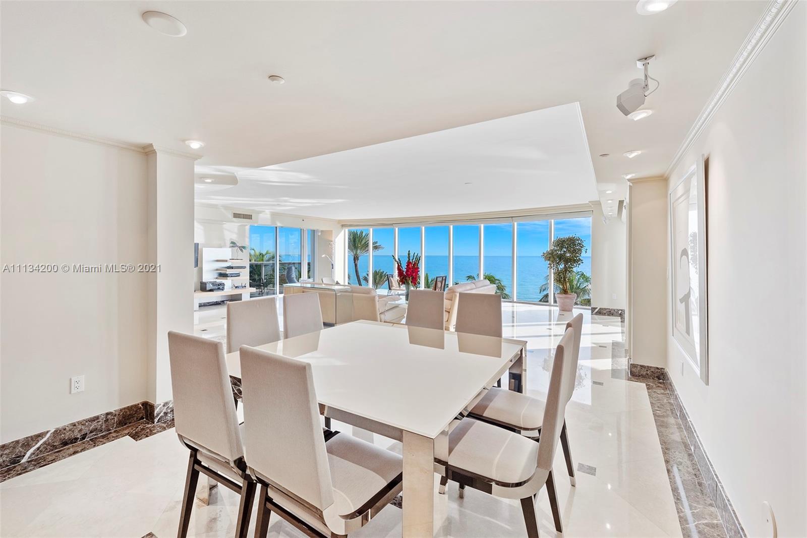 Soak in spectacular ocean views from the most coveted line in the building. With private elevator entry, this residence is the ultimate beachfront retreat with the most expansive floorplan available. Offering 4 beds, 4.5 baths with two balconies to the North and South, bright interiors include custom marble flooring and floor to ceiling windows. European kitchen overlooks the water with top-of-the-line appliances, wine fridge, granite countertops and breakfast bar. Master bedroom features spacious marble master bath with stunning views and walk-in closet. Full-service luxury building amenities with resort-style and rooftop hot tub, top-tier gym, restaurant, beach service, tennis courts, security and more. Unit includes 3 parking spaces (A-73, A-74, A-75) and storage space (4CE).