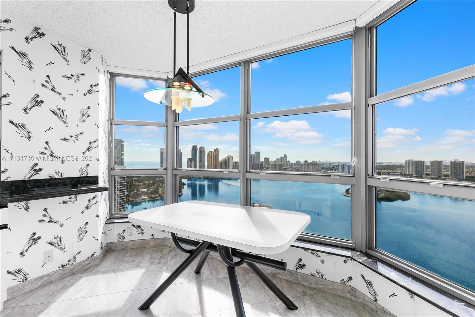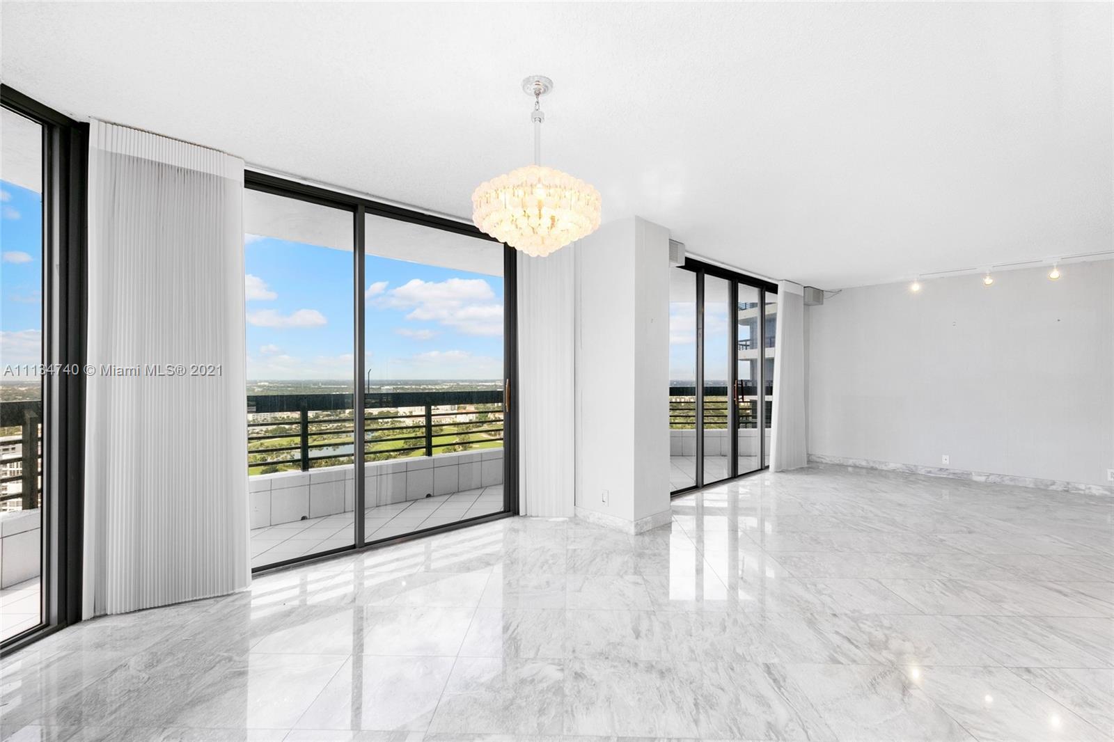 Spectacular 35th floor 3-bed/3-bath residence with stunning 180 degree water views of Dumfoundling Bay & Mystic Pointe marina, with gorgeous views of Turnberry Golf Course. Huge wraparound terrace. Tile and carpet floors throughout. The gated Mystic Pointe community features luxury amenities such as: an Italian Pizzeria, clay tennis courts, pickle & basketball court, beauty salon, mini market, massage therapy services, dry cleaning, dog park, and marina. The 400 building has its own pool, sauna, library/card room, club house, party room, fitness center and valet. Walking distance to Aventura Mall, Sunny Isles beach, restaurants and the Turnberry fitness trail.