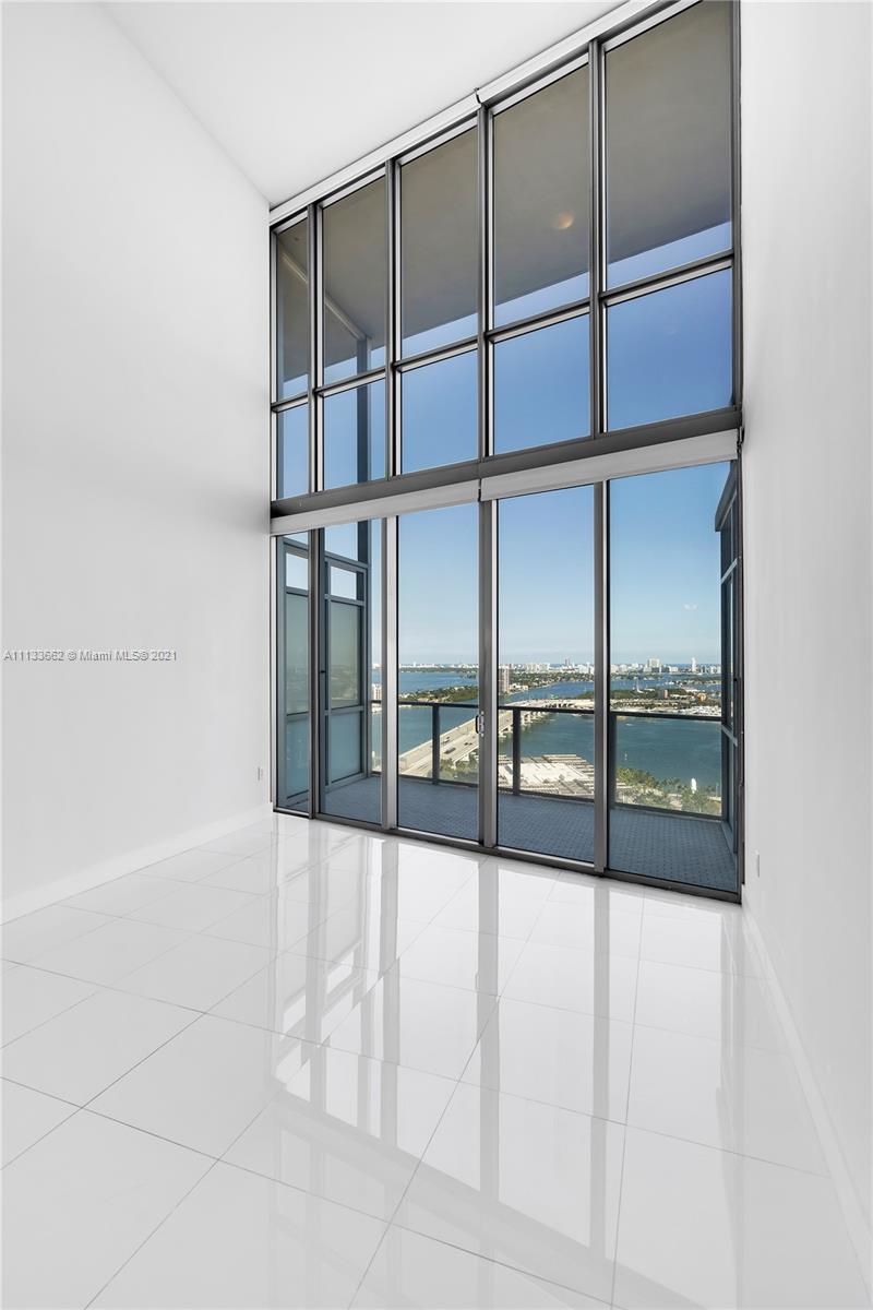 Gorgeous 1BD/2BA + Den two story condo residence at The Marquis. This unit features double height ceilings with gorgeous views of Biscayne Bay and Miami Beach. Open kitchen, perfect for entertaining with Viking appliances and zebra wood kitchen cabinetry. Italian porcelain flooring throughout. Spacious master suite overlooks living room and Bay, with walk-in closet and custom shelving. Spacious Den can be used as home office or 2nd bedroom. The Marquis is a boutique luxury building come enjoy the luxury amenities which includes : concierge, lap and resort pools, full service spa, fitness center and more.