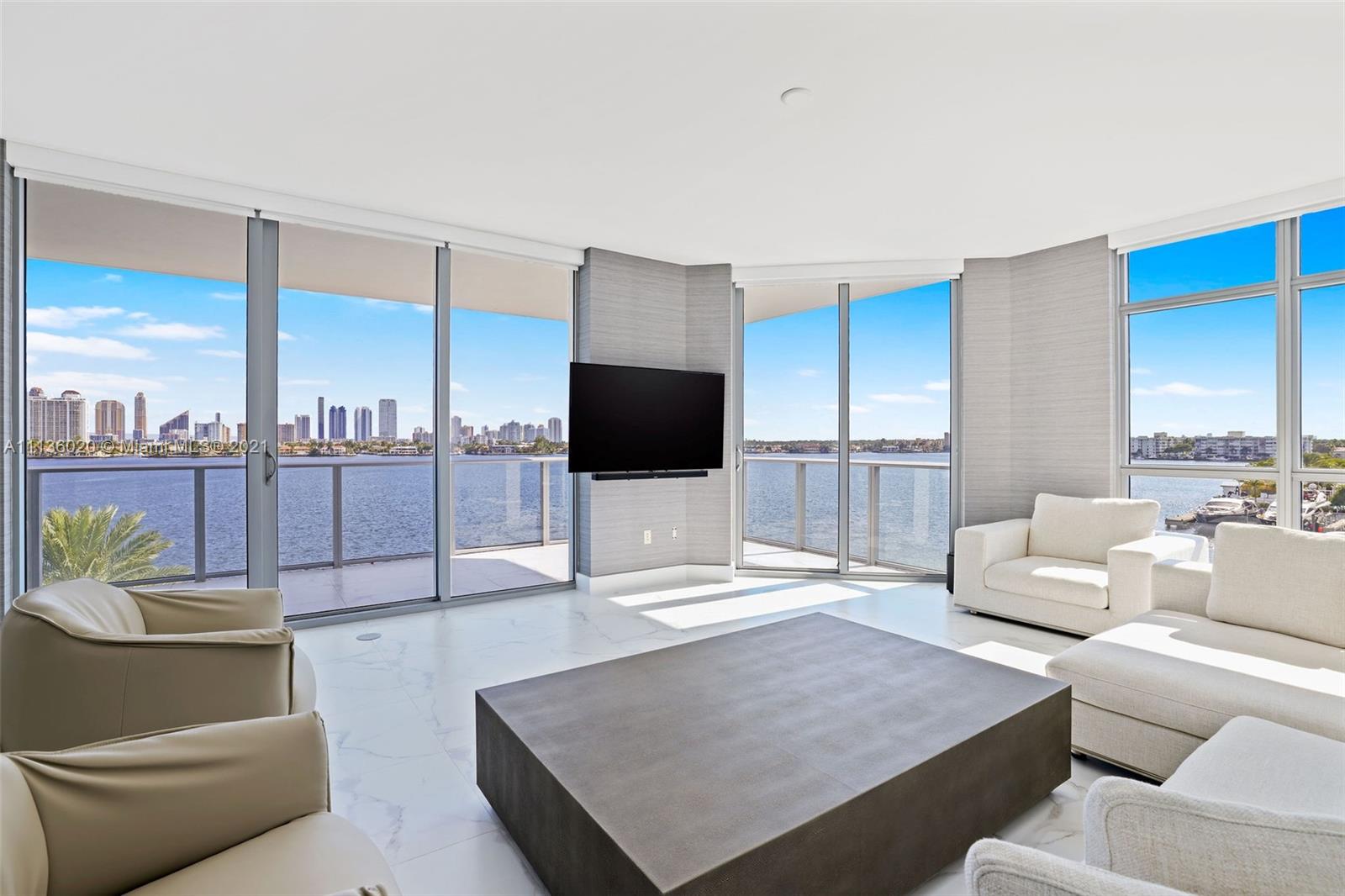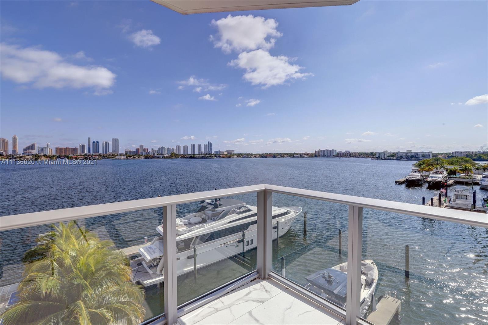 The most desired floor plan in Marina Palms is now available and ready for immediate occupancy. This bright 3 bedroom corner unit feels like new and allows for some of the best water views in town. Brand new furniture is negotiable and could be included for the buyer. Motorized window treatments throughout. Gorgeous kitchen with Snaidero cabinetry, Wolf, Miele, and Sub-zero appliances. This spacious floor plan feels like a home. Enjoy resort style living. Boat slips and marina membership available. Must see!