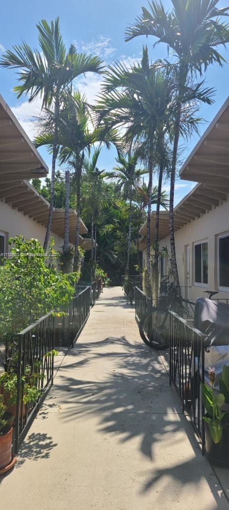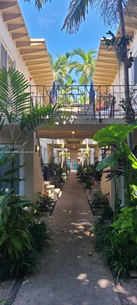 Best unit in the building! Corner 1/1 on top floor with beautiful views of the garden and leafy Meridian Avenue. Condo has large kitchen, washer and dryer, central ac, impact windows, laminate floors, and private outdoor patio. Excellently maintained building with low monthly HOA. Quiet, professional neighbors and dogs up to 40 lbs are allowed. 900 Meridian is a historic, art deco building that's an easy walk to the ocean, park, and shops.