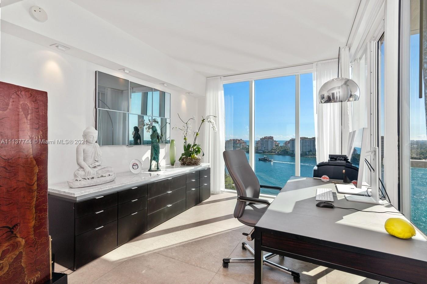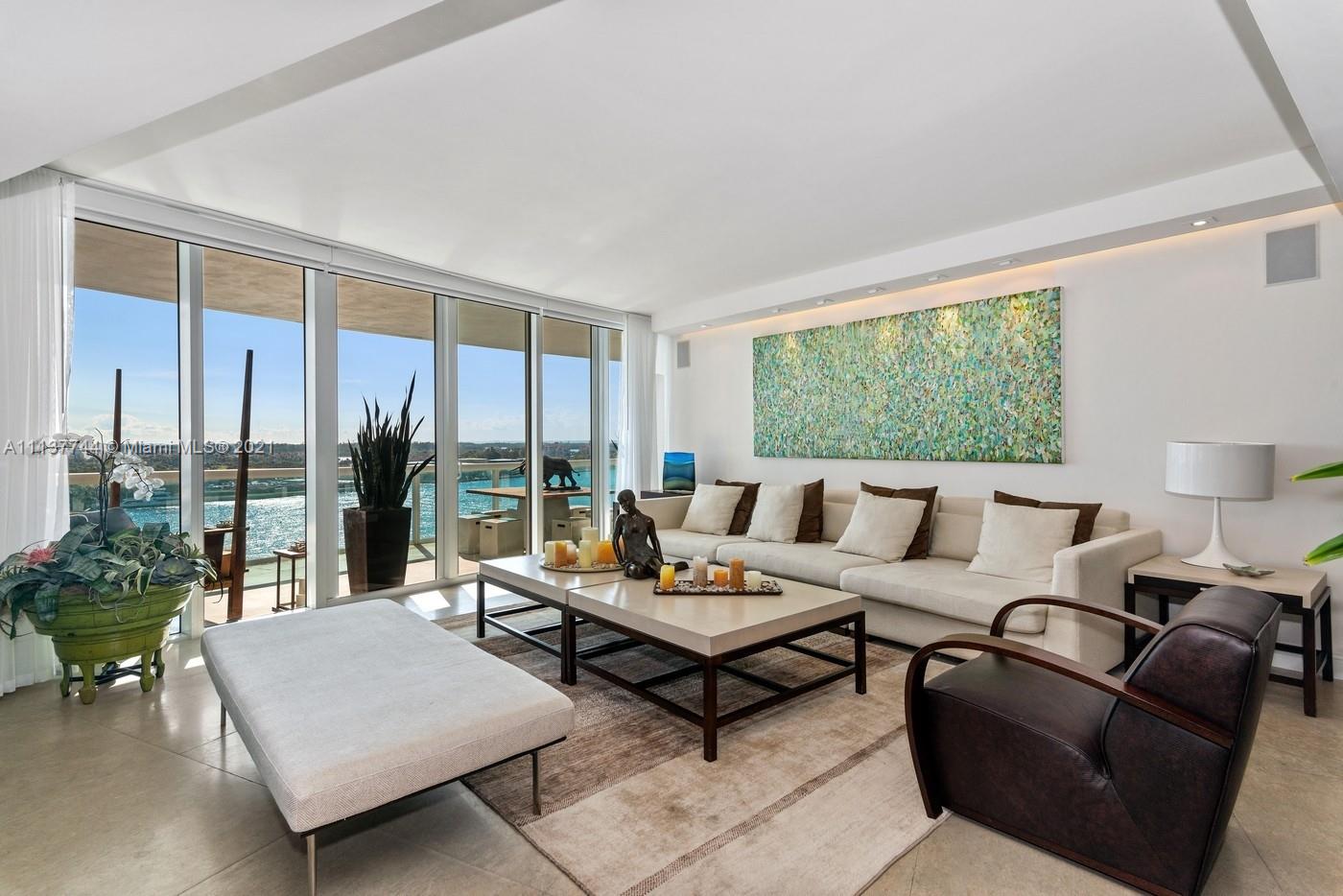 Murano At Portofino flow-through 03 Line offering unobstructed views of Government Cut, the Bay, Fisher Island, and the Downtown skyline. With private entry foyer, floor to ceiling windows, 2 balconies, third bedroom could be used as an office or bedroom. Amenities include tennis courts, BBQ area, fitness and spa, 2 pools including the Piaggia Beach Club with restaurant. Located South of Fifth, Miami Beach most prestegious residential address, walking distance to many restaurants including Carbone, Smith & Wollensky, Prime 112, Prime Italian, Red Steakhouse and many more.