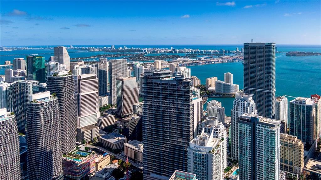 Breathtaking panoramic views of the Miami Skyline and Biscayne Bay from the 44th floor of Brickell Flatiron! Fabulous corner unit with a wraparound porch, 3 Bedrooms, 3.5 Baths that offers over 1900 SF of living area. Snaidero kitchen with Miele appliances. Amenities are first-class including a rooftop pool located on the 64th floor, spa and fitness center with private steam, sauna, & locker facilities; 18th-floor lap pool; children's playroom and pool; full-time doorman and concierge service; private movie theater; wine room and cellar: and social lounge. Walking distance to Mary Brickell Village and Brickell City Centre.