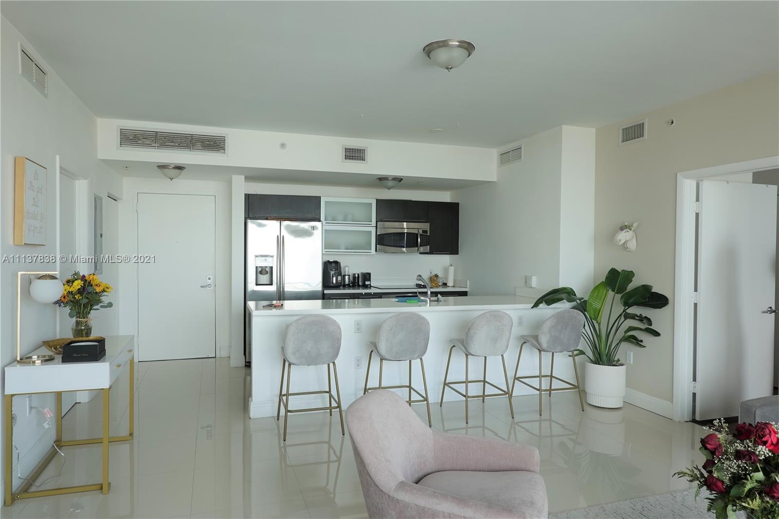 Amazing 23rd floor unit at the IVY at Riverfront, with stunning panoramic view of downtown, this apartment has white ceramic flooring throughout with a split floor plan. The kitchen featured stainless steel appliances and a granite countertop, spacious balcony. This sought out after condominium has an estate of the art fitness center and spa, sauna, health ,2 infinity edge pools, a meditation garden, playground for children, arcade and billiards, a business center, large outdoor dog park, BBQ area, event room and much more. Walking distance to Brickell City center, restaurants, shops and Miami river. Across from Metro Mover. INCLUDES 2 ASSIGNED PARKING + 1 extra carport behind the 1st assigned parking. Showings will start on December 28th by appointment only.