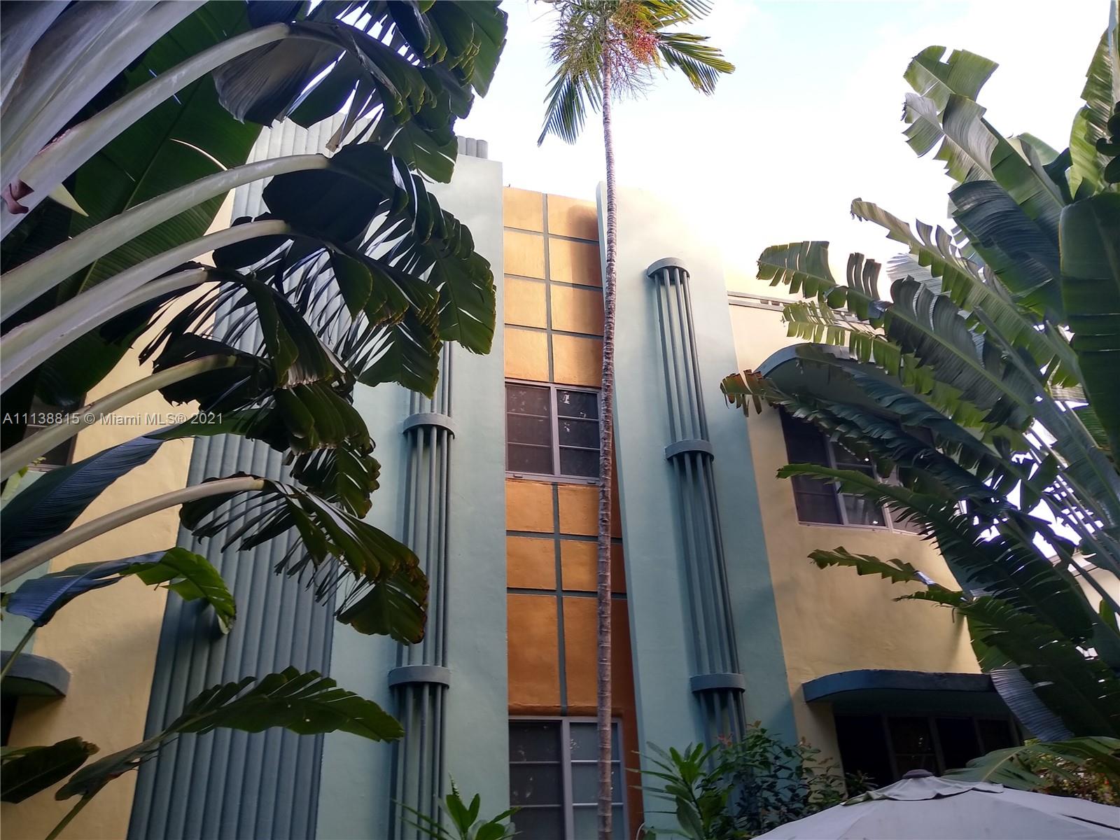 Unique and charming Art Deco timepiece designed by principal architect Lawrence Murray Dixon. Second Floor 1bed /1 bath renovated & well kept as a vacation home. Quiet community with lovely landscaping & well kept building condition by caring owner occupants. Hurricane impact windows, Central AC, tile & marble bathroom, Dade county pine wood floors. Meridian Ave tree lined street across from Flamingo Park and its amenities. Easy parking in the street. Building was researched & painted to reflect its iconic history. Well managed locally and Hoa with reserves. Bike& BBQ area with on site laundry. Dixon work includes The Tides Hotel, The Victor Hotel, The Tiffany, The Marlin, Tudor Hotel, The Senator, The Raleigh Hotel, the Ritz Plaza Hotel, Regent Hotel and The Betsy Ross