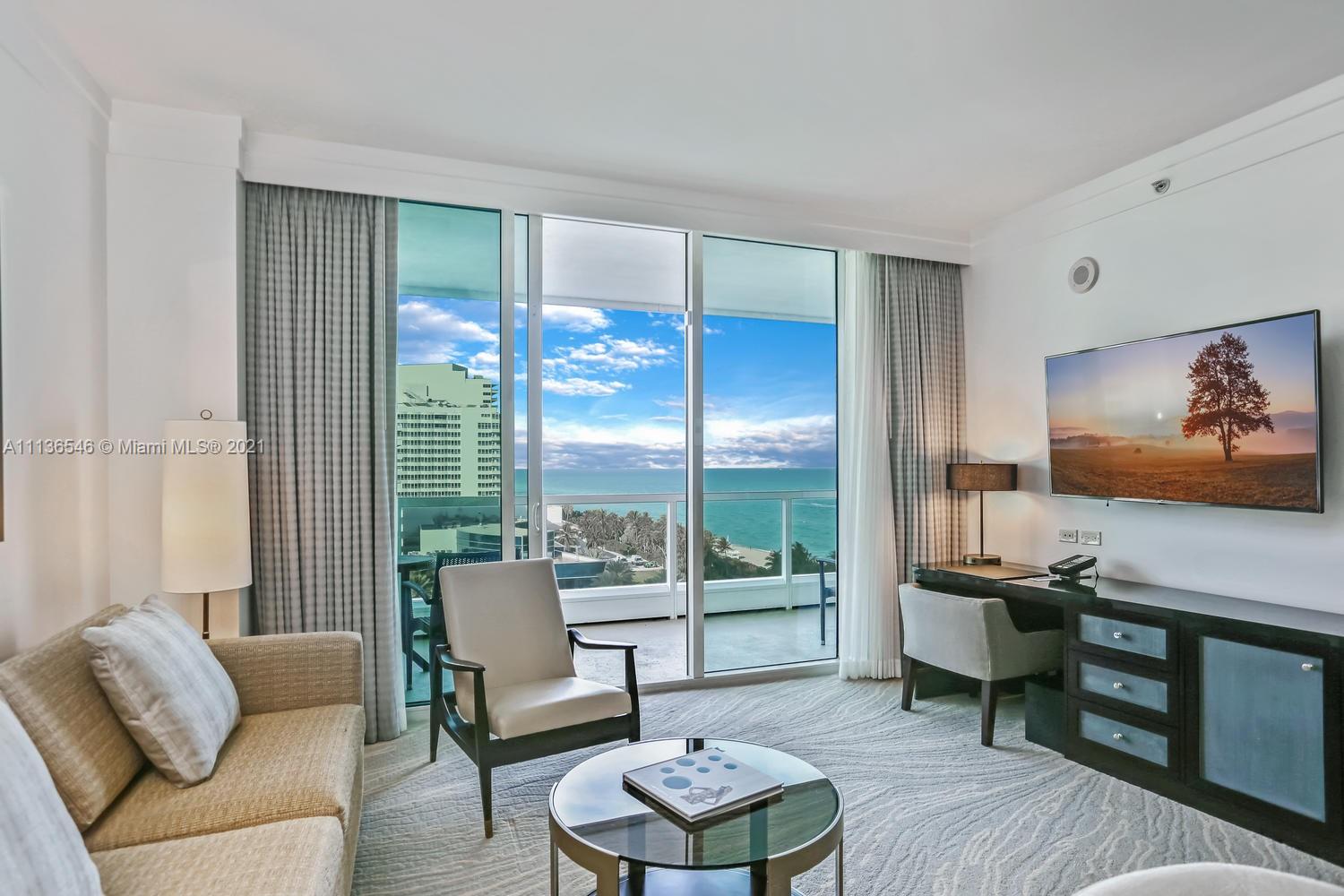 Be part of all the action in the beautiful just refurbished 1 bedroom/ 1.5 bath with ocean & hotel pool views at The Fontainebleau III. Enjoy full service, vacation-style living in a furnished turnkey unit with king bed, full kitchen, washer/dryer, extended balcony, sleeper sofa & more. Enroll in hotel rental program & receive income while away! The Fontainebleau Resort offers luxury amenities on 22 oceanfront acres including award-winning restaurants, LIV night club, Lapis spa & state-of-the-art fitness center. Maintenance includes: AC, local calls, electricity, valet + daily free breakfast in the owners lounge.