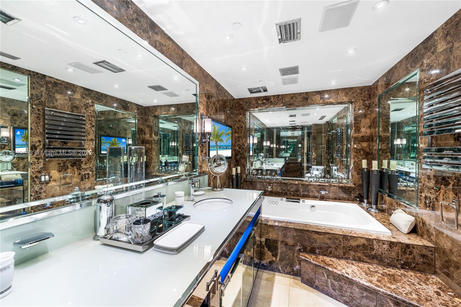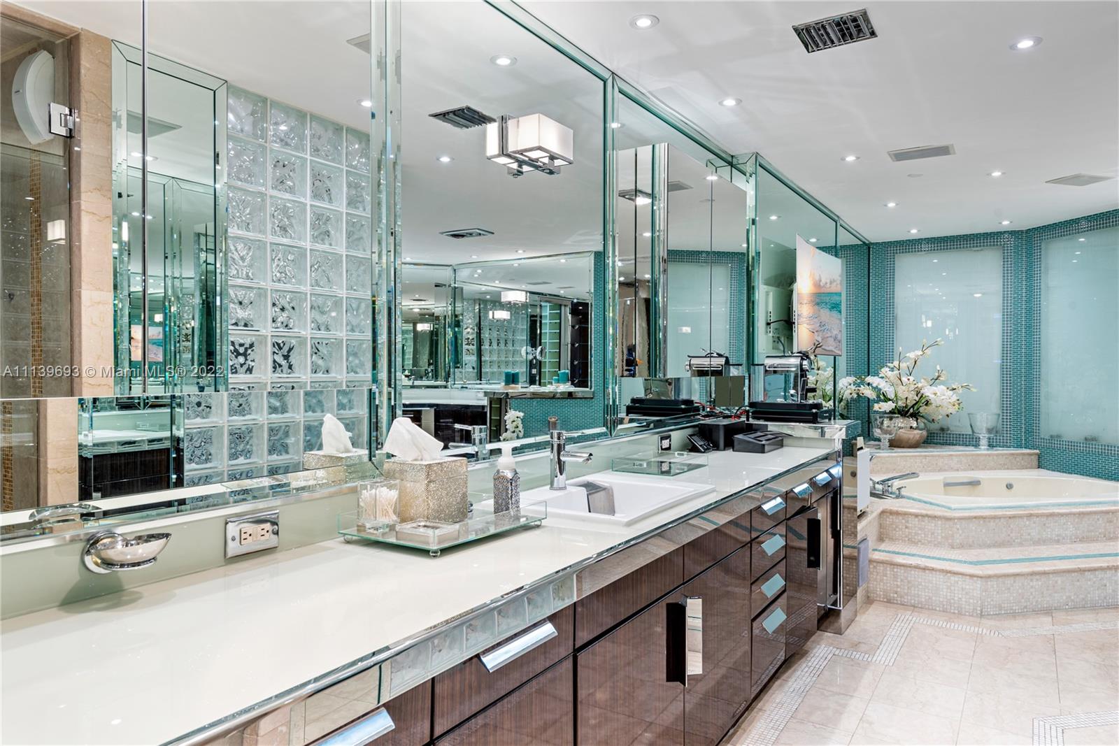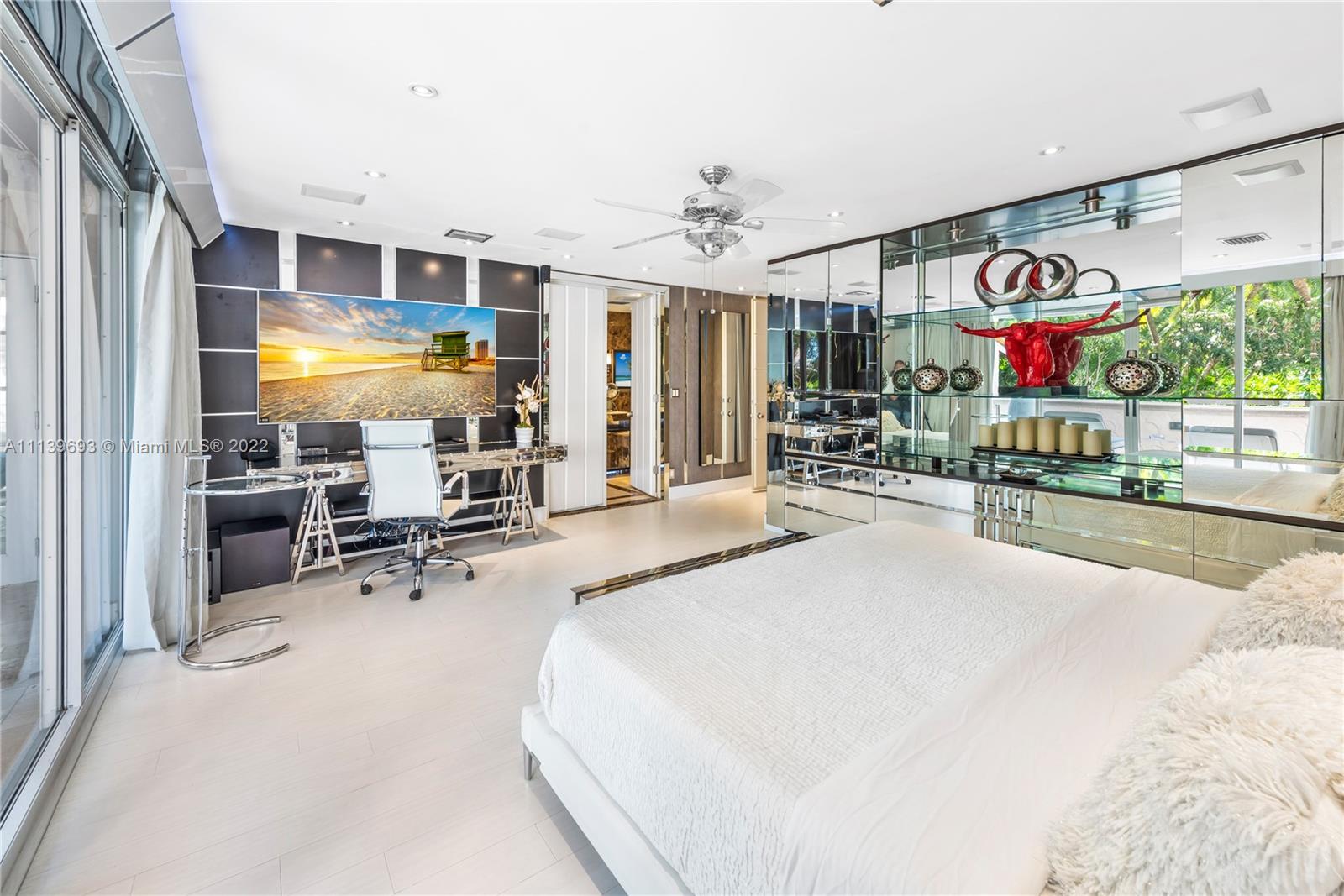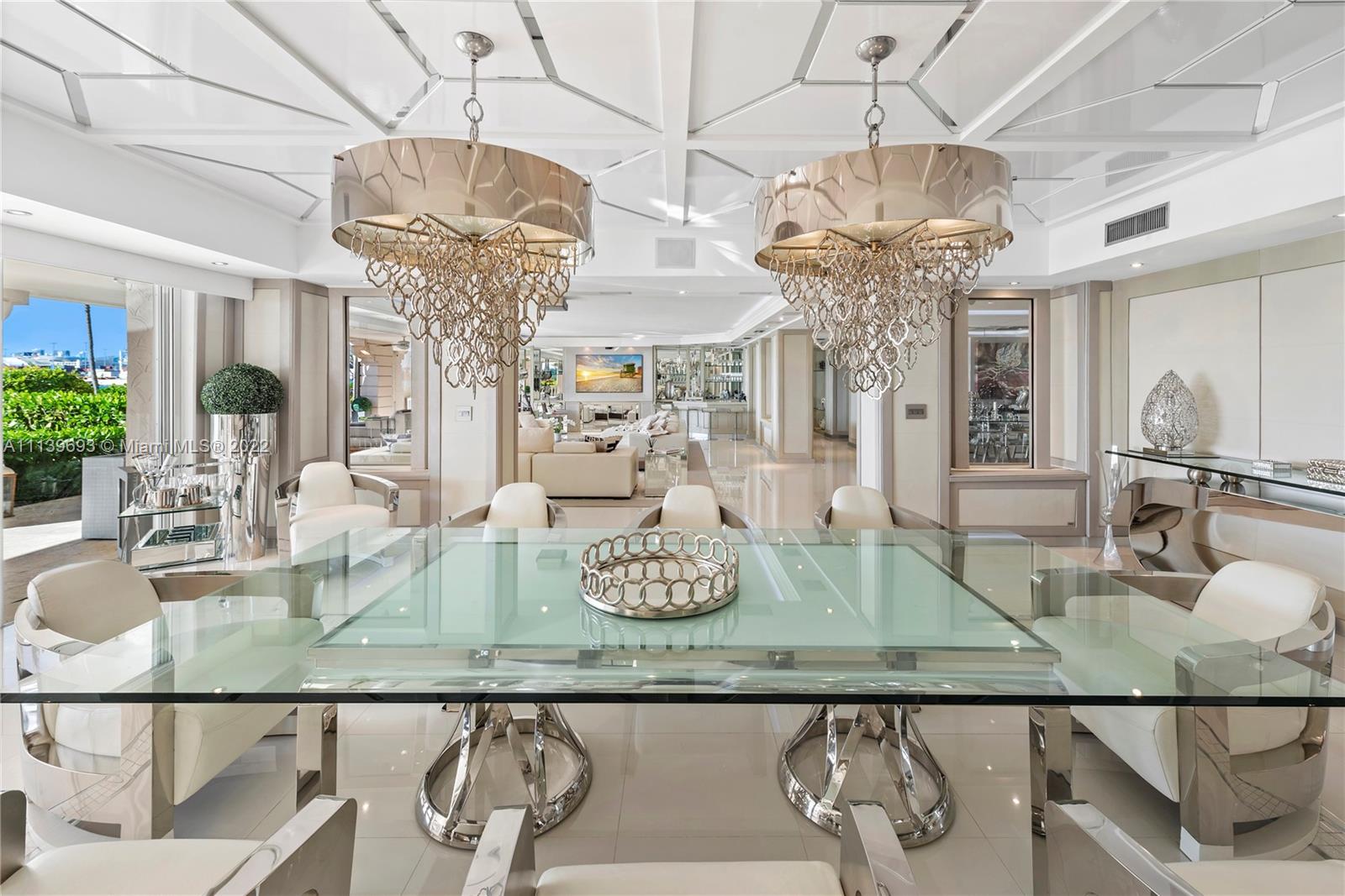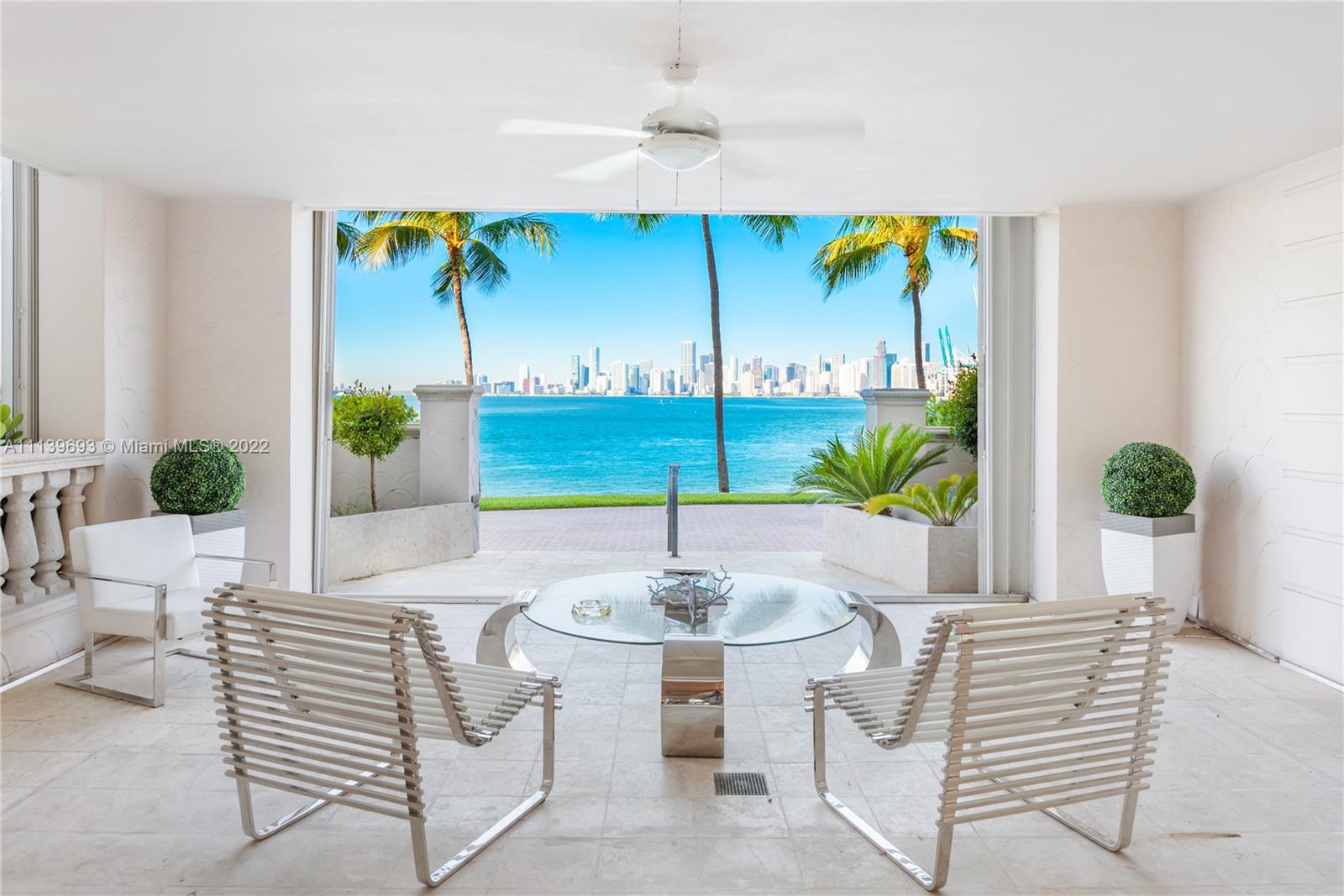 Experience Fisher Island living at it's finest in this stunning renovated ground floor Bayview unit. This one of a kind masterpiece encompasses 6,209 sq ft interior and 2,516 sq ft of expansive terraces overlooking the Miami downtown skyline and Biscayne Bay with breathtaking sunset views! This 5 bedroom, 5 bath + 2 powder room residence has been professionally designed with FENDI wallpaper and door panels throughout. The unit showcases: spacious open living room with a bar and formal dining, exquisite white porcelain & oak floors, a Chef's kitchen with top of the line appliances, an eat-in center island, a built-in surround sound system and many more features. Visit this exceptional fully furnished unit! Easy to show!