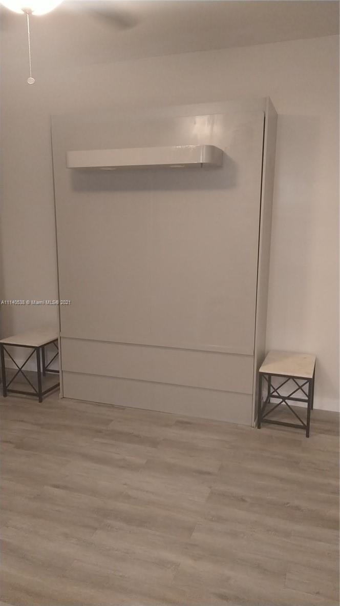 Newly fully furnished studio. Bright kitchen features white quartz counters and breakfast bar for two. New stylish bath with walk-in shower for easy access, brand new central A/C, new flooring and LED lights throughout. 2 double closets offer plenty of storage. Retractable murphy bed allows plenty of space for entertaining. Laundry facility on premises. Walk to the beach, shopping, dinning, golf course, and close vicinity to Gulfstream Park Racing & Casino. Maintenance includes electricity, water, basic cable, and use of heated pool. Building has a scenic view of the intracoastal marina and Hallandale Beach skyline. Pets allowed. Unit rented till June 14, 2023, monthly installments of $ 1850