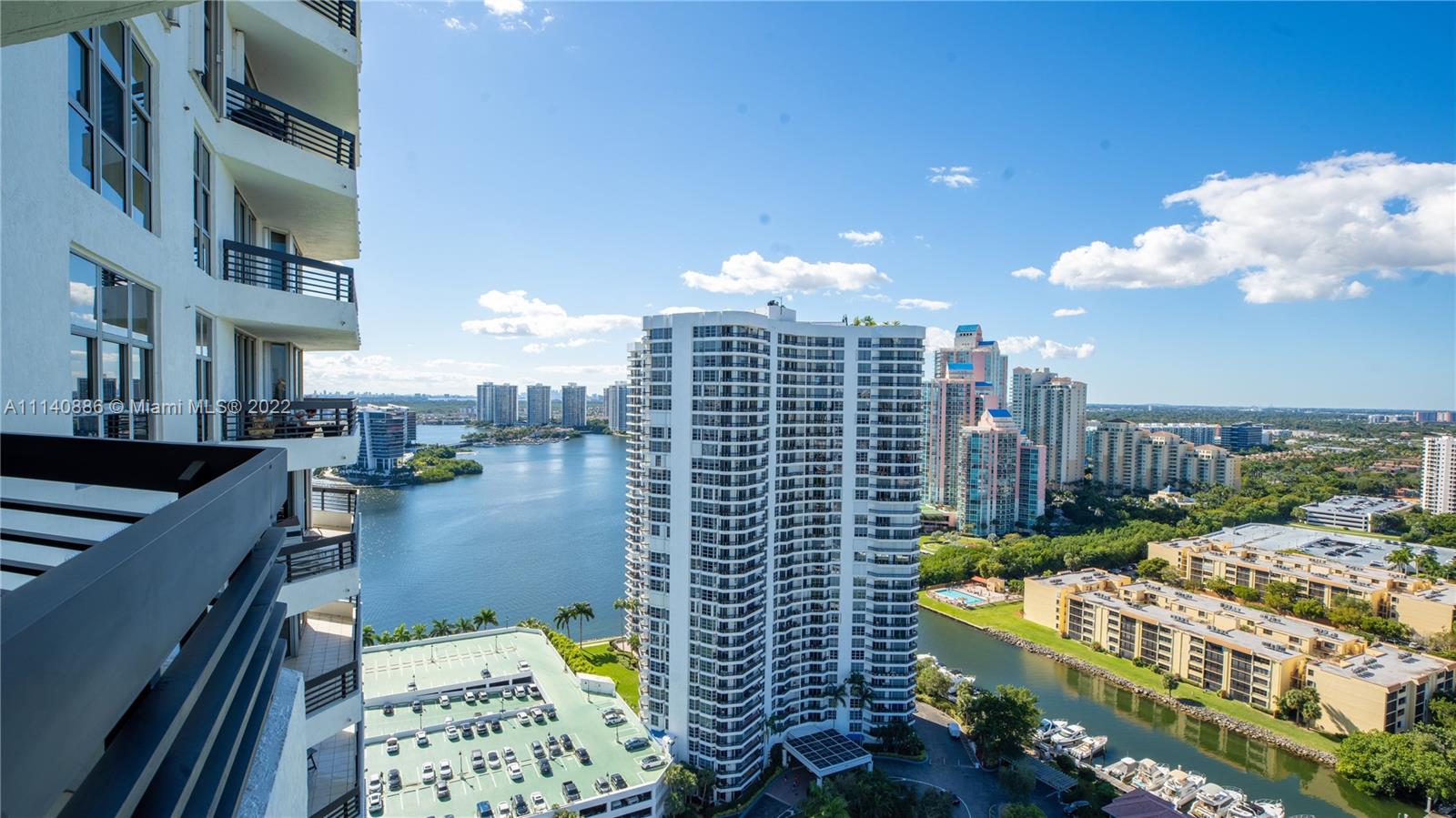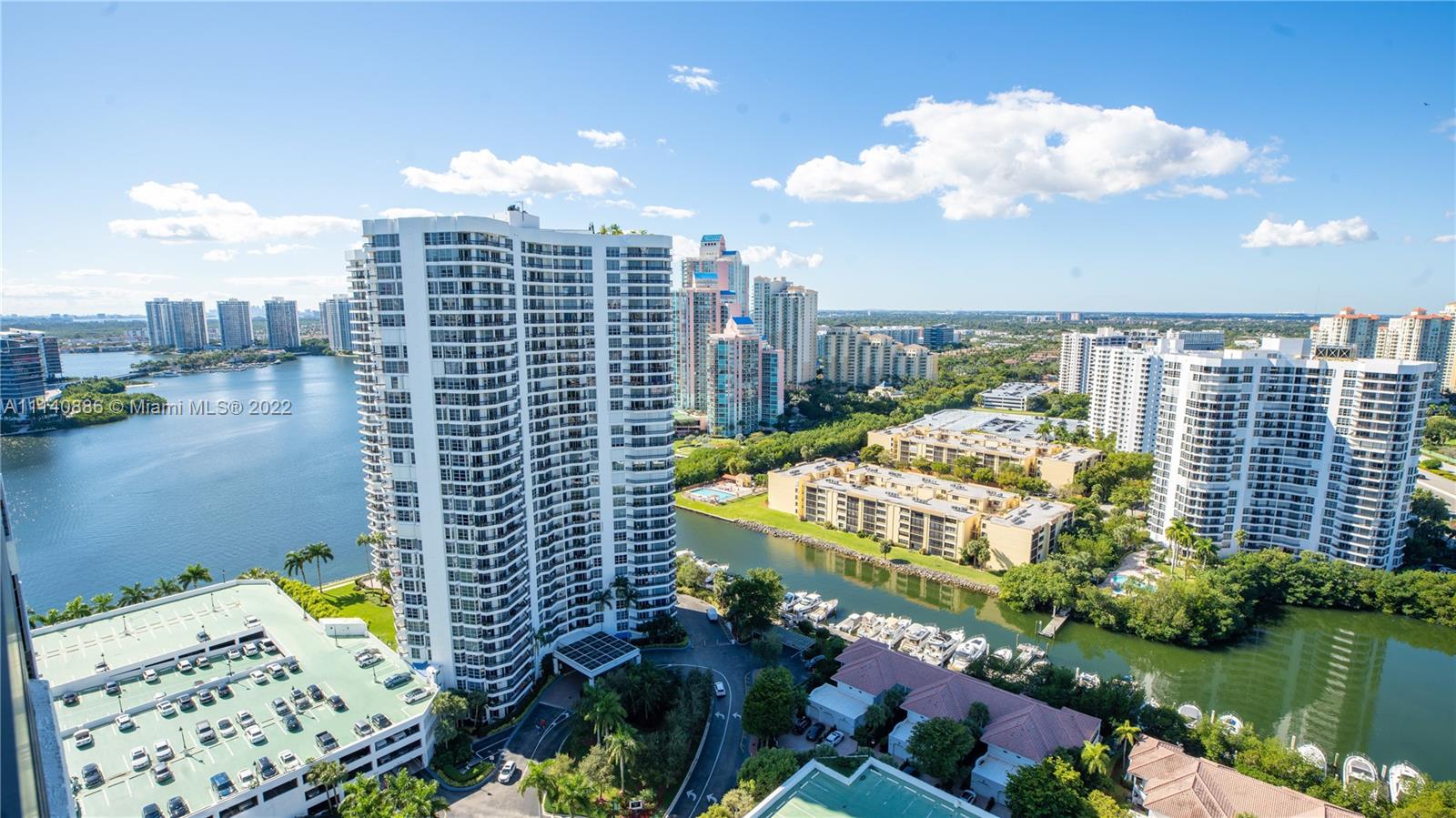 One of a kind! Enjoy amazing views of sunsets, w/ views of Turnberry Golf Course, the intracoastal, skyline & marina from this spacious remodeled apartment. Natural light flowing through this modern apartment located on the 30th floor. Split floor plan 2 bedrooms, 2 baths, balcony with breathtaking views. Full building amenities including: Fitness center, heated pool, Jacuzzi, game room, library and 7 clay tennis courts, basket ball court, pickle ball and dog park. Mystic Pointe is a desirable and all-inclusive gated community. Easy to show! Call listing agent.