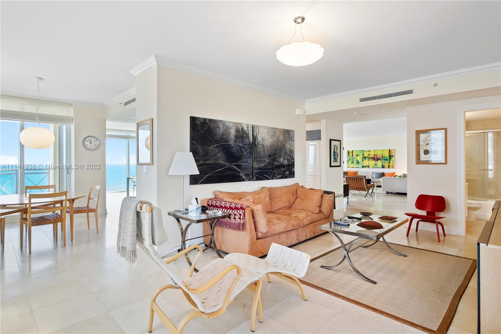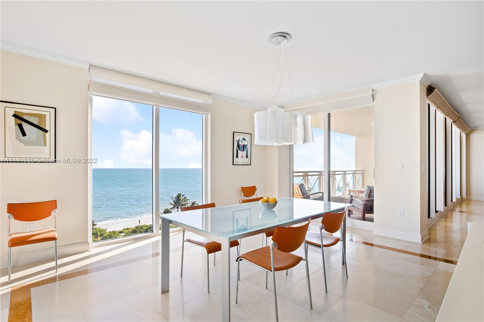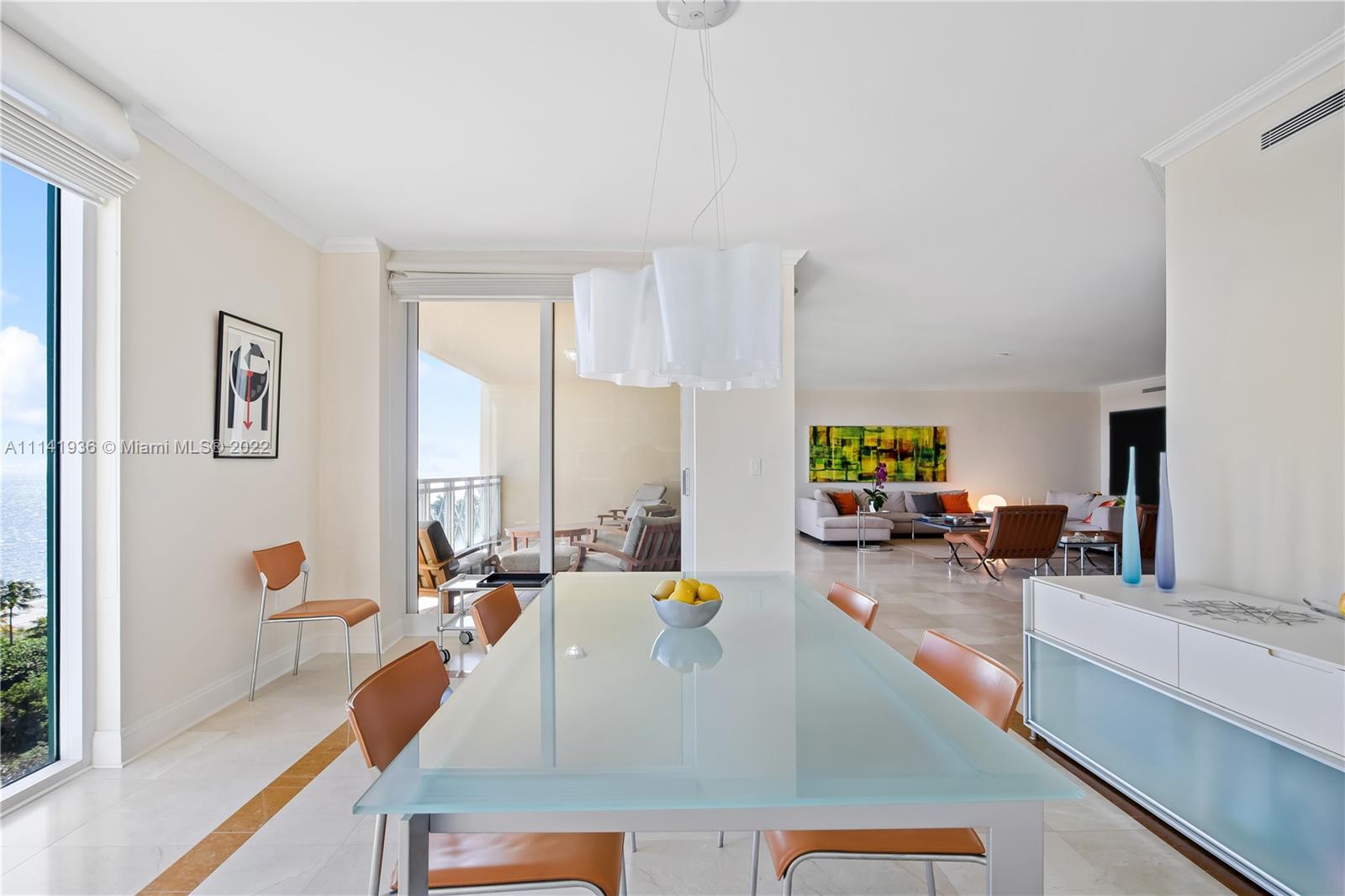 Grand Bay Residences in Key Biscayne has beautiful direct ocean view entering unit - marble floors throughout - wood floors (bedrooms) - 3 bedroom + den ( convertible to 4th bedroom ) - huge master w/his and hers baths and walk-in closets - service entry to laundry, staff/storage area & bath - elevator access to private foyer - 3 large terraces - resort style living, private beach access w/ chair & umbrella services, pool, spa, gym, valet parking, 24 hour concierge, conference room, media center, next door to Ritz-Carlton - parking space # 396 + 1 valet - storage # 71.
