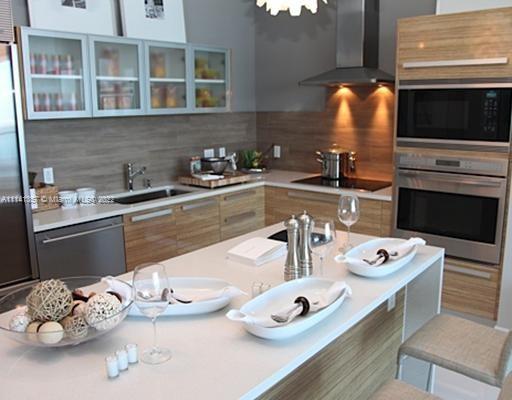 ARE YOU GONNA GO MY WAY? TO PARAMOUNT BAY! Lenny Kravitz-designed interior spaces blend resort cool with city chic in Miami's "Biscayne Corridor". 1BD+den+2FB, private lift, 10-ft ceilings, generous east balcony with stunning panoramic view of Miami Beach. Floor-to-ceiling windows. Premium finishes, thoughtful touches (eg built-in closets) from Parisian architect/interior designer make it home. Valet parking, secured garage, multi-media room, fitness centre (facing Biscayne Bay), social membership to Eden Roc Beach Club. Minutes from cultural arts centres, supermarkets, luxury shopping, Design District, South Beach. Easy access to airports. Enjoy your new life in the urban oasis that is Paramount Bay.