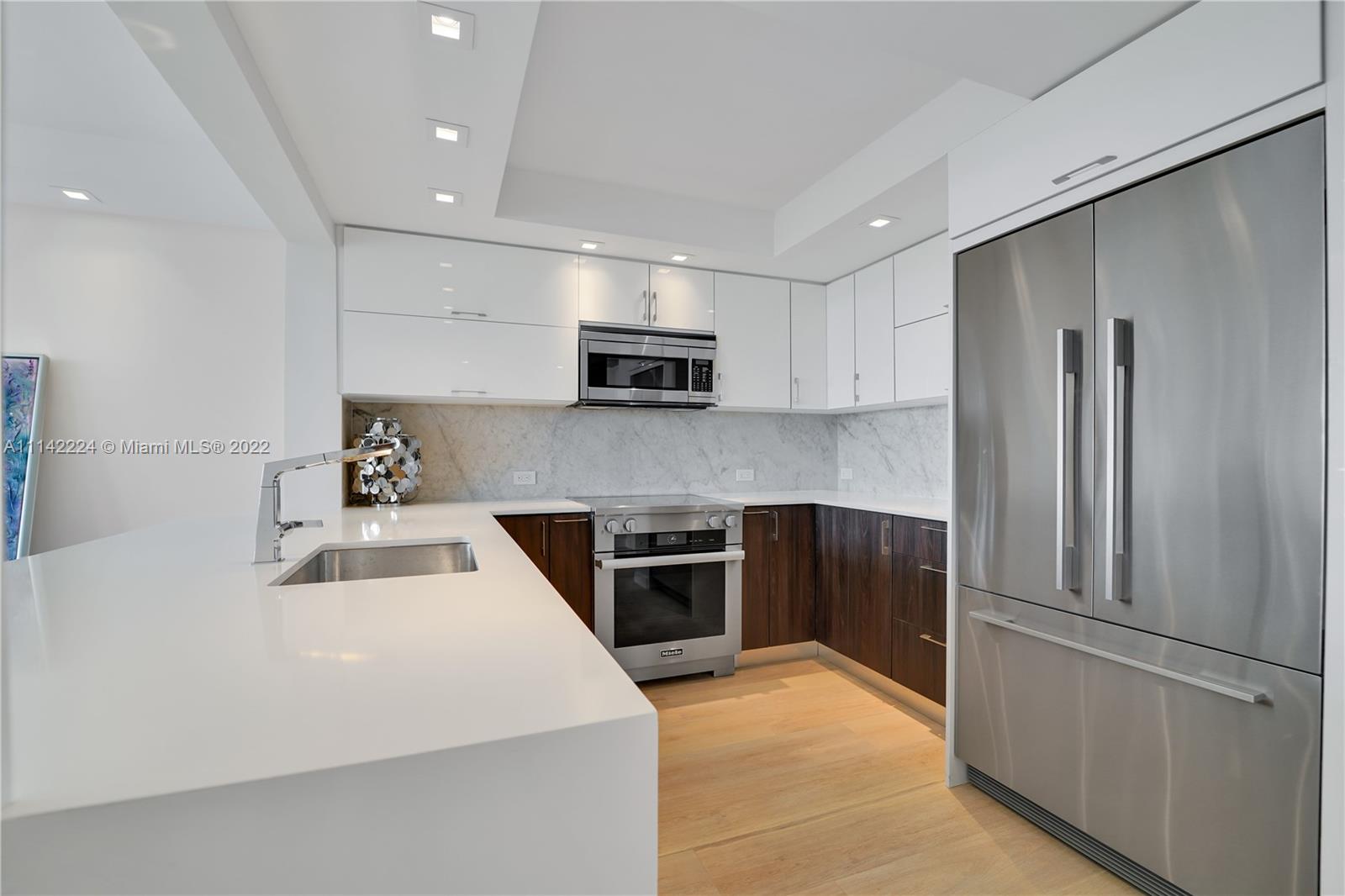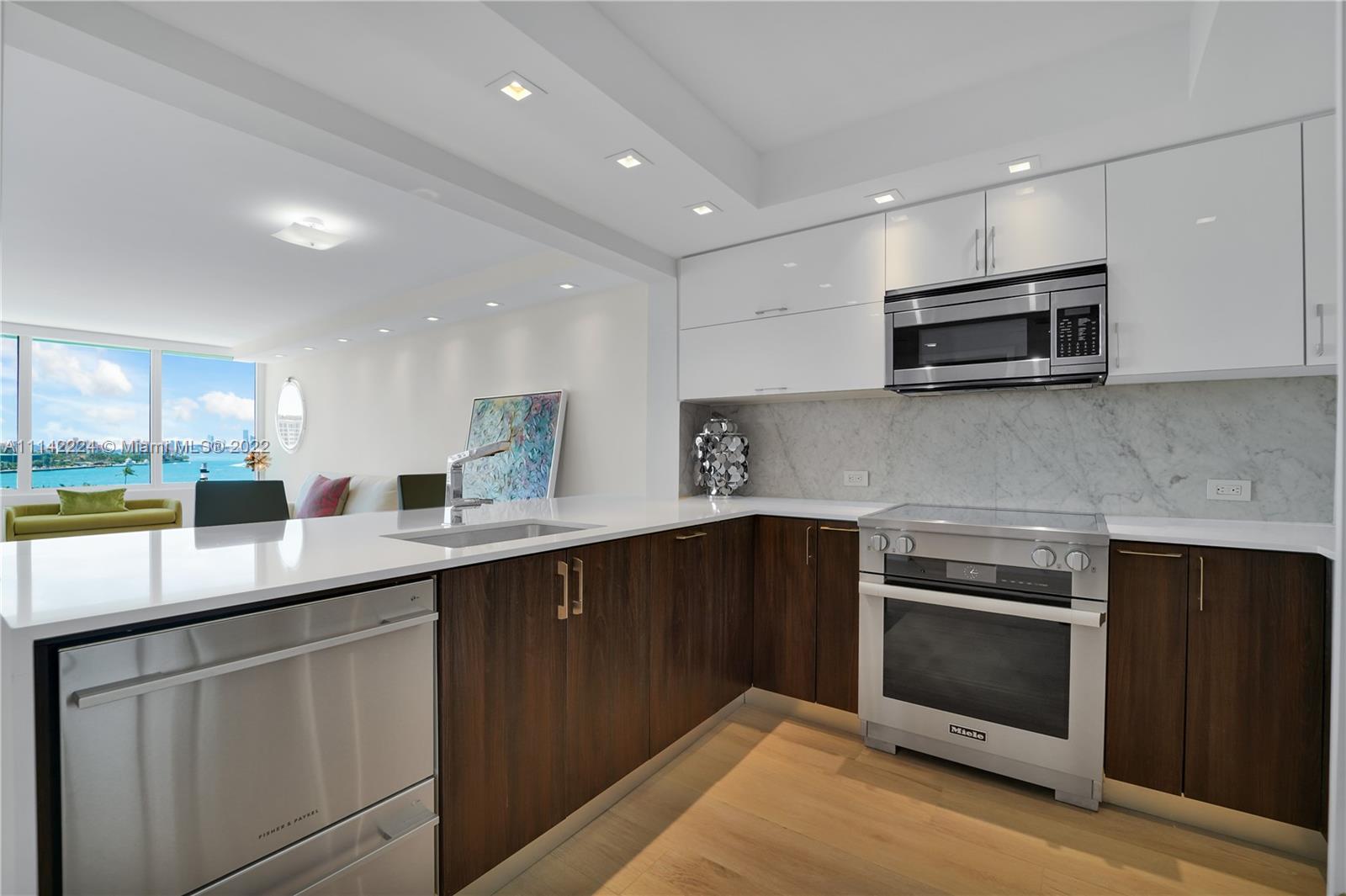 Beautifully renovated spacious 1 bed 1.5 bath unit in full-service South of Fifth building. Open kitchen with quartz counters. Main suite features en-suite bath with double vanity and walk in shower. Walk through closet with custom cabinetry. Porcelanosa ceramic tile throughout. New hurricane windows and sliders. Custom cabinetry. New A/C unit. Window shades throughout. Parking and storage unit, 2 parking spots, both on the highly desirable second level of parking. Storage unit in climate controlled area. The building features resort style amenities which are in the final stages of renovation. All assessments have been paid in full by the seller. The perfect move-in ready home! Make an offer!