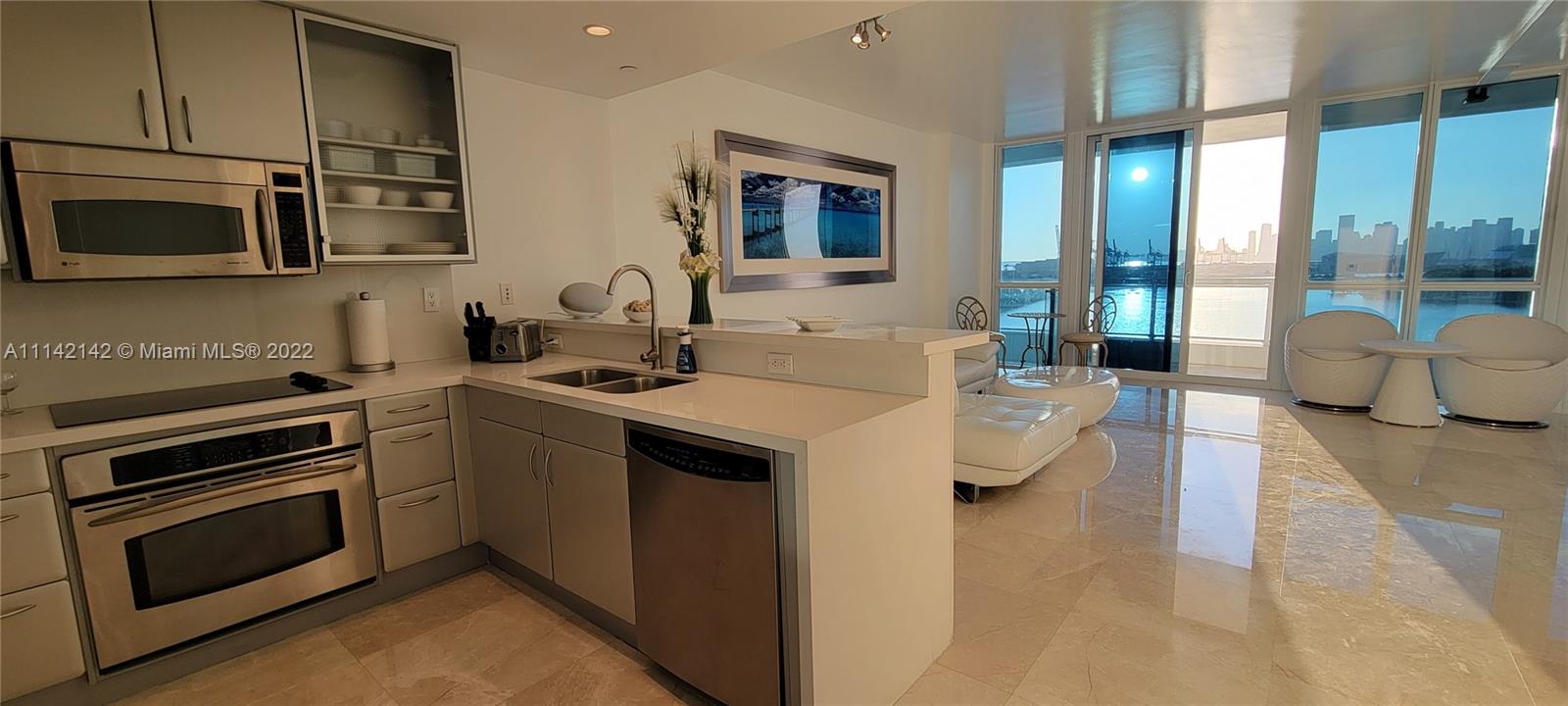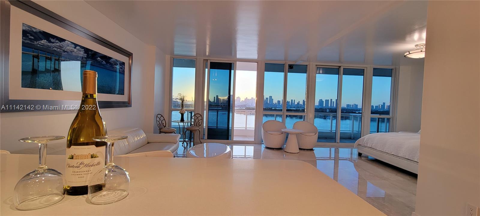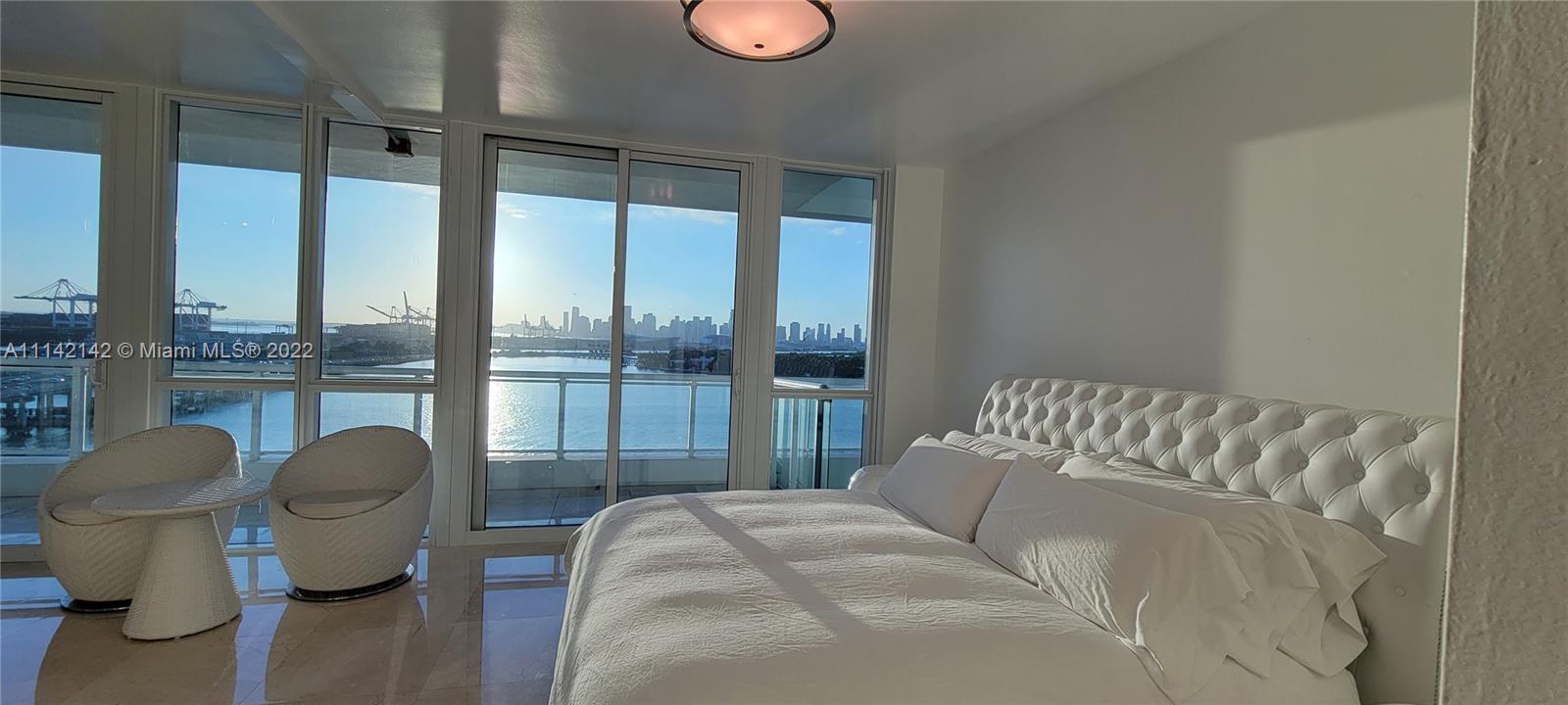 Stunning 12th floor unit in the prestigious Bentley Bay North tower with unobstructed city skyline & Biscayne Bay views. Only 4 units per floor, this 1/1 was converted into a fully open studio plan that is PERFECT for entertaining. (Unit can be rented 12 times a year. Enjoy it yourself & rent it when you are away to generate excellent income.) The renovated bathroom features double showers & double sinks. The kitchen was also opened to enjoy the direct sunset views. Marble floors throughout. The Bentley Bay amenities include a large pool with cabanas, gym, sauna & steam room, two garden hot tubs, BBQ area, 24/7 security. WIFI, Cable and valet included in HOA. Located walking distance to South Pointe Park, the South Beach Marina, Whole Foods, and West Avenue restaurants & shops.