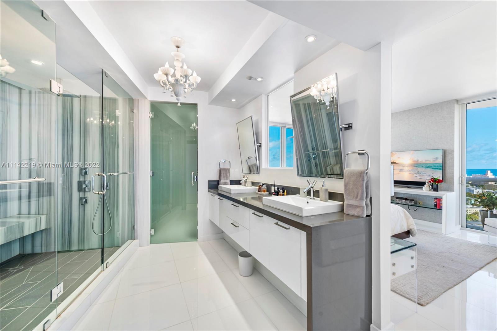 Enjoy high-rise living in SoFi's iconic Murano Grande. This stunning, extensively remodeled 2/2 residence offers a generous open floor plan. Custom soffits with down lighting create an intimate setting throughout the living room. Features a sleek kitchen, Porcelanosa tiles throughout the bathrooms and balconies, California closets, and more. A stylish design adorned with Philip Jeffries wall coverings create a modern and luxurious atmosphere. Complemented by one-of-a-kind light fixtures and mirror purchased from the Isle of Murano, no detail has been left unturned in this captivating residence. Floor-to-ceiling windows throughout and a combined 416 SF of terraces make it easy to enjoy sweeping 270-degree views of the sunrise over the Atlantic Ocean, Miami Beach and Biscayne Bay.