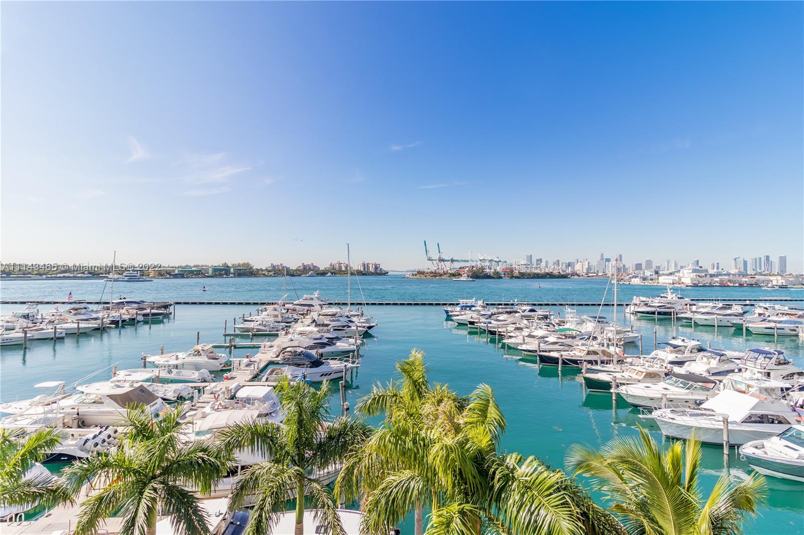 Unique blend of boutique living with all of the benefits of the full service high rise. The Flats at Yacht Club, one of just 8 special residences directly fronting the Miami Beach Marina and Biscayne Bay with with direct access from the Marina and separate from the main building. Perfect location with your garage parking right outside your door, swimming pool, tennis and barbecue just one flight up and the gym just two flights down. This top floor residence on the south east corner offers incredible views of the Bay and Marina from every room. Feels like living on a cruise ship. Open floor plan that includes a spacious bedroom, nice separation between dining and living areas as well as a den which makes for a perfect office or guest room. Pets welcome & monthly rentals allowed per condo.