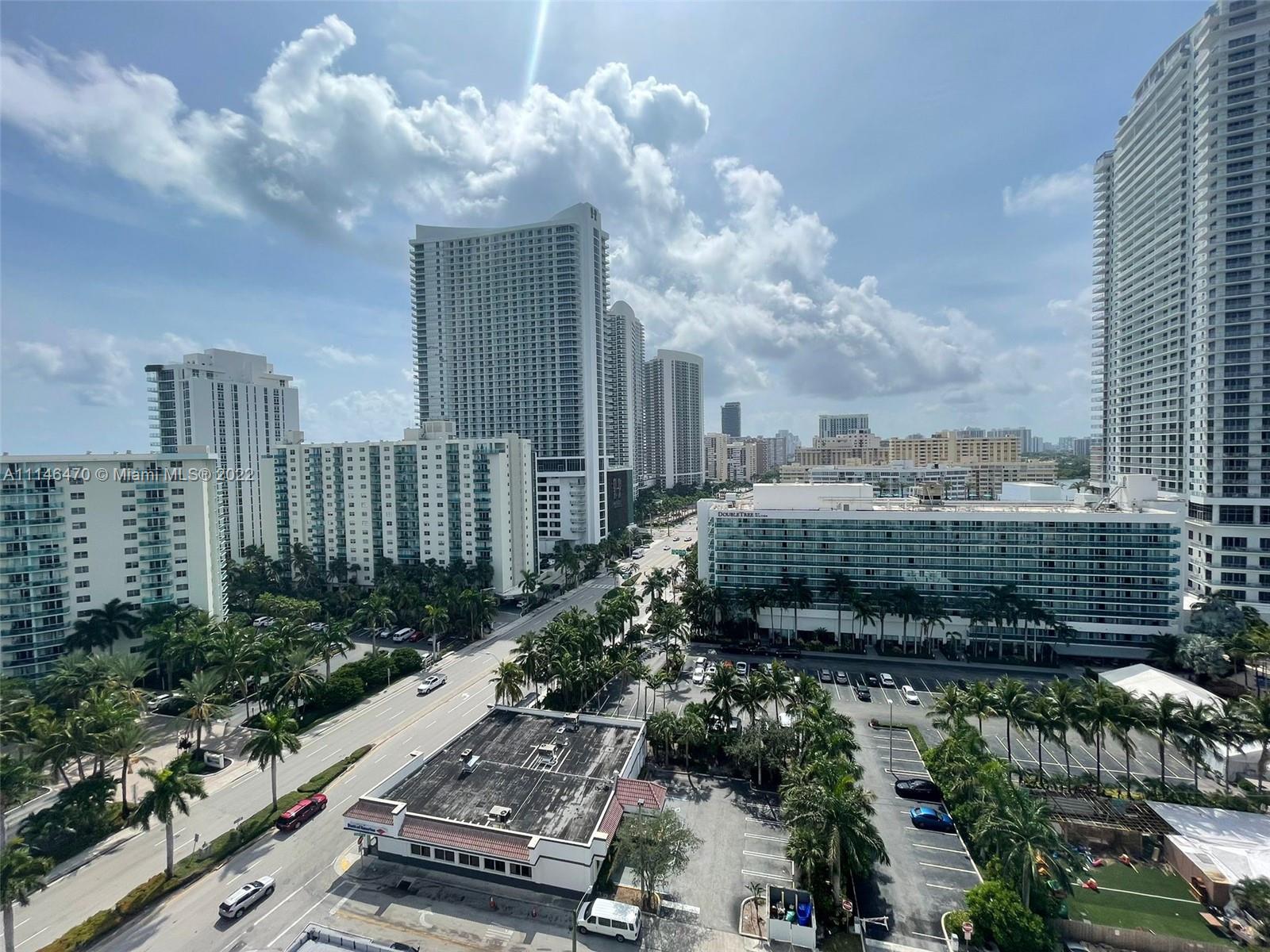 Enjoy the magnificent views from the wrap around balcony across street from the Ocean. 180 degrees views of intracoastal and Ocean. Tile throughout and accordion shutters on the unit. Corner unit, very spacious, 1 of the largest in the building. Building offers full resort amenities, such as billiard room, gym, heated swimming pool, sauna, free shuttle bus to go to mall and stores, conference room, valet parking, 24/7 security and cameras, gated garage parking and free high speed internet. Across street from the beach next to the HILTON and Diplomat Hotels. Excellent location! ASSESSMENT ALREADY PAID BEFORE FOR DOORS AND TERRACE. WALK TO RESTAURANTS AND SHOPPING, IMMEDIATE RENTALS ARE ALLOWED. 40 YEARS RECERTIFICATION COMPLETED. Video available on request.
