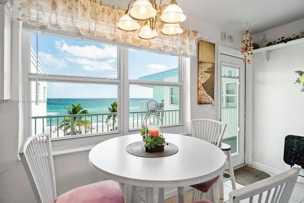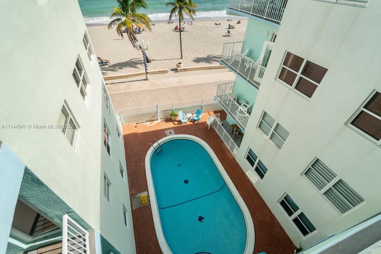 Atlantic ocean direct view! Located on Hollywood Beach/Broad walk, this 1 bed, 1 bath offers direct views of the ocean and intracoastal views from the bedroom. The open white kitchen with granite counter tops is fully equipped with plenty of cabinets, microwave, stove, oven, refrigerator and moveable island. Other features include tile floors throughout, impact doors, updated bathroom and a large walk-in closet. Enjoy your morning coffee as you watch the sunrise or have a cocktail under the moonlight. Entertainment is steps away: shopping, dining, live music and more. Perfectly located 30 min. to South Beach, 15 min. to Ft. Lauderdale airport. Current repeat clients for regular rentals. Lots of natural lighting, airy feel and a stunning ocean view. One assigned parking spot.